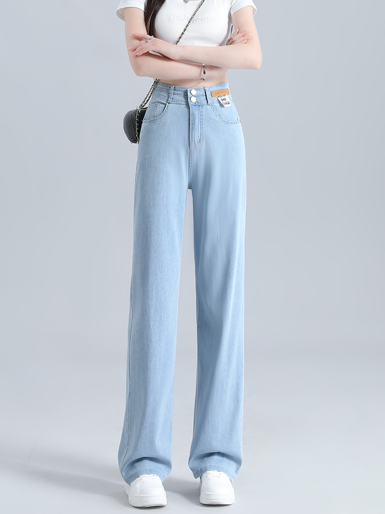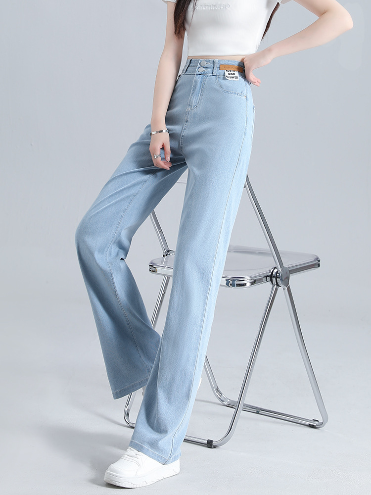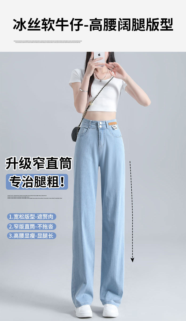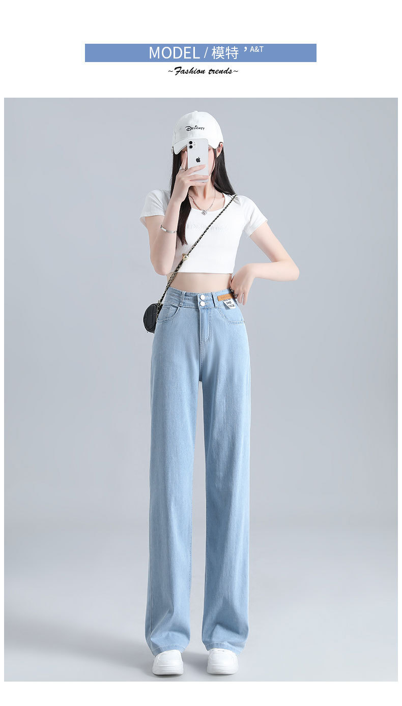 텐셀 여성용 여름 얇은 청바지 2026 신상 하이웨이스트 슬림핏 아이스 실크 와이드 레그 슬림핏 스트레이트 팬츠