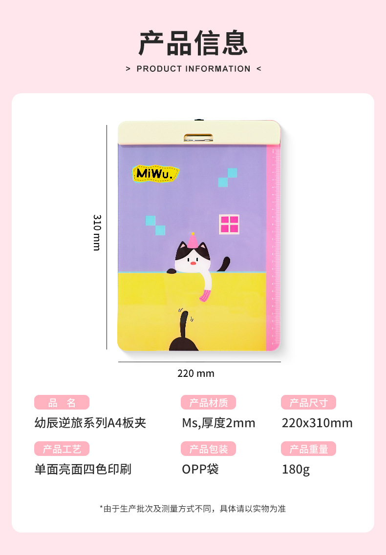 유첸 이동식 파일 폴더 A4 서류 폴더 루프형 파일 폴더 만능 만화 캐릭터 필기 패드 학생 전용