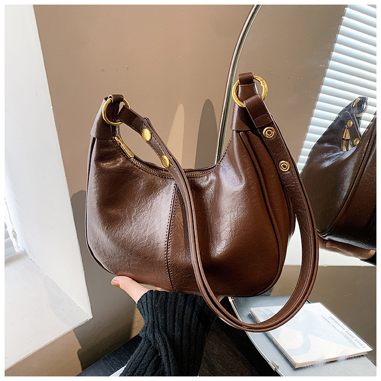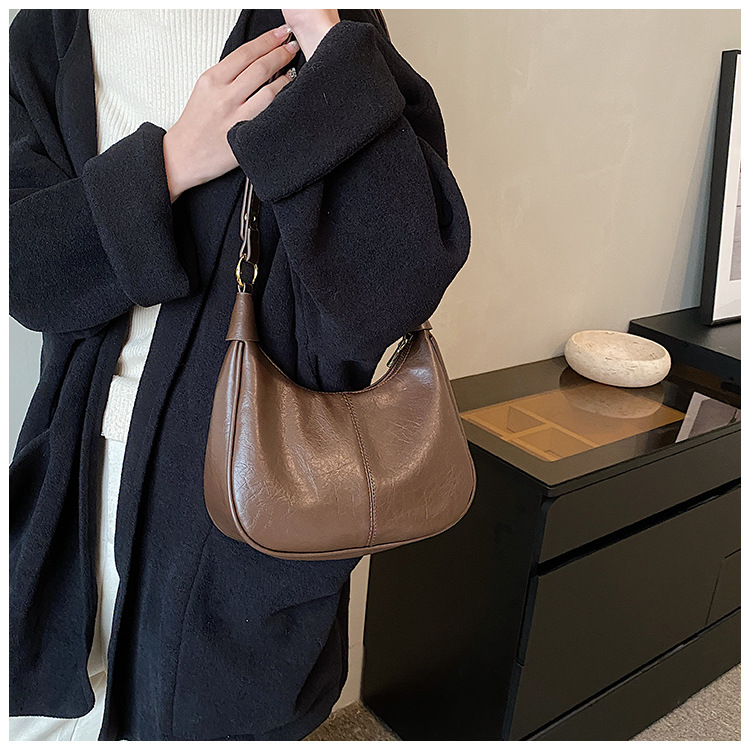 새로운 트렌디한 크로스보더 인기 다용도 겨드랑이 가방 한국식 오일 왁스 가죽 공장 도매 통근 숄더 크로스바디 여성용 가방