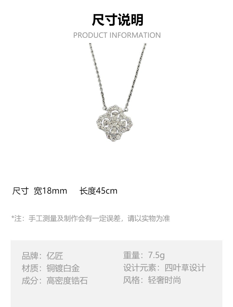 여성용 프랑스 디자이너 네잎 클로버 루프 목걸이, 말 눈 다이아몬드 풀 다이아몬드 펜던트, 쇄골 체인, 정교한 고급 감각과 가벼운 럭셔리