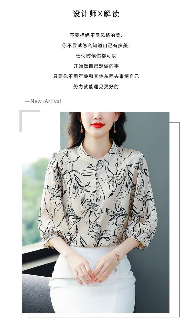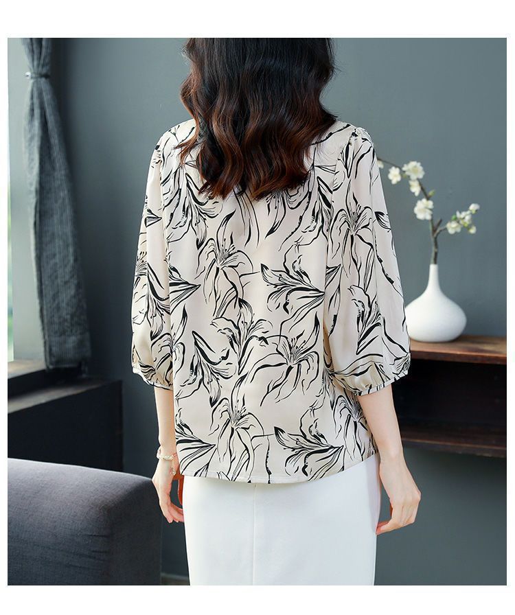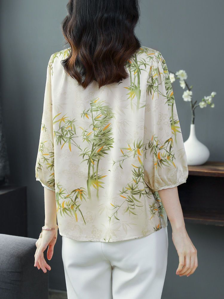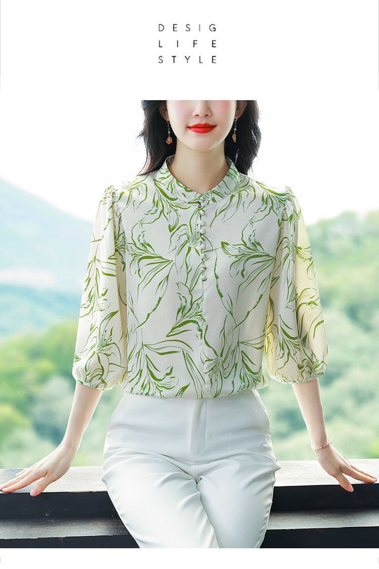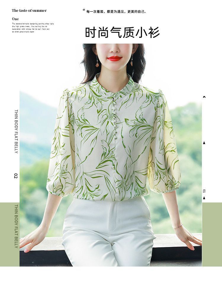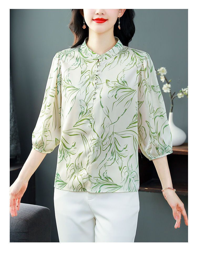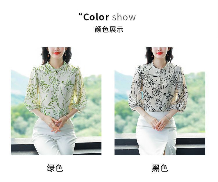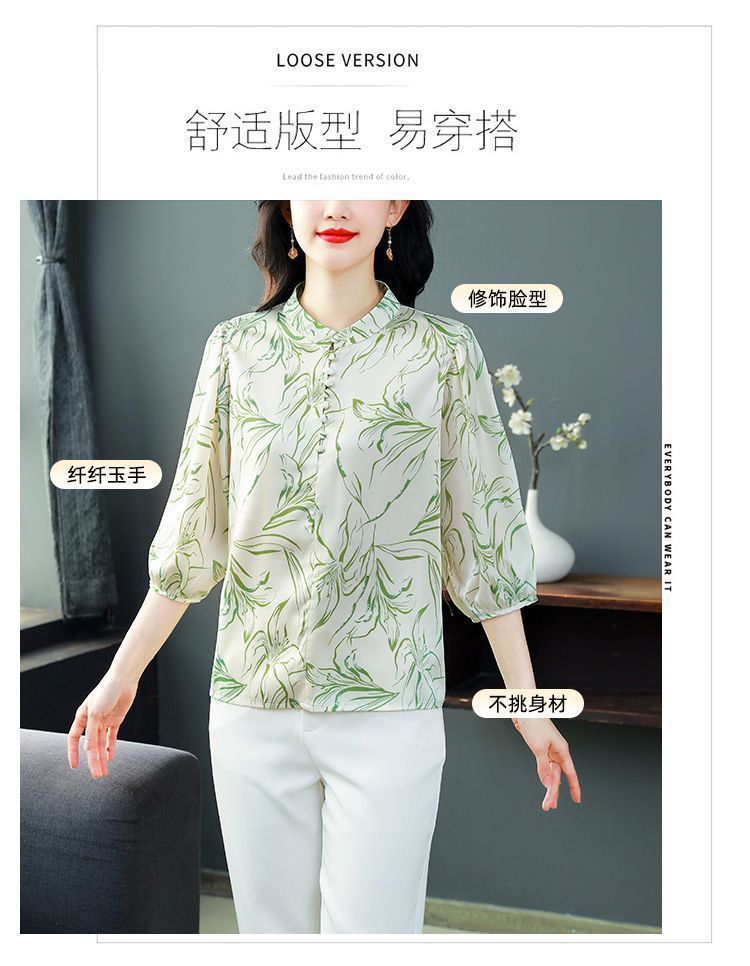 중년 어머니 여름 반팔 티셔츠 중년 및 노년 여성 패션 프린트 쉬폰 셔츠 2025 신상 상의