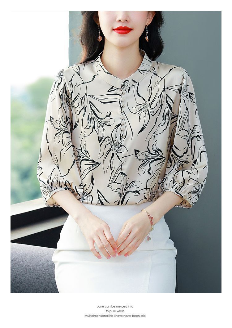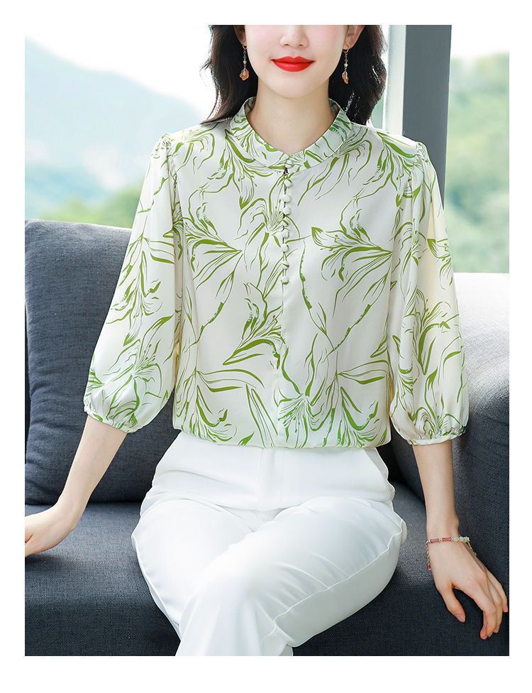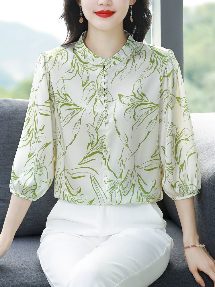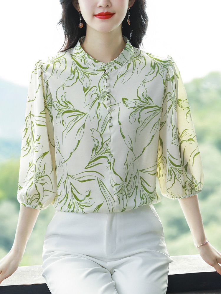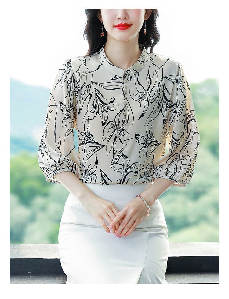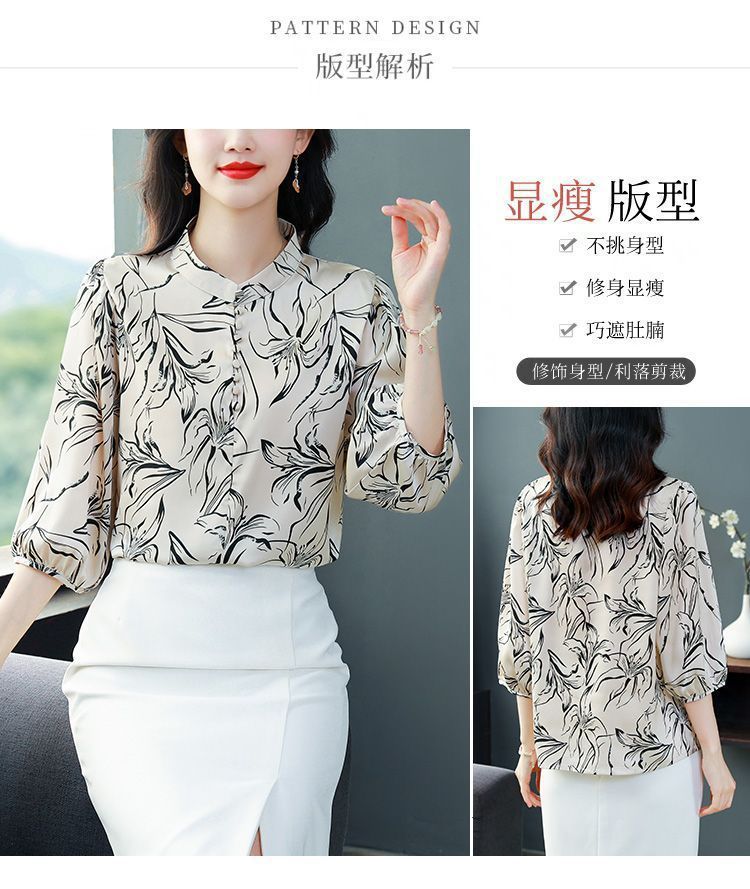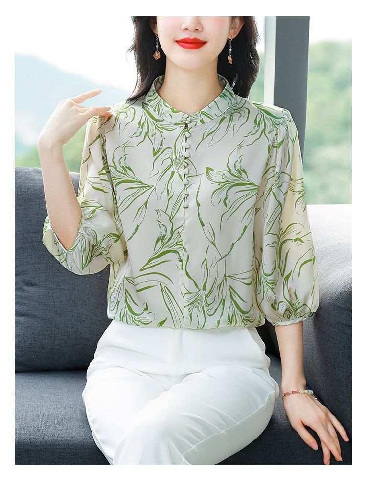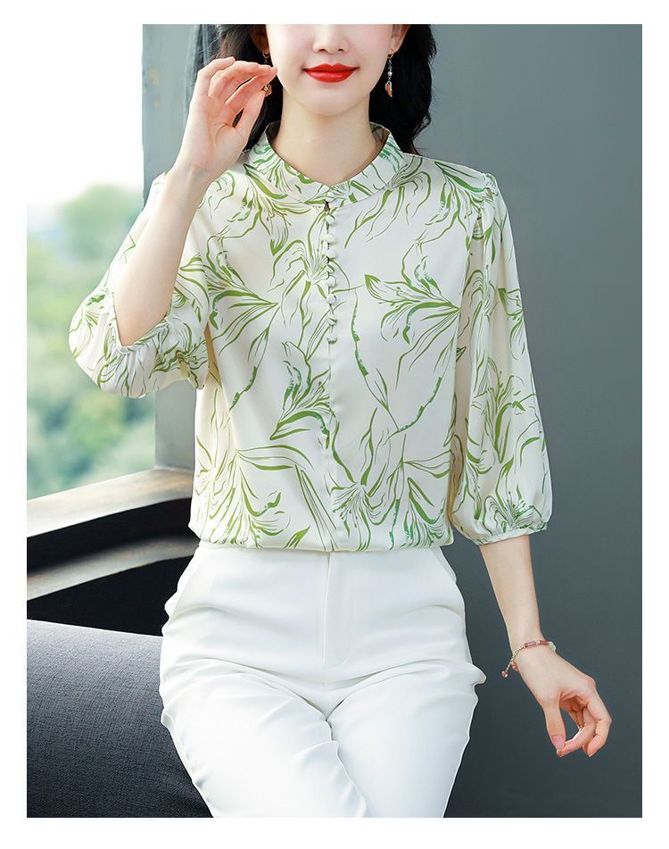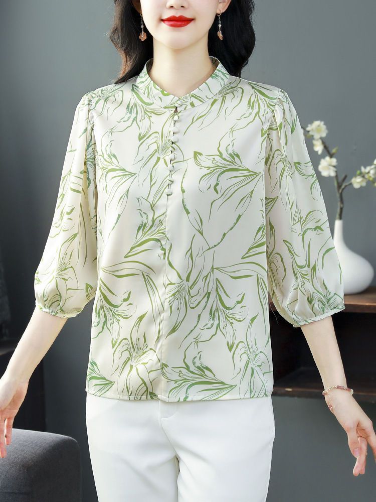중년 어머니 여름 반팔 티셔츠 중년 및 노년 여성 패션 프린트 쉬폰 셔츠 2025 신상 상의