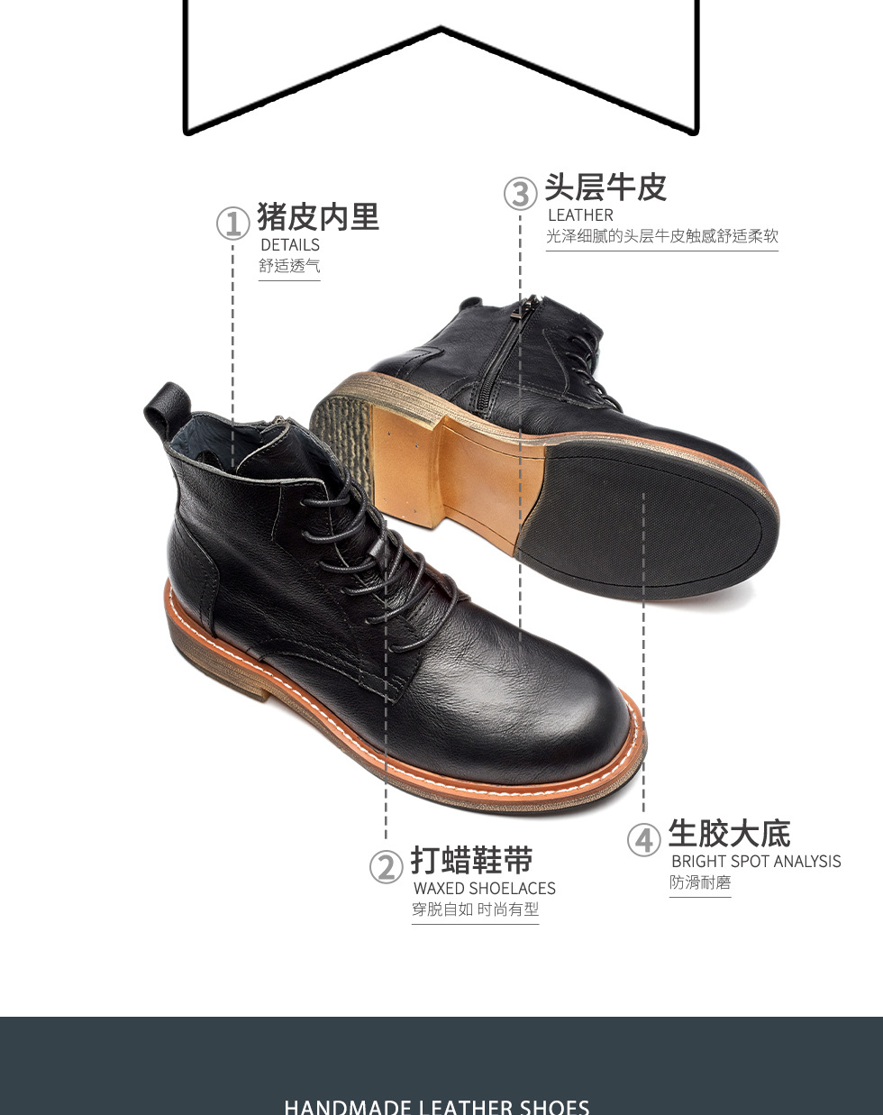 정품 가죽 마틴 부츠 남성용 영국 가죽 부츠 하이탑 가죽 신발 수제 복고풍 부츠 남성용 소가죽 부츠 워크 부츠 짧은 부츠 유행