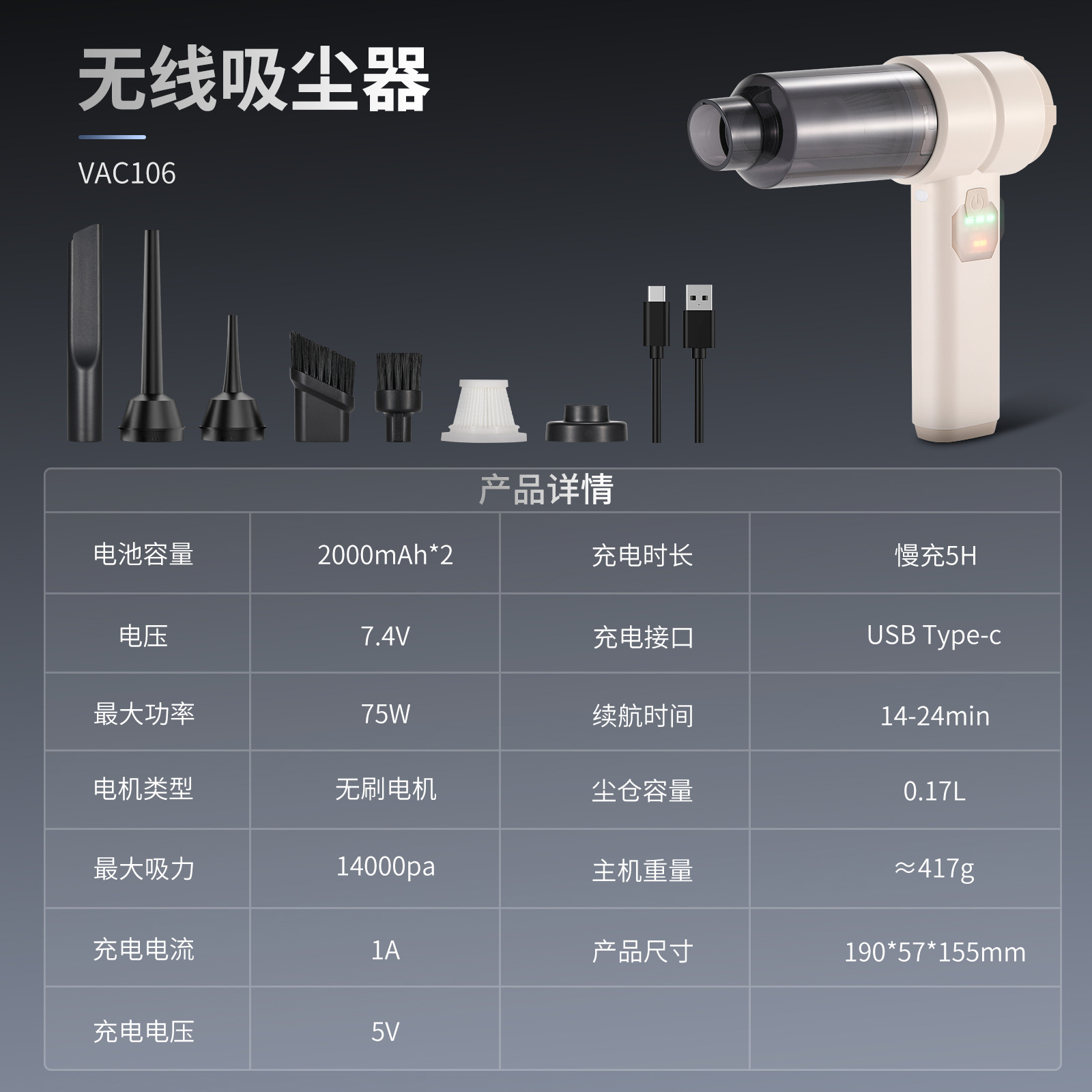 차량용 무선 핸디형 소형 진공청소기 2025년형 신제품, 차량 및 가정 겸용, 초강력 흡입 및 블로잉 기능 탑재