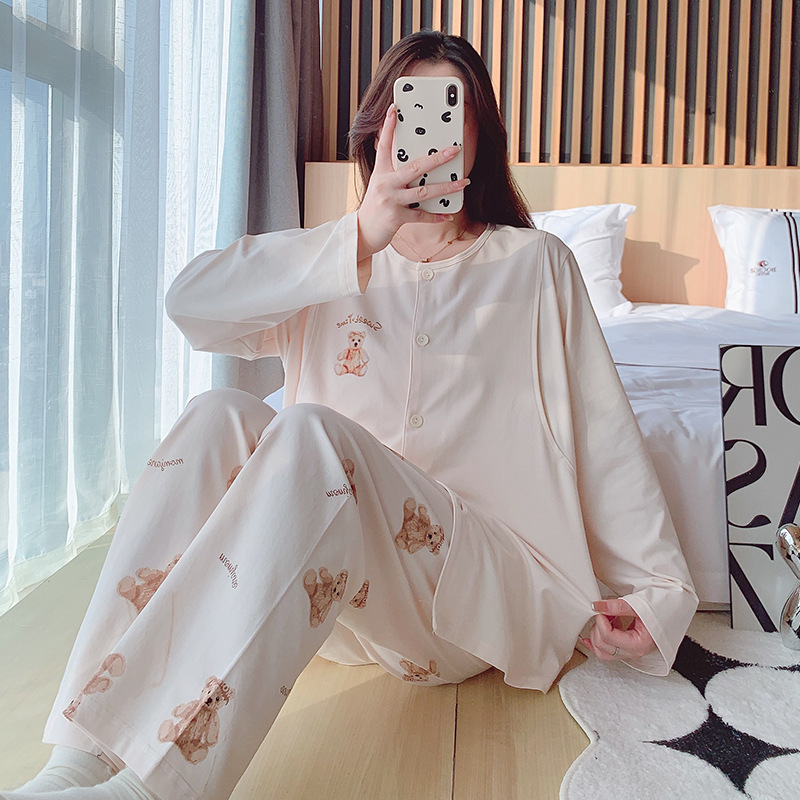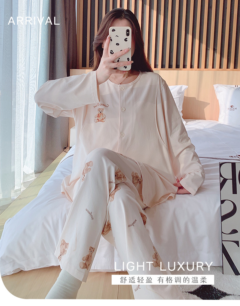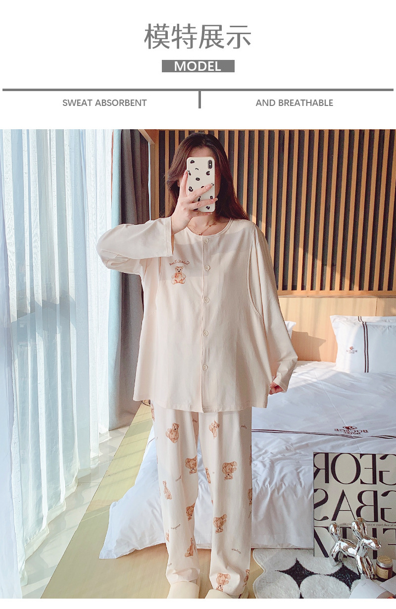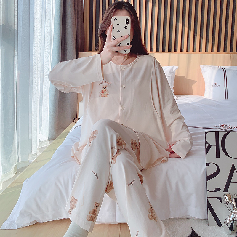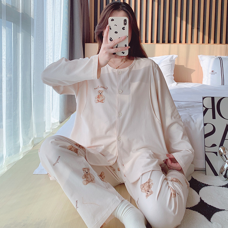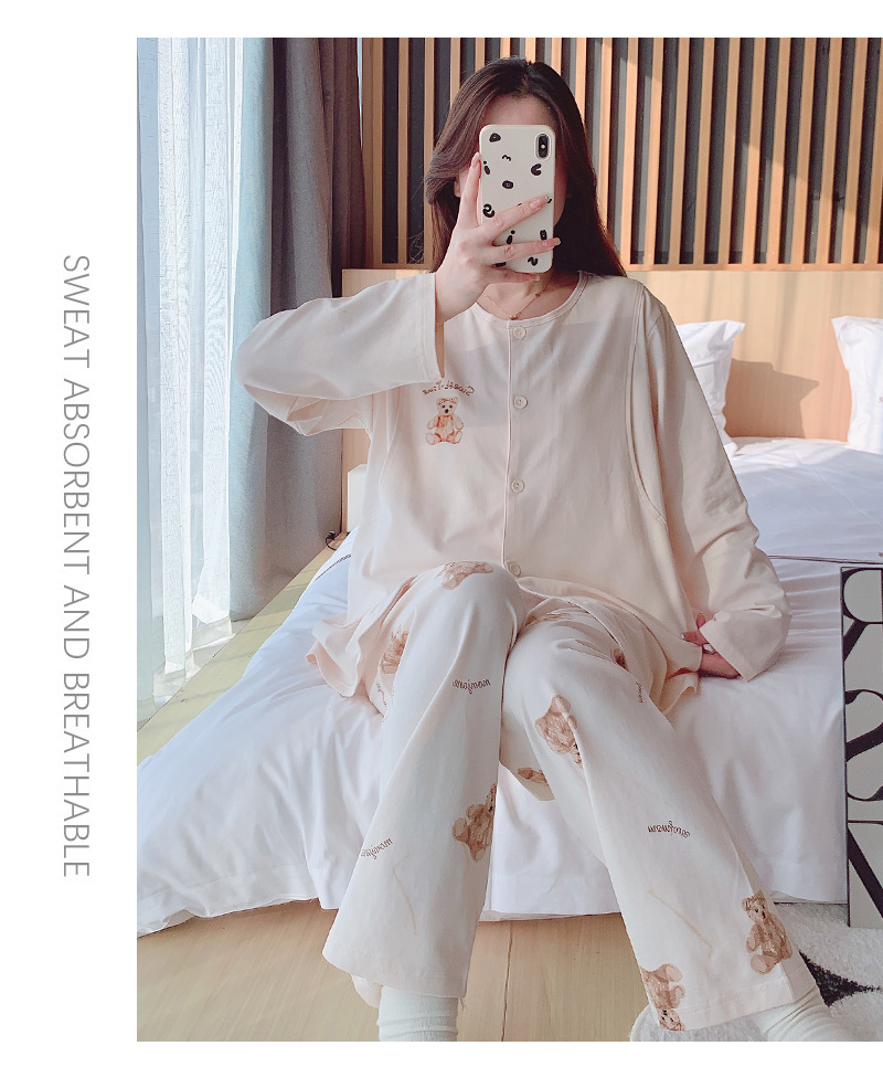 2025 신제품 순면 땀흡수 산후복, 산후수유 잠옷, 홈복, 가슴패드가 있는 11월 가을 겨울 임산부