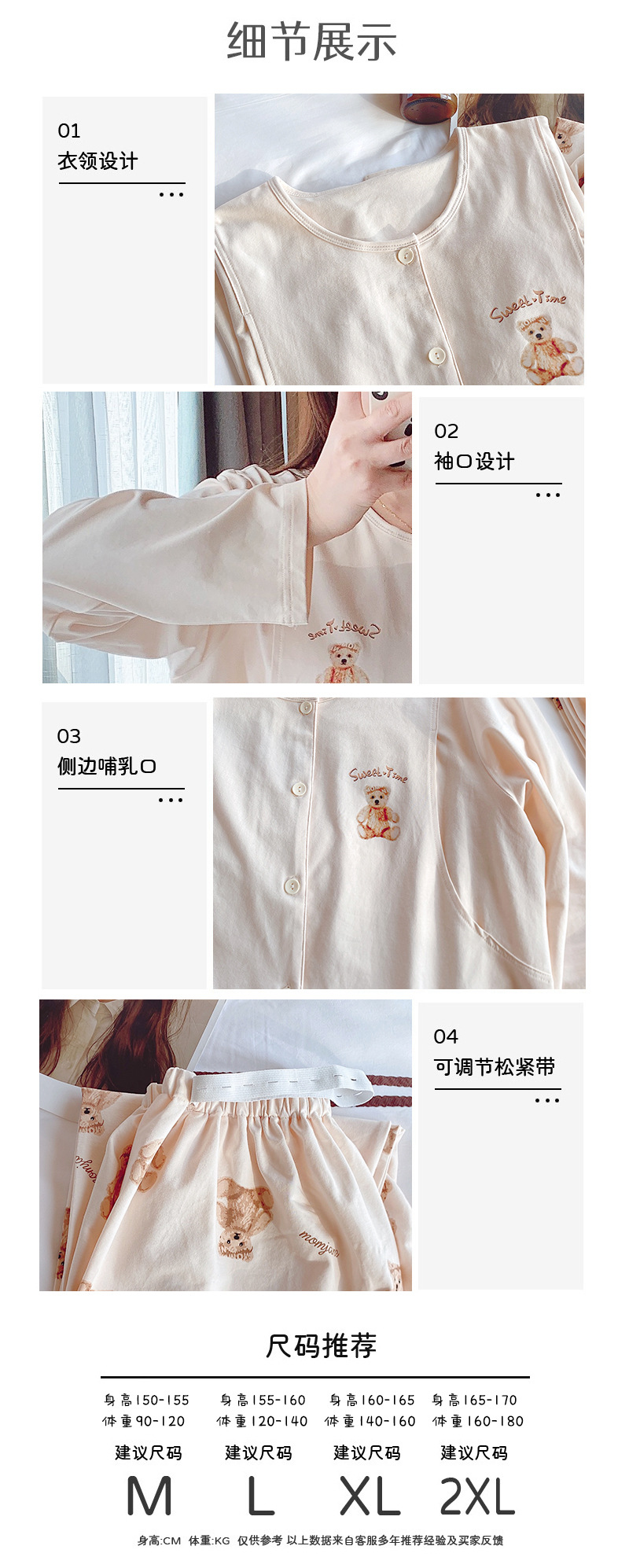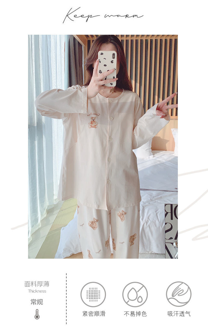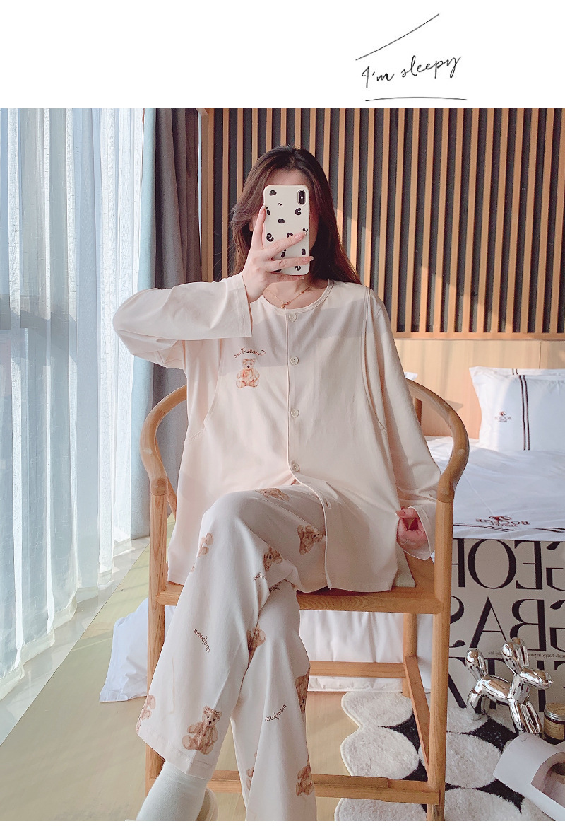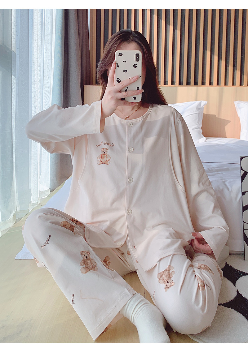 2025 신제품 순면 땀흡수 산후복, 산후수유 잠옷, 홈복, 가슴패드가 있는 11월 가을 겨울 임산부