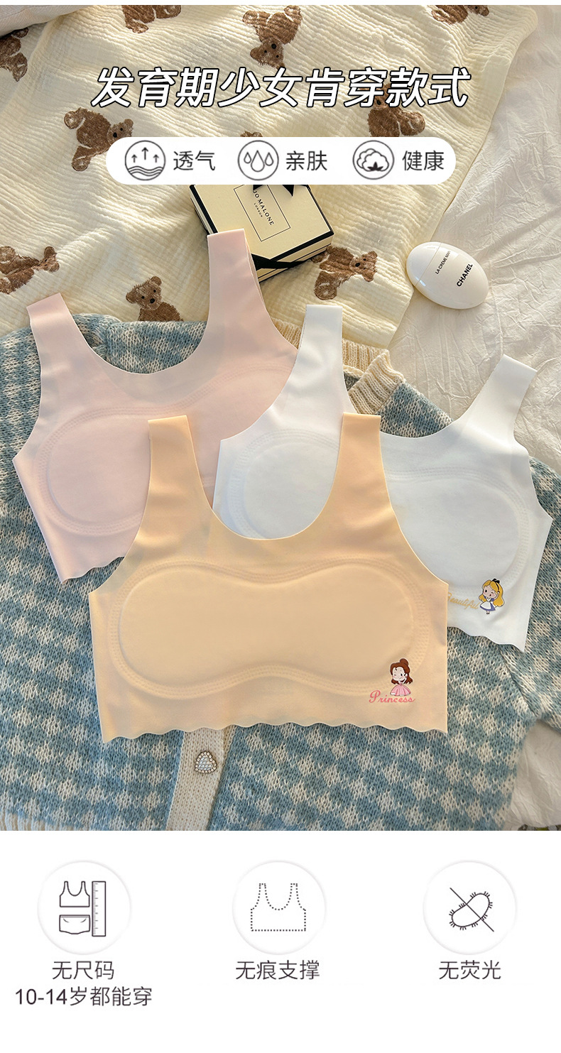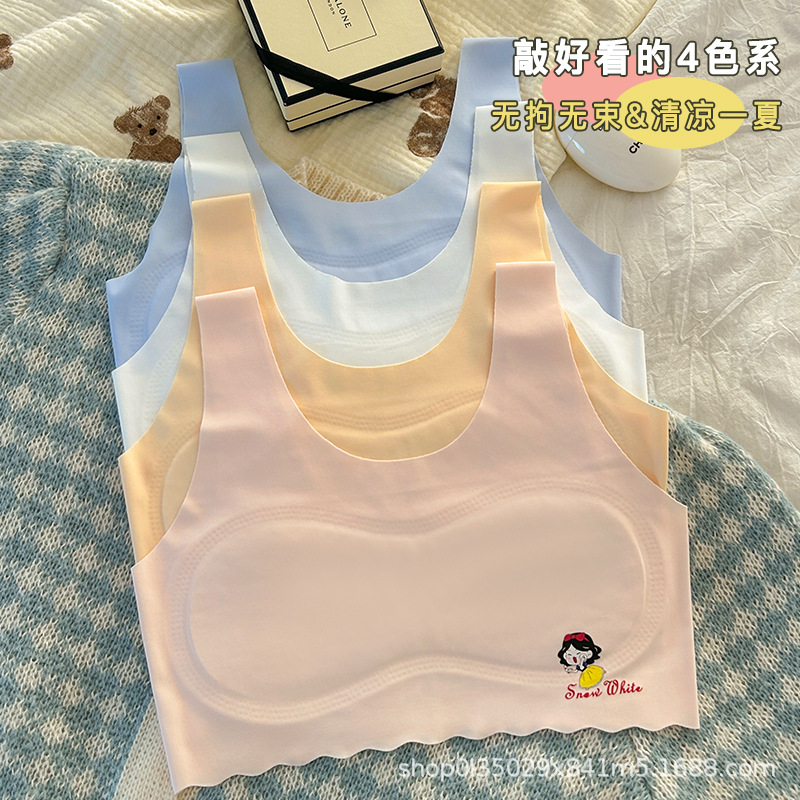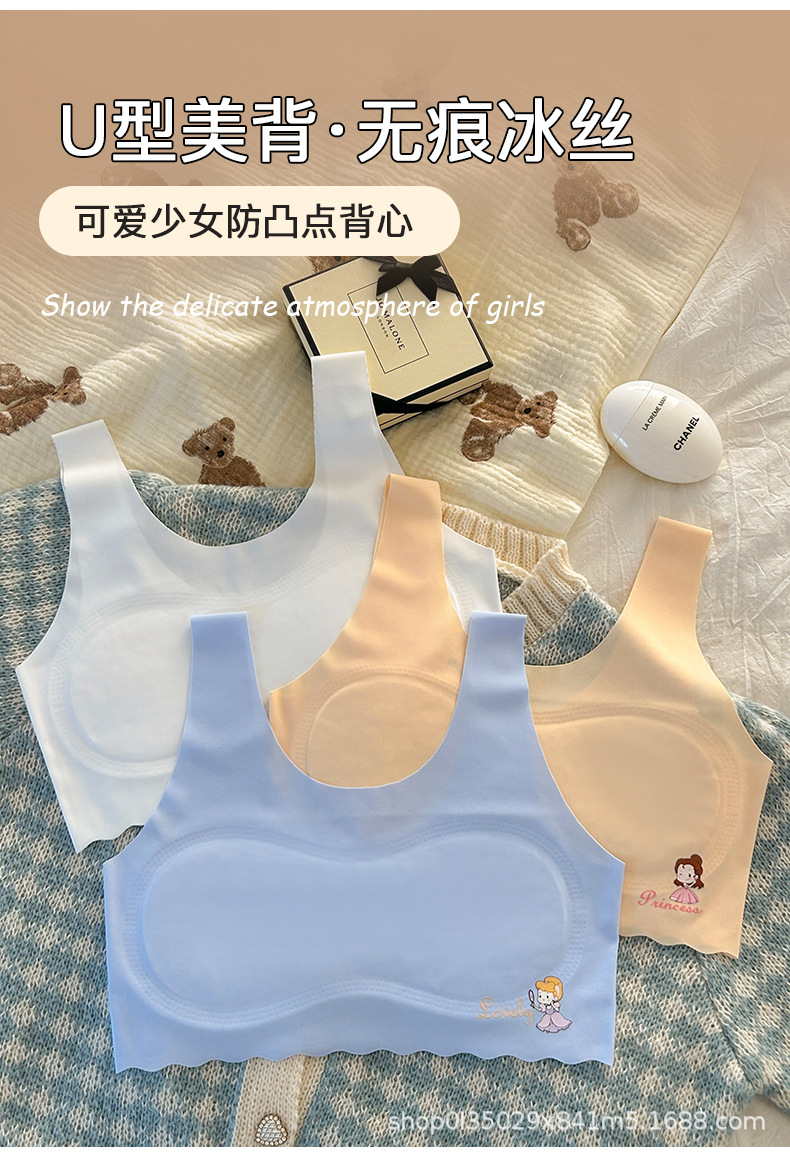 발달기 소녀 속옷 9-16 세 소녀 튜브 탑 아이스 실크 원활한 조끼 중학생 통기성 브래지어 얇은 스타일