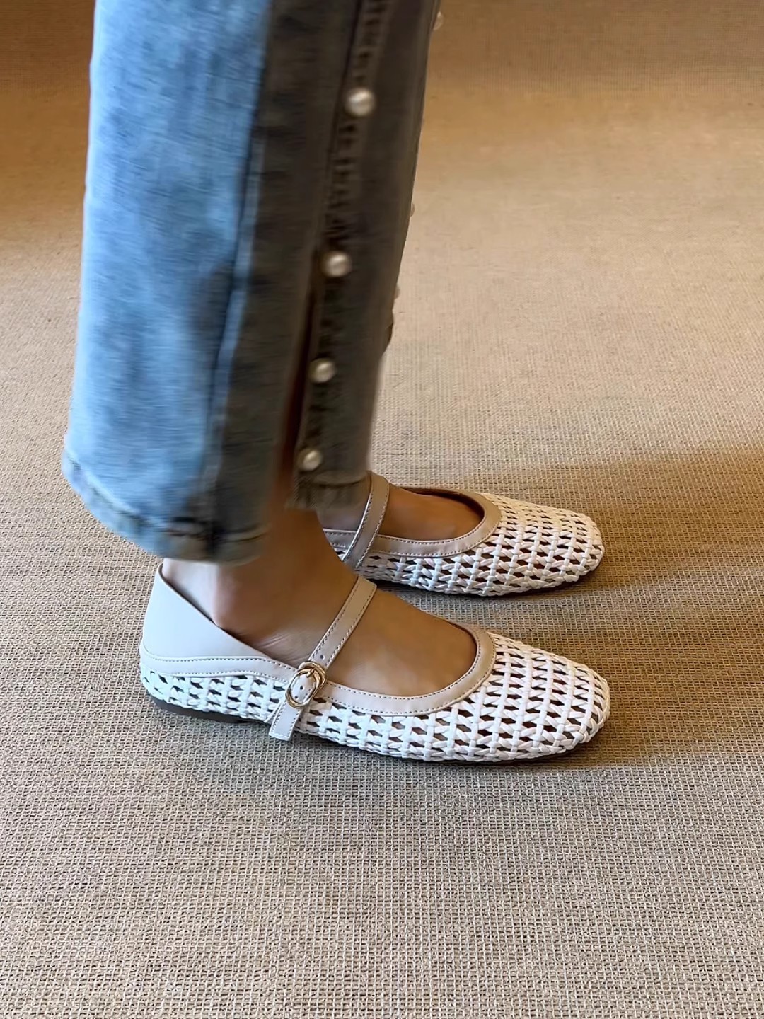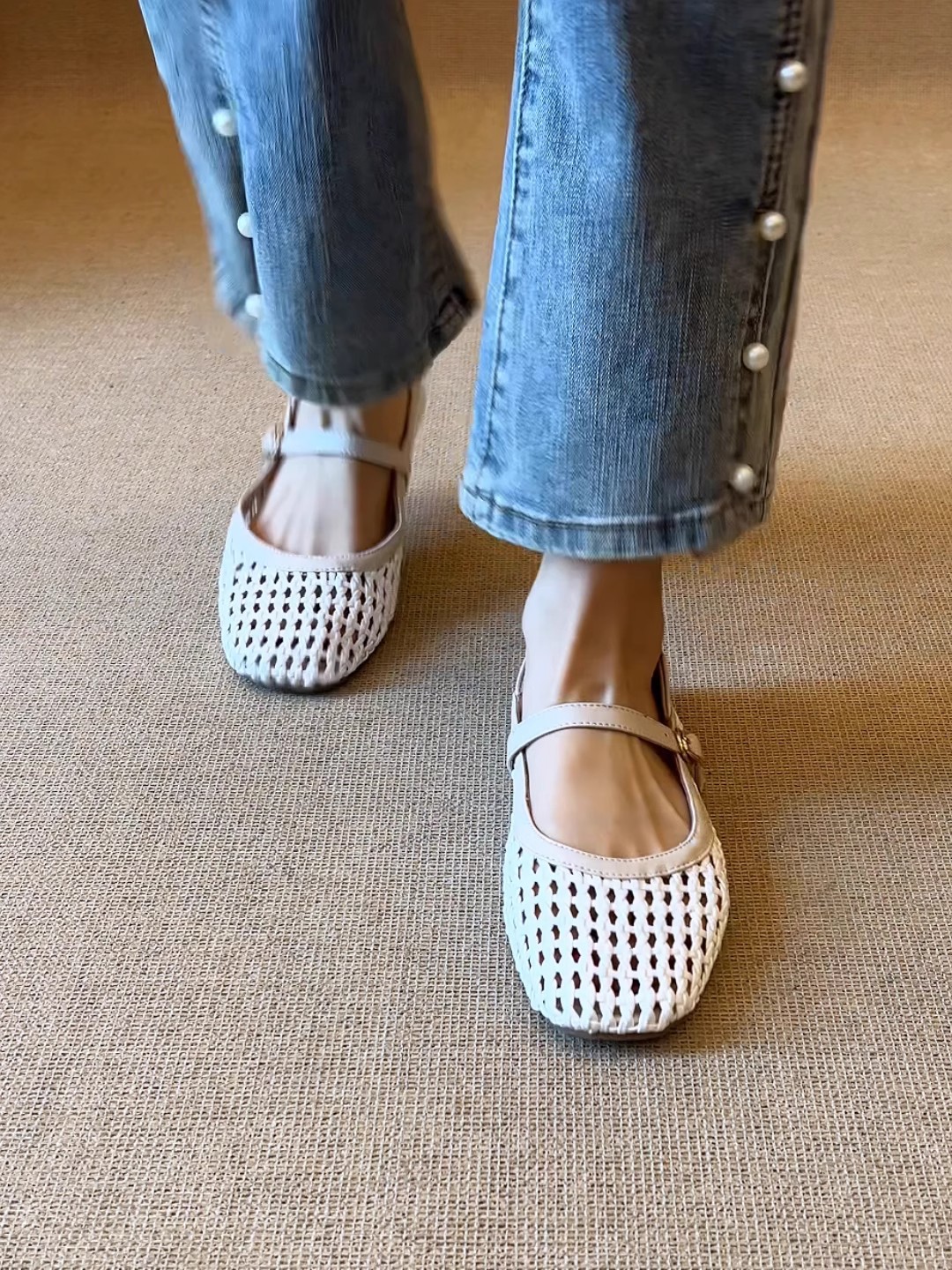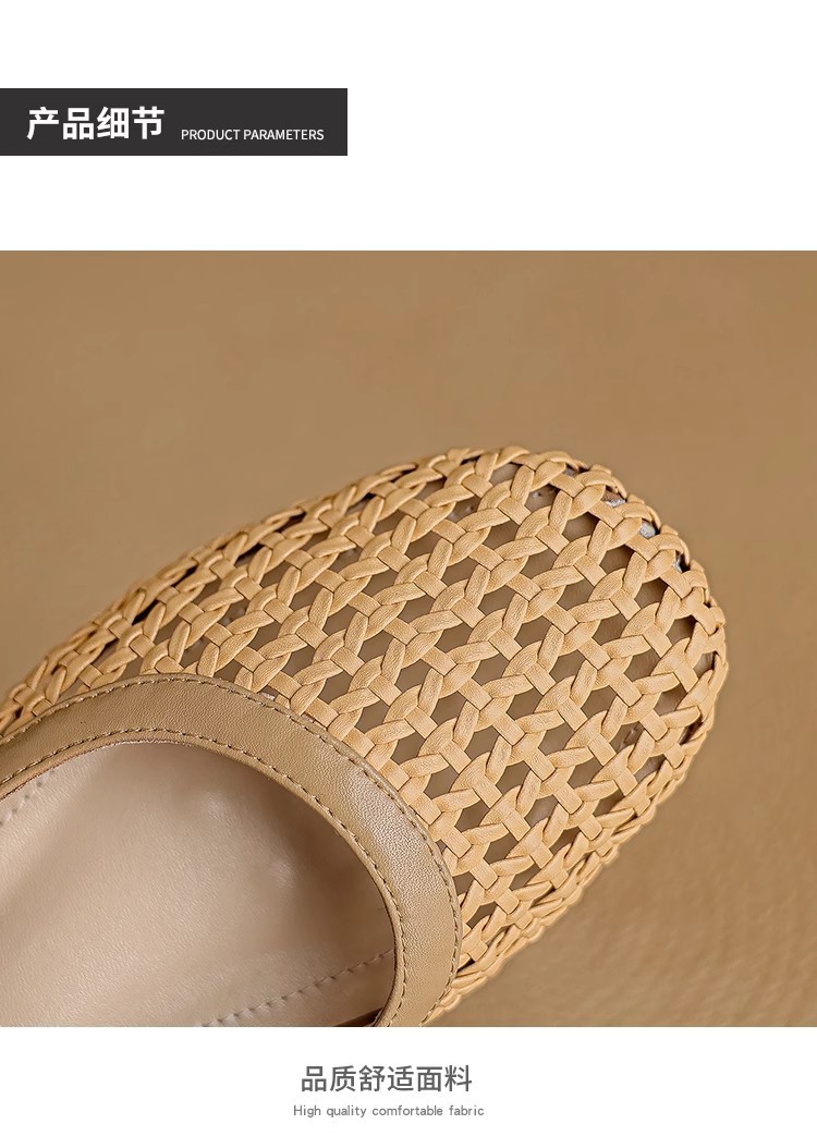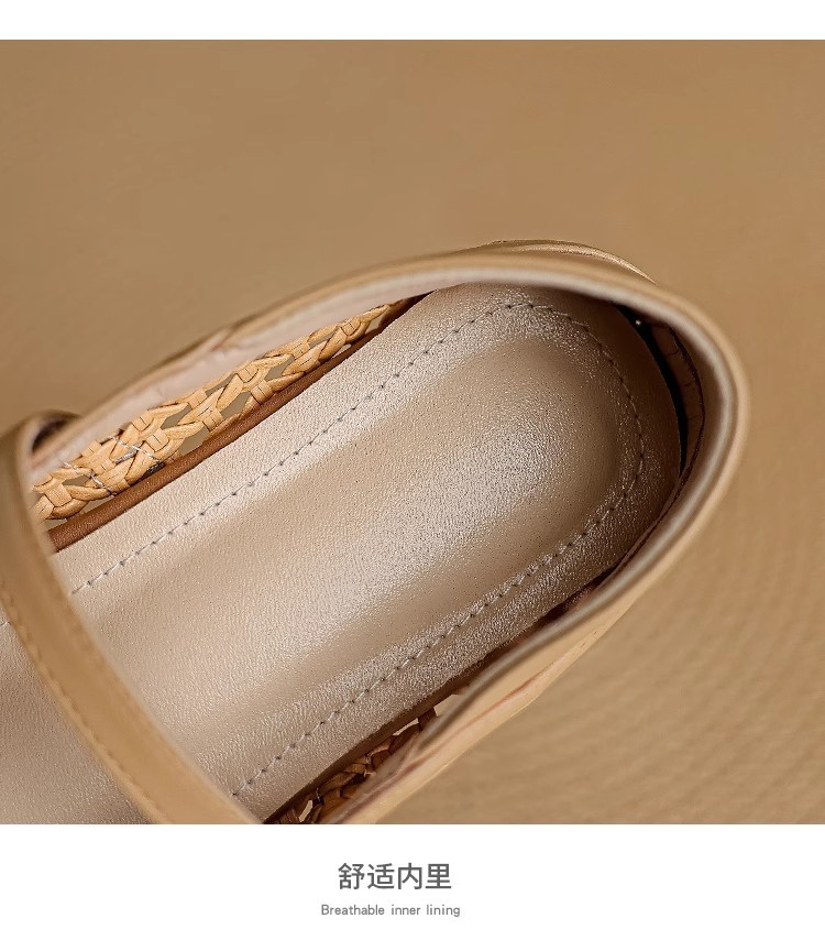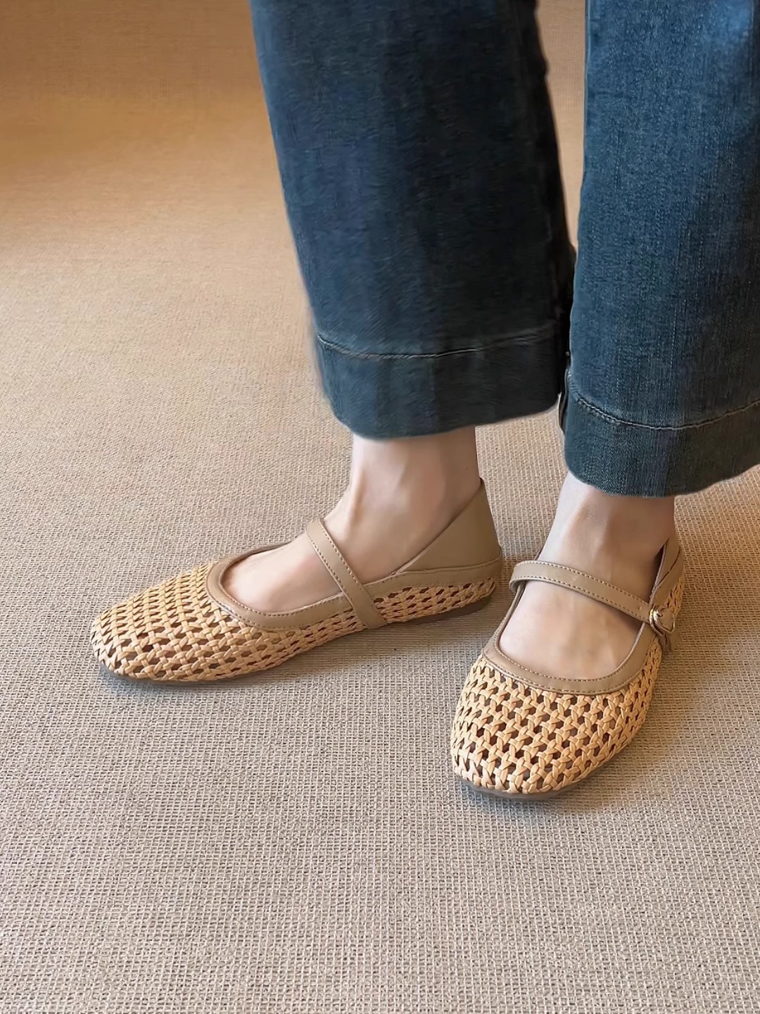 양가죽 손으로 짠 프렌치 메리 제인 신발 여름 펌프 플랫 슈즈 중공 통기성 나막신 샌들 여성용