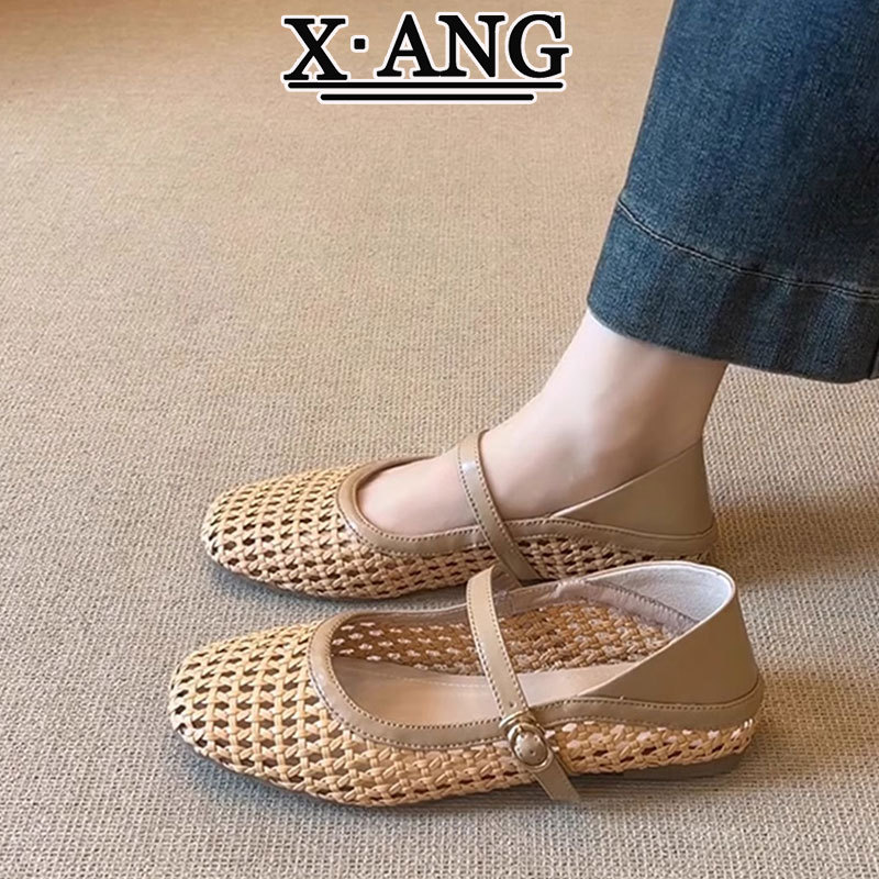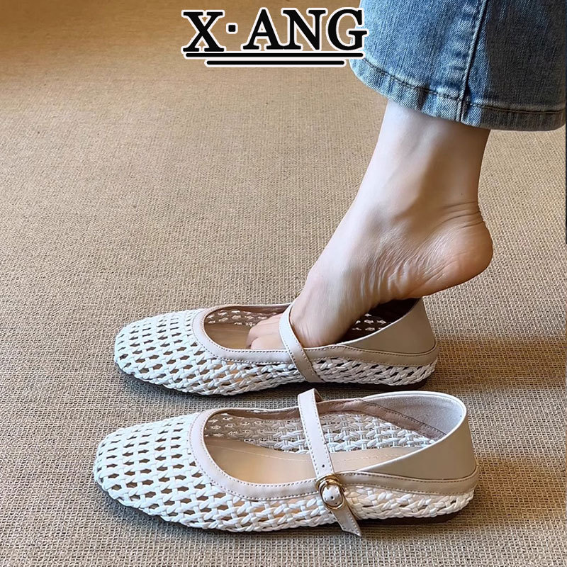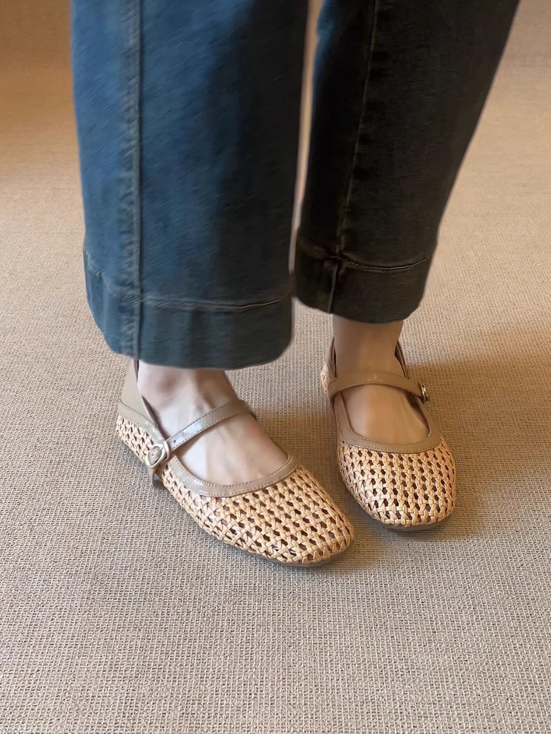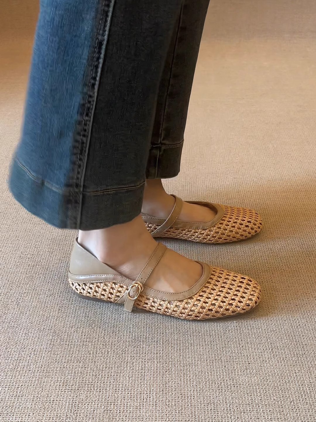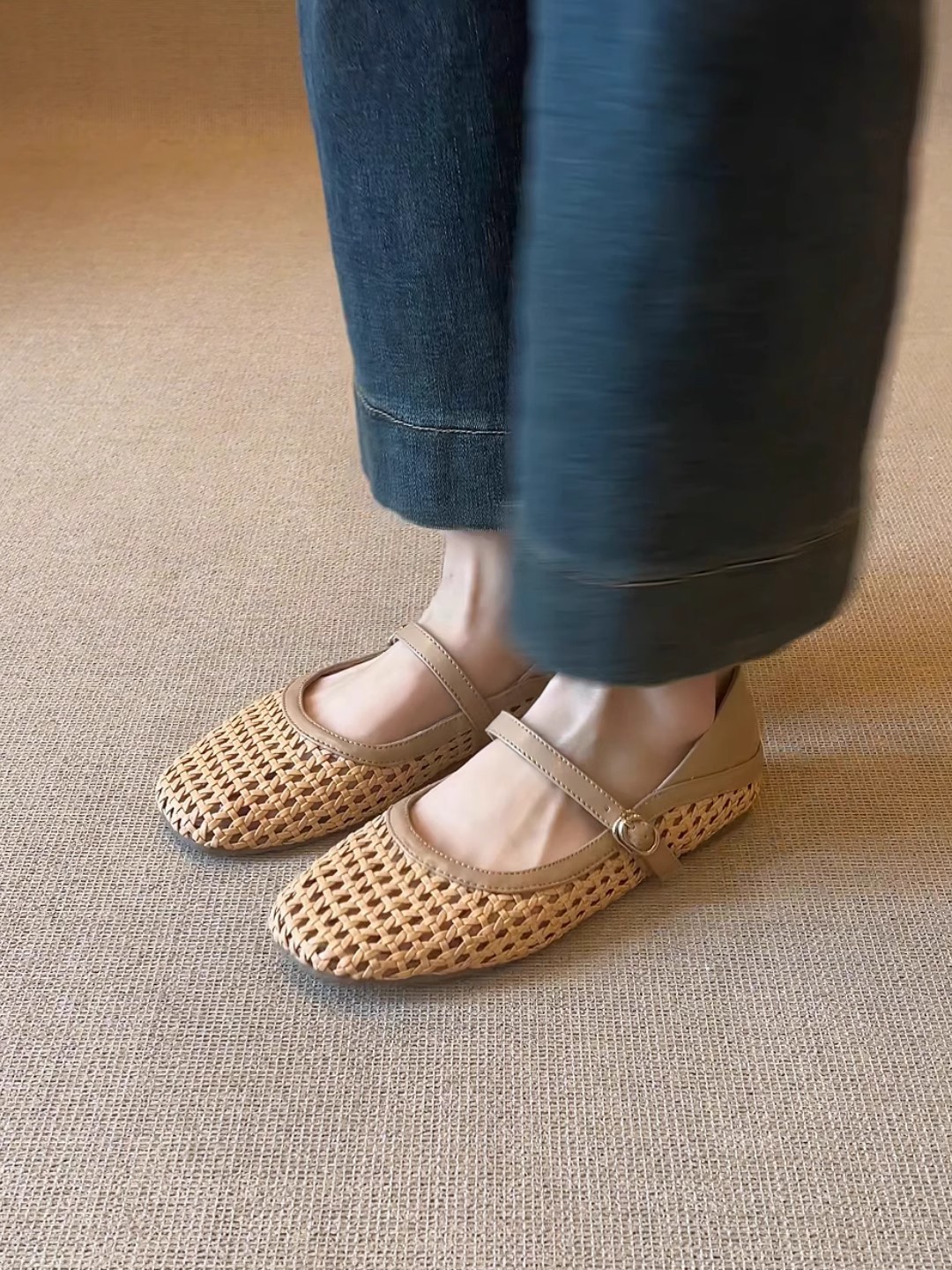 양가죽 손으로 짠 프렌치 메리 제인 신발 여름 펌프 플랫 슈즈 중공 통기성 나막신 샌들 여성용