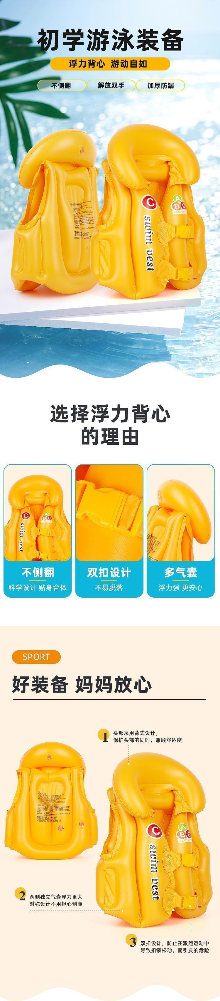 [여름파도] S사이즈 Jianyi 15kg 이내 [두꺼워짐] - 노란색 부력 재킷 + 수영 고글 + 펌프