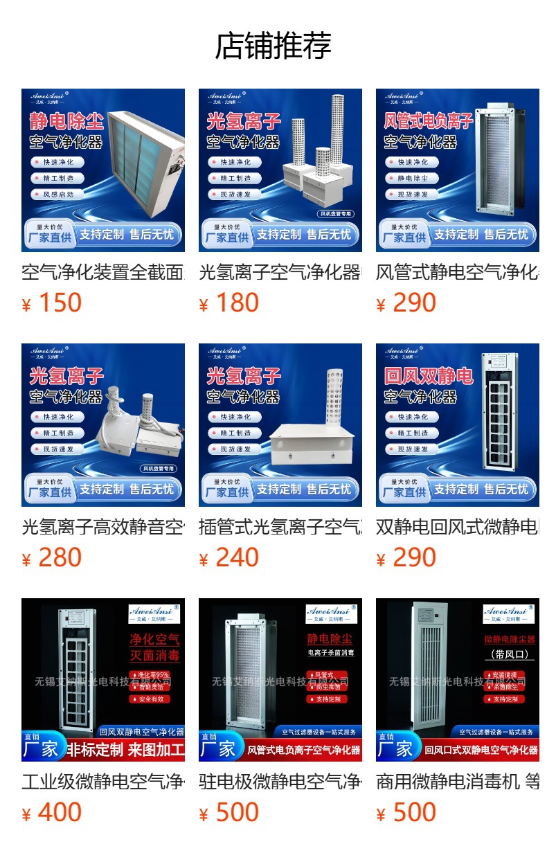 산업용 등급 마이크로 정전기 공기 청정기, 상업용 가정용 고효율 먼지 제거, 포름알데히드 제거, PM2.5 저소비 저소음