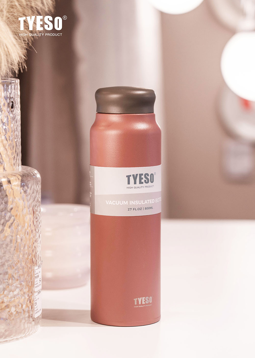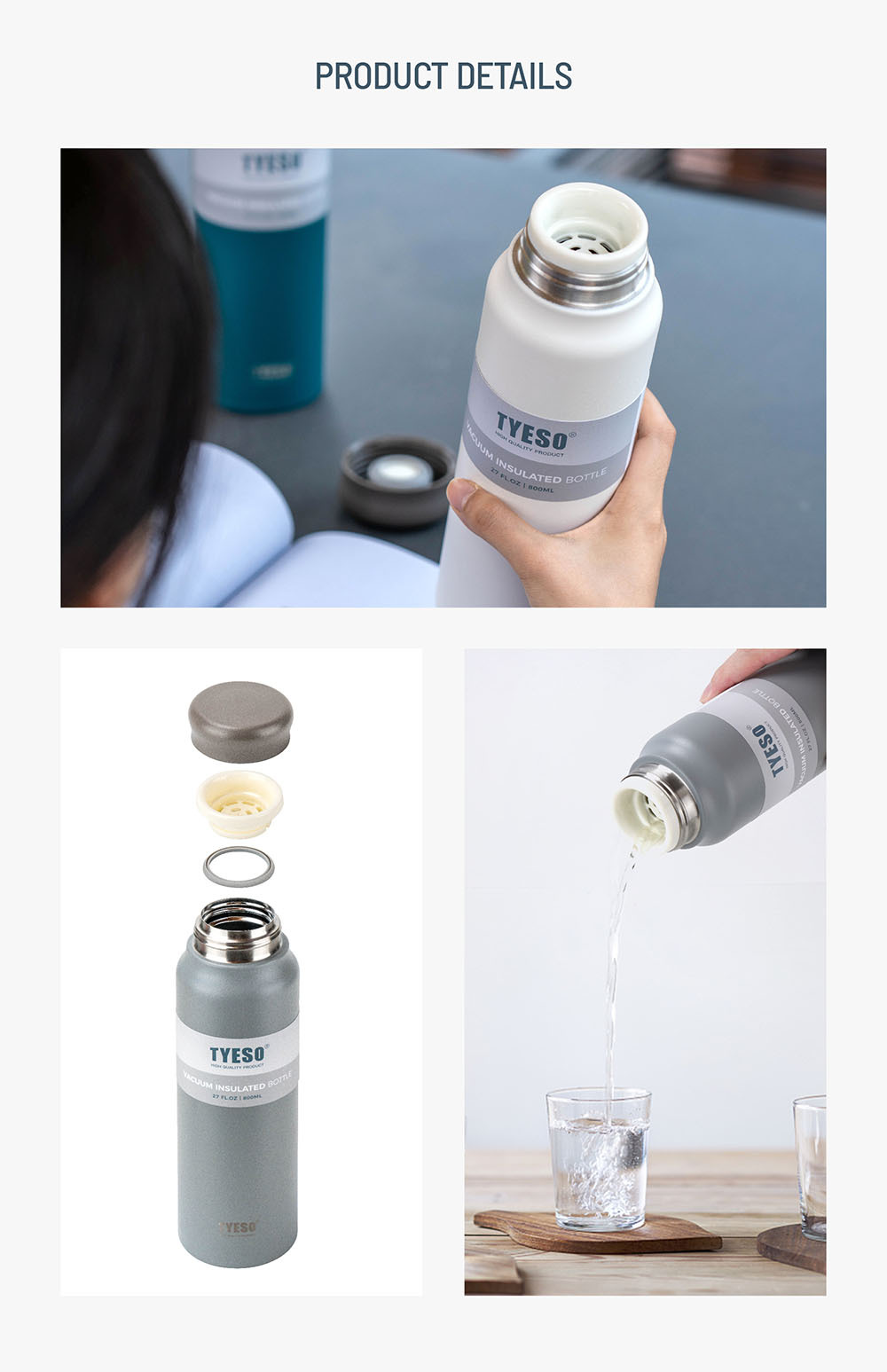 Tyeso 대용량 스테인레스 스틸 보온병 컵 ins 남성과 여성 학생을위한 고급스러운 창의적 간단한 휴대용 물 컵