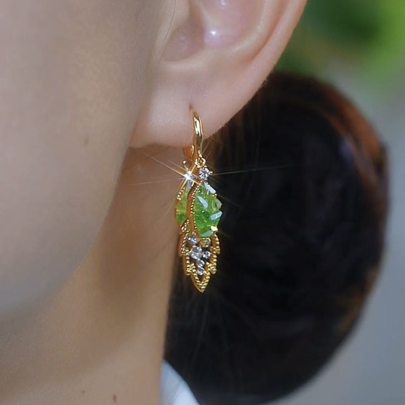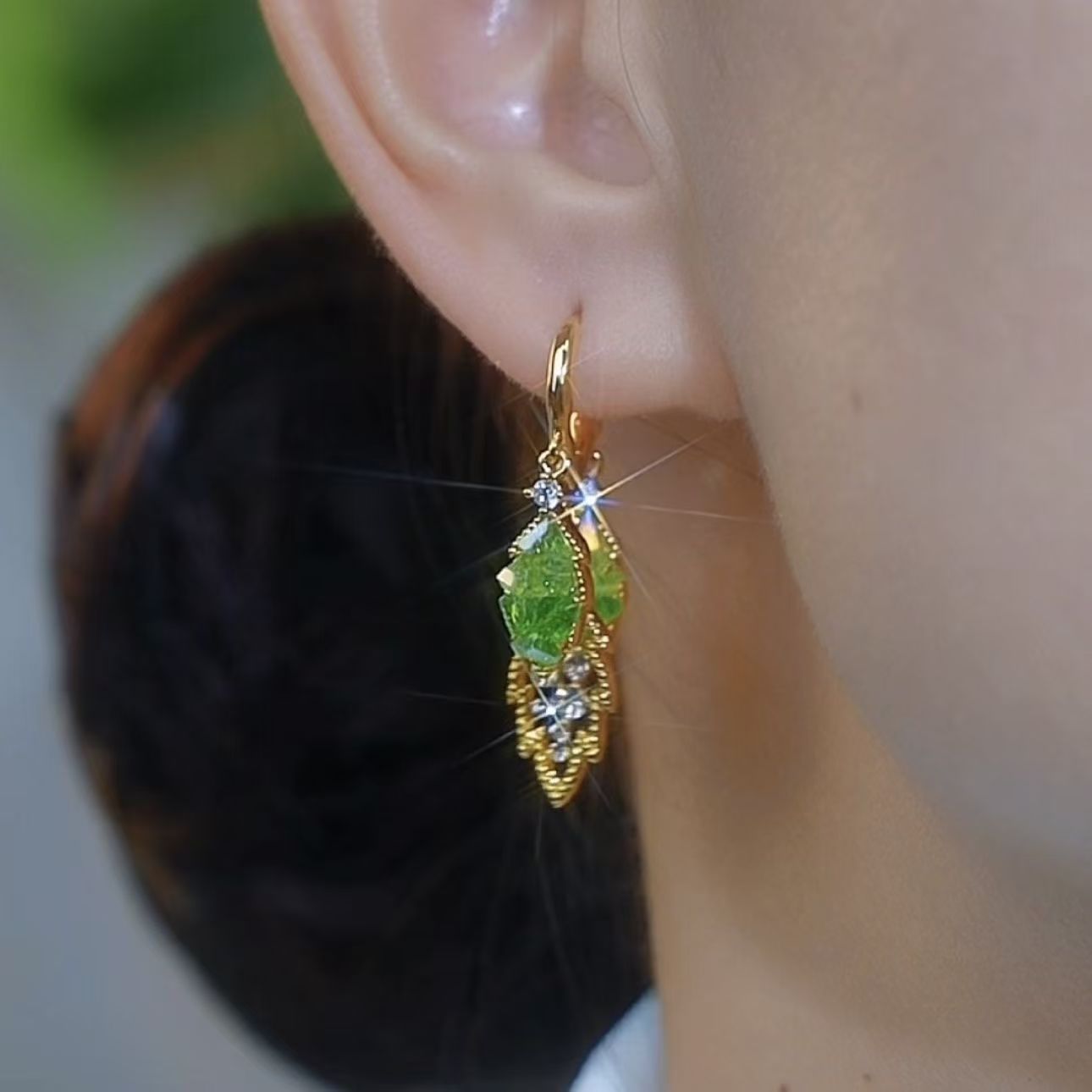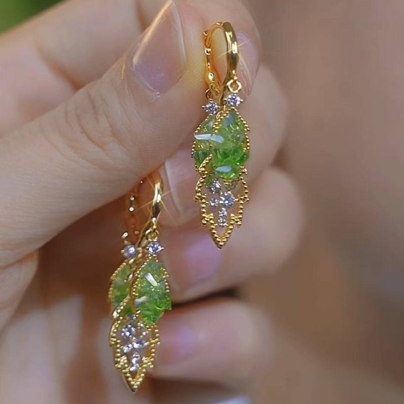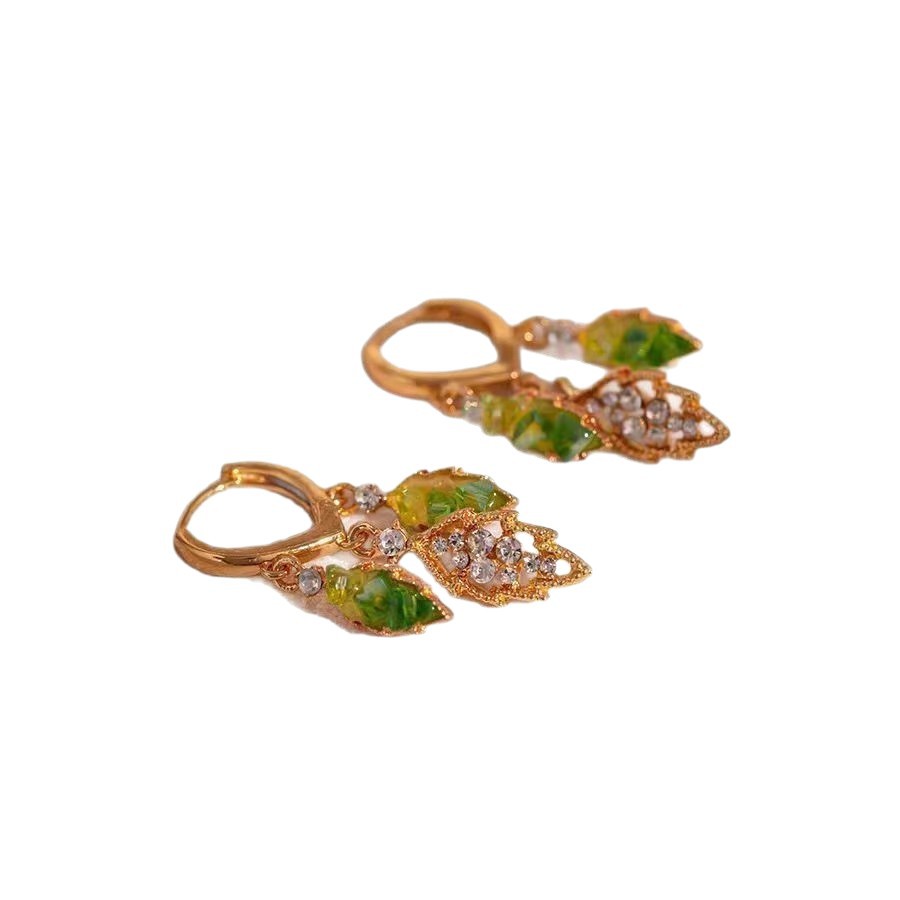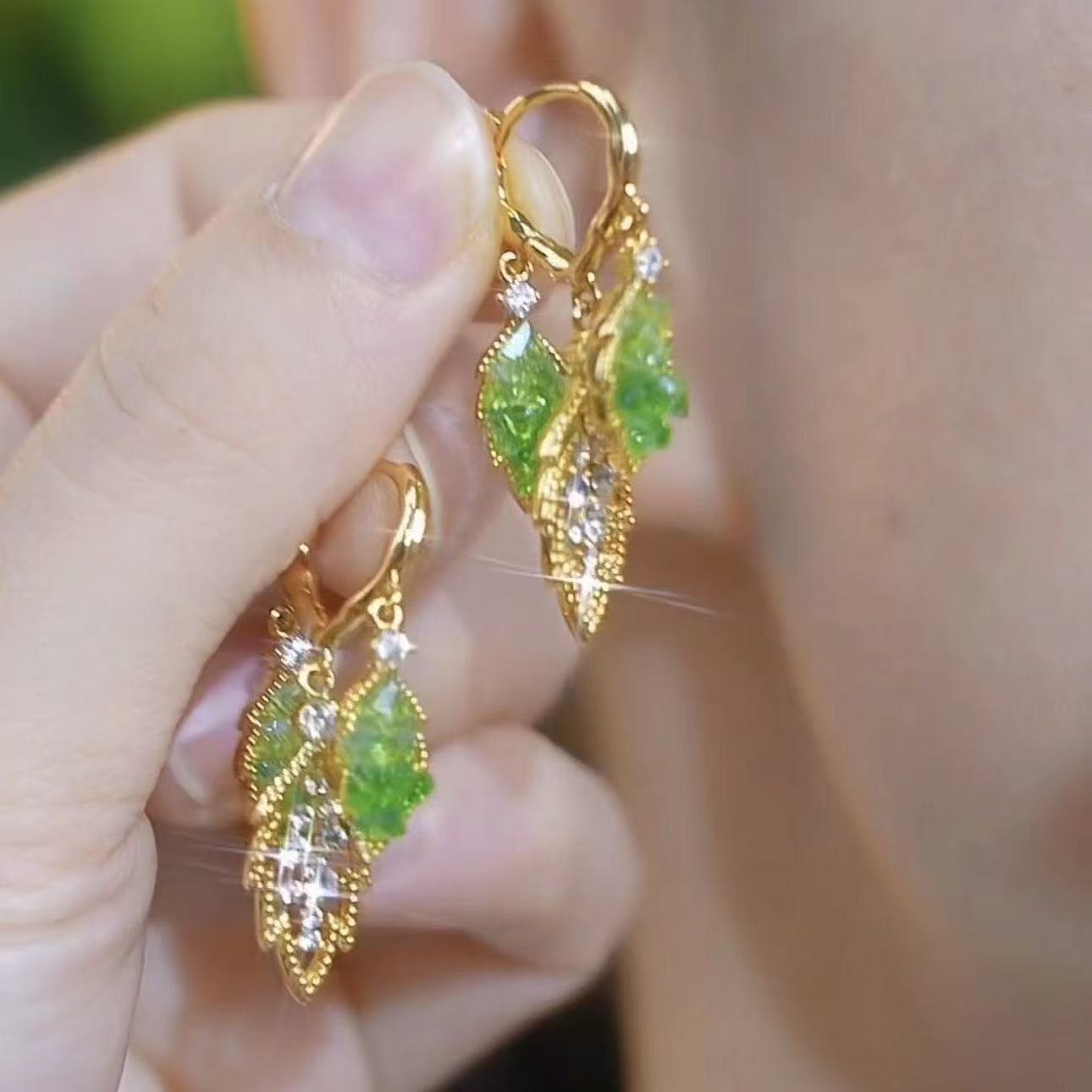 여름 작은 신선한 귀걸이 녹색 그라데이션 크리스탈 잎 귀걸이 2025 새로운 패션 틈새 디자인 귀걸이
