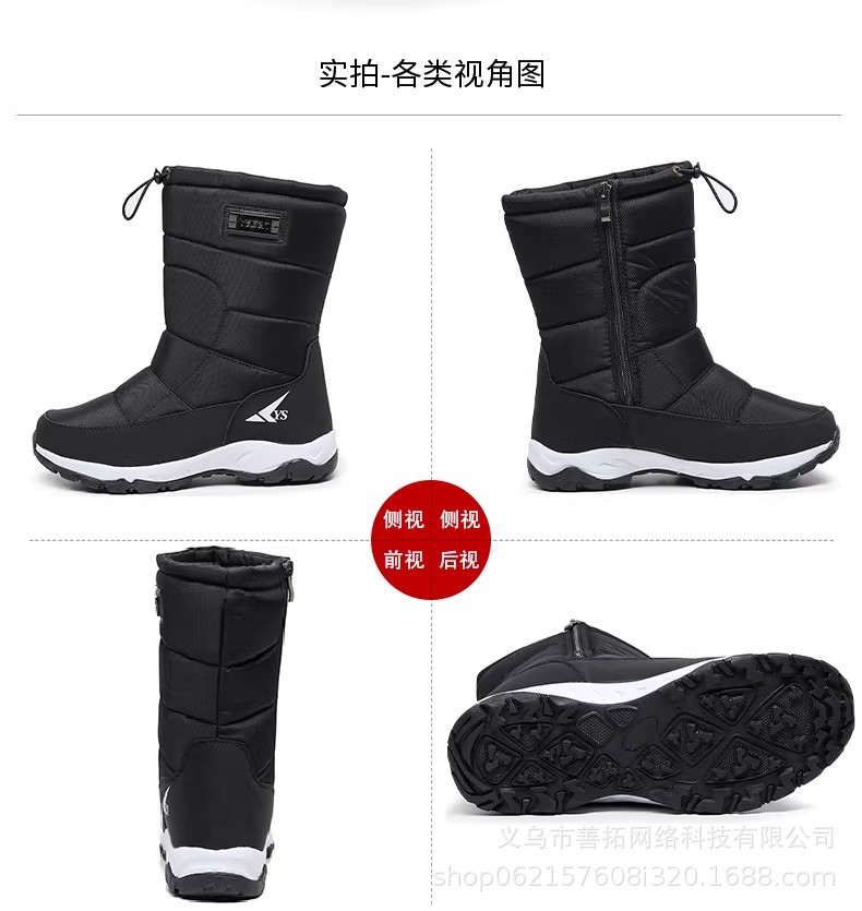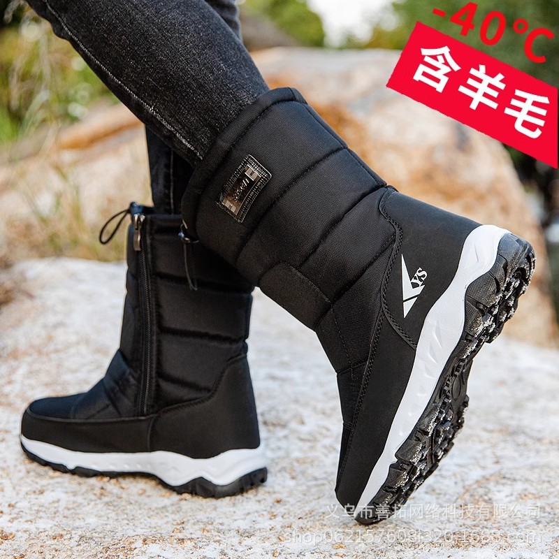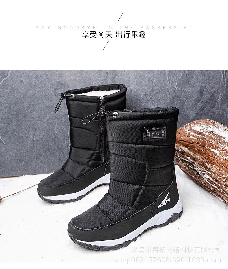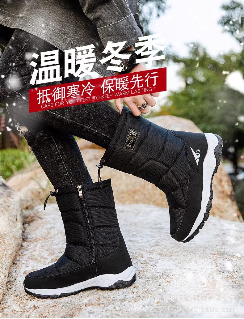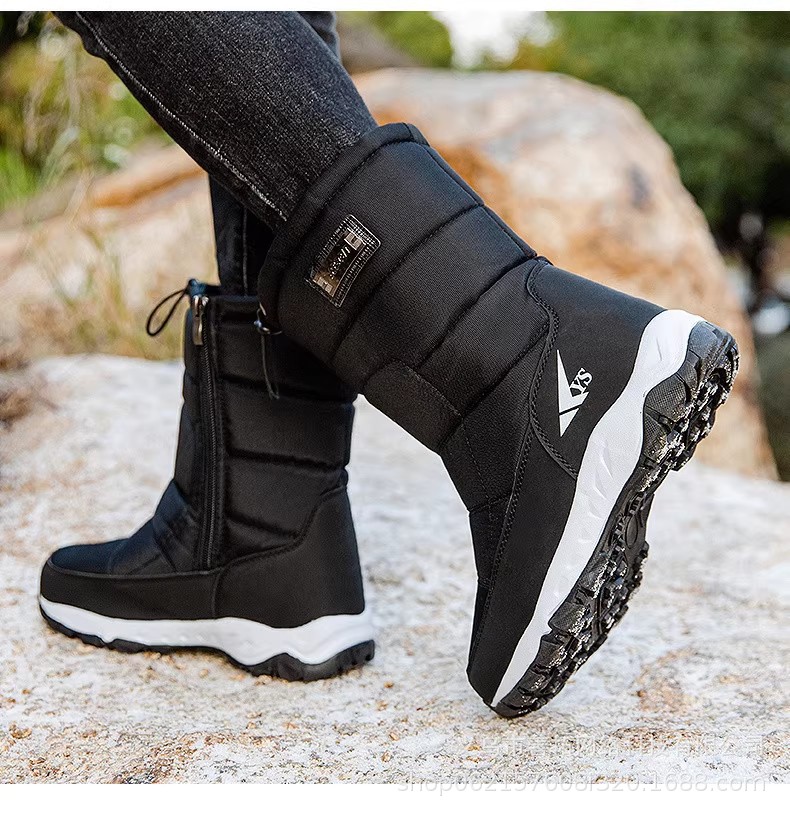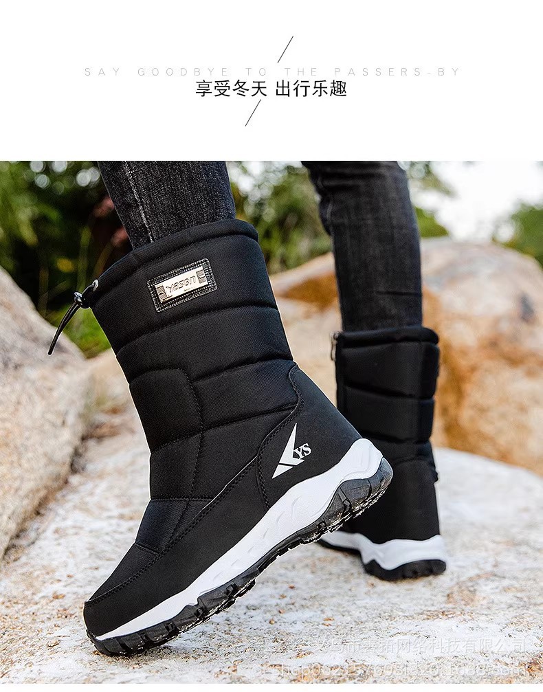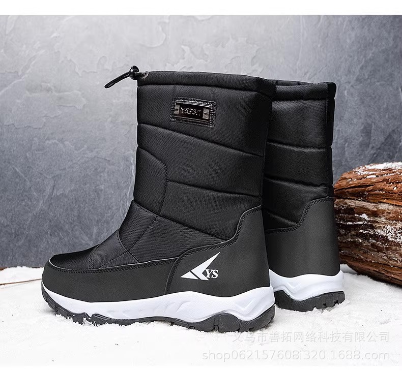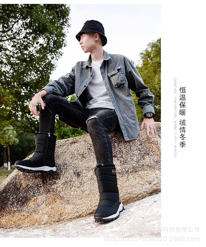 2025 겨울 커플 스노우 부츠 남성용 하이탑 두꺼운 따뜻한 벨벳 코튼 슈즈 남성용 방수 미끄럼 방지 중간 길이 부츠
