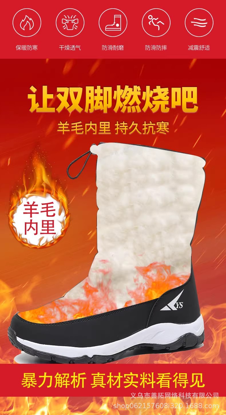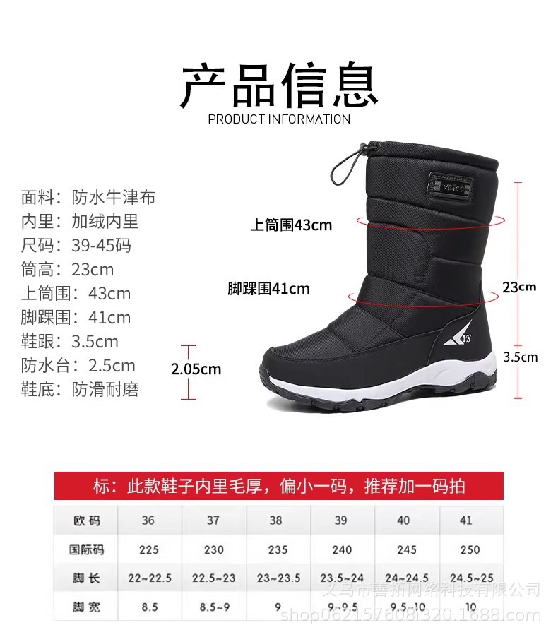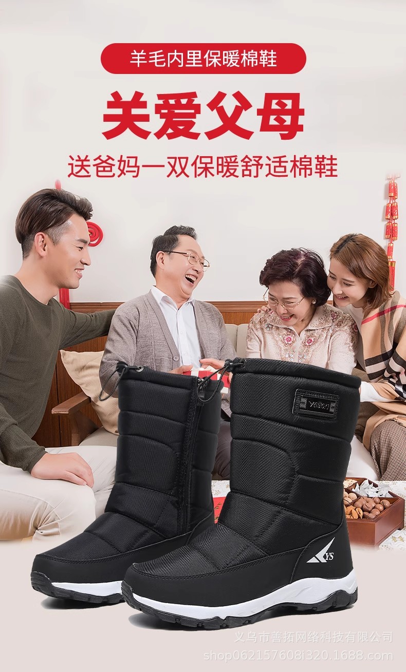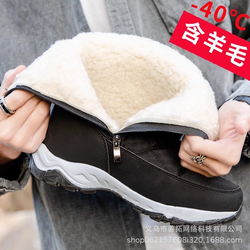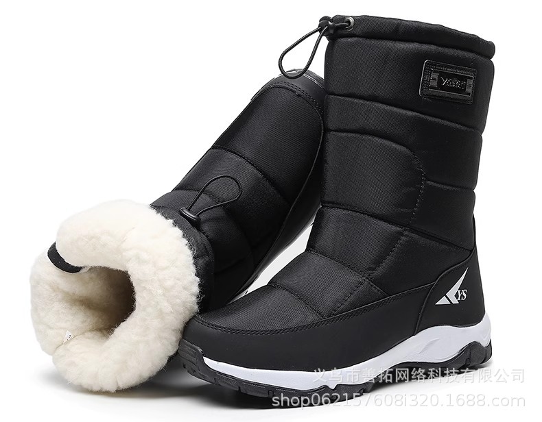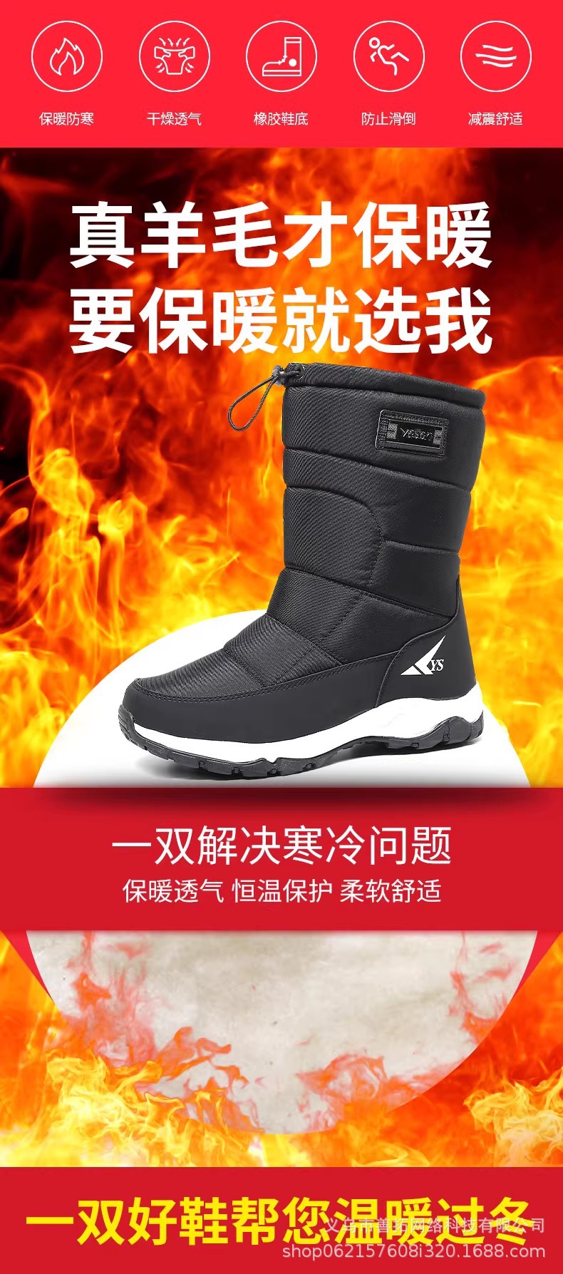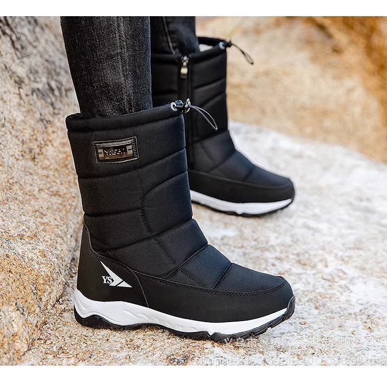 2025 겨울 커플 스노우 부츠 남성용 하이탑 두꺼운 따뜻한 벨벳 코튼 슈즈 남성용 방수 미끄럼 방지 중간 길이 부츠