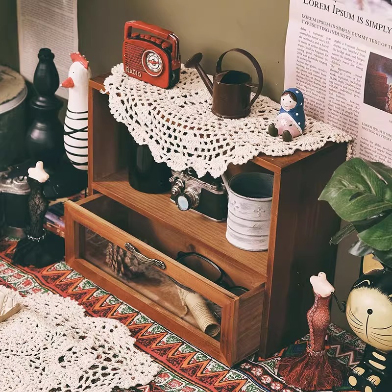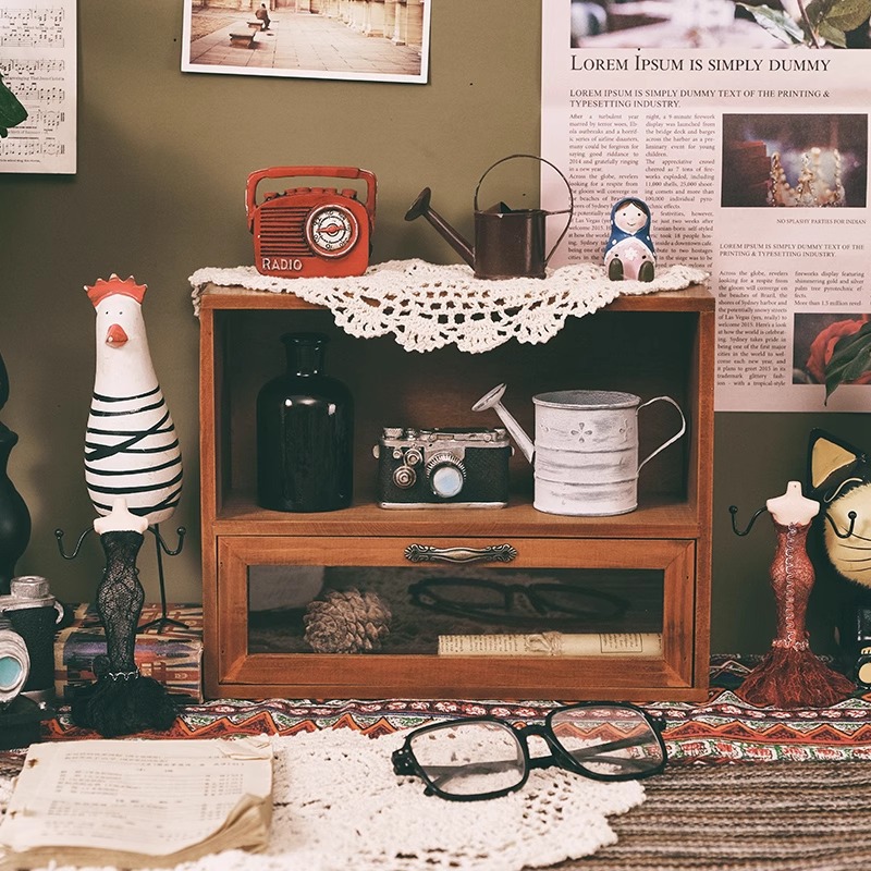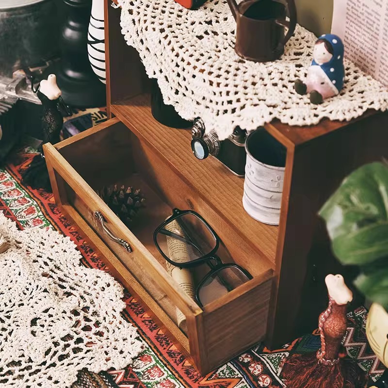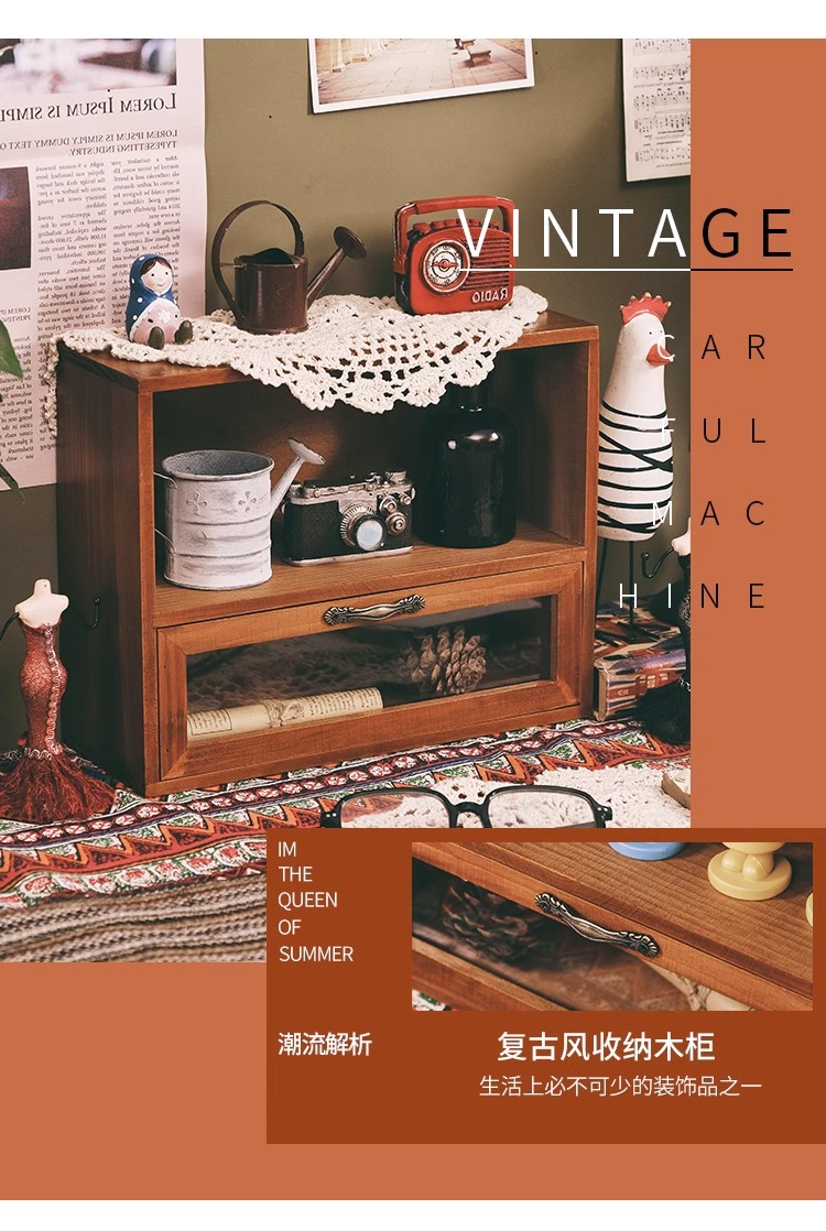 나무 캐비닛 크리 에이 티브 복고풍 데스크탑 오피스 스토리지 박스 서랍 유형 스킨 케어 화장품 향수 정리 스토리지 랙