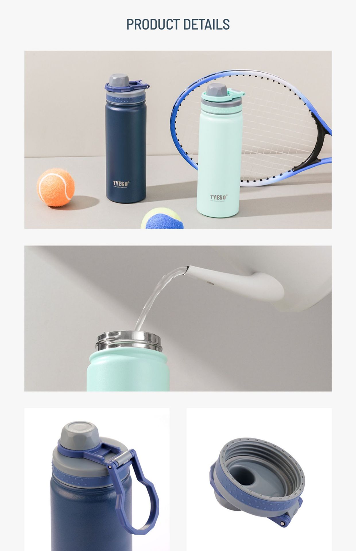 TYESO 보온병 컵 대용량 750ml 야외 스포츠 물병 남성과 여성을위한 휴대용 스테인레스 스틸 워터 컵