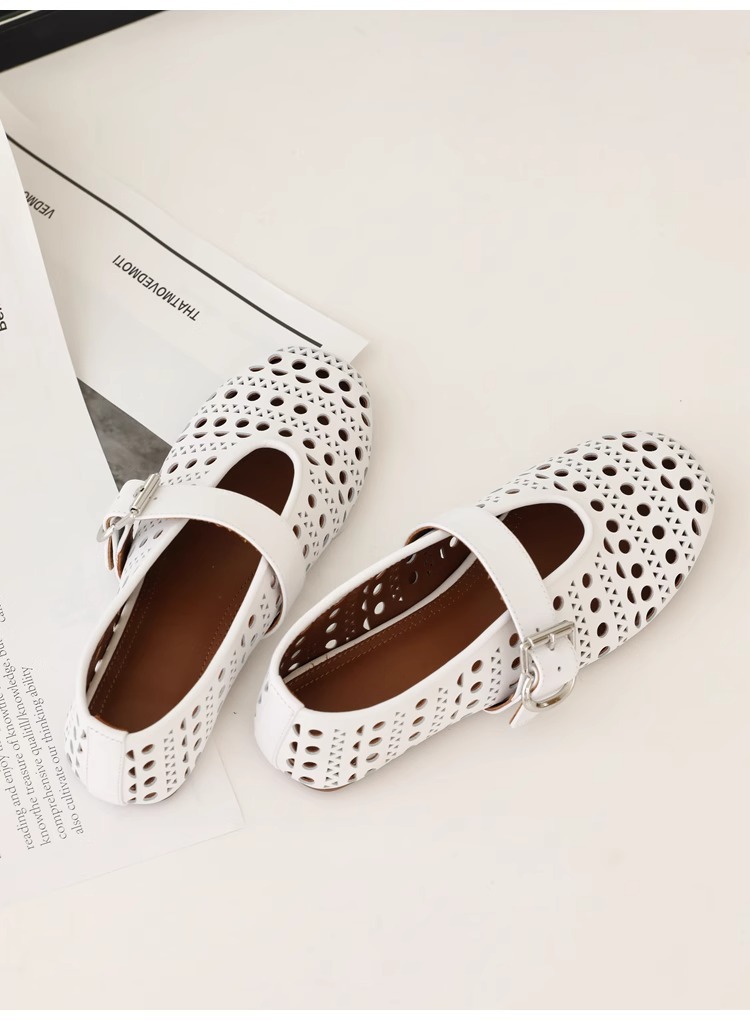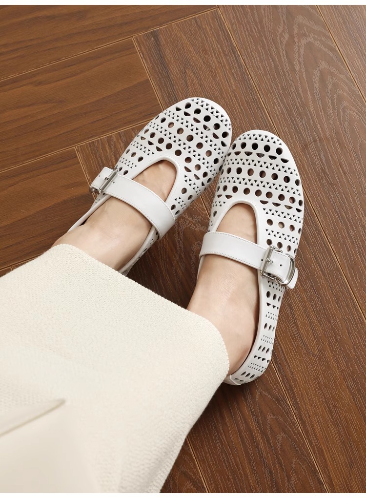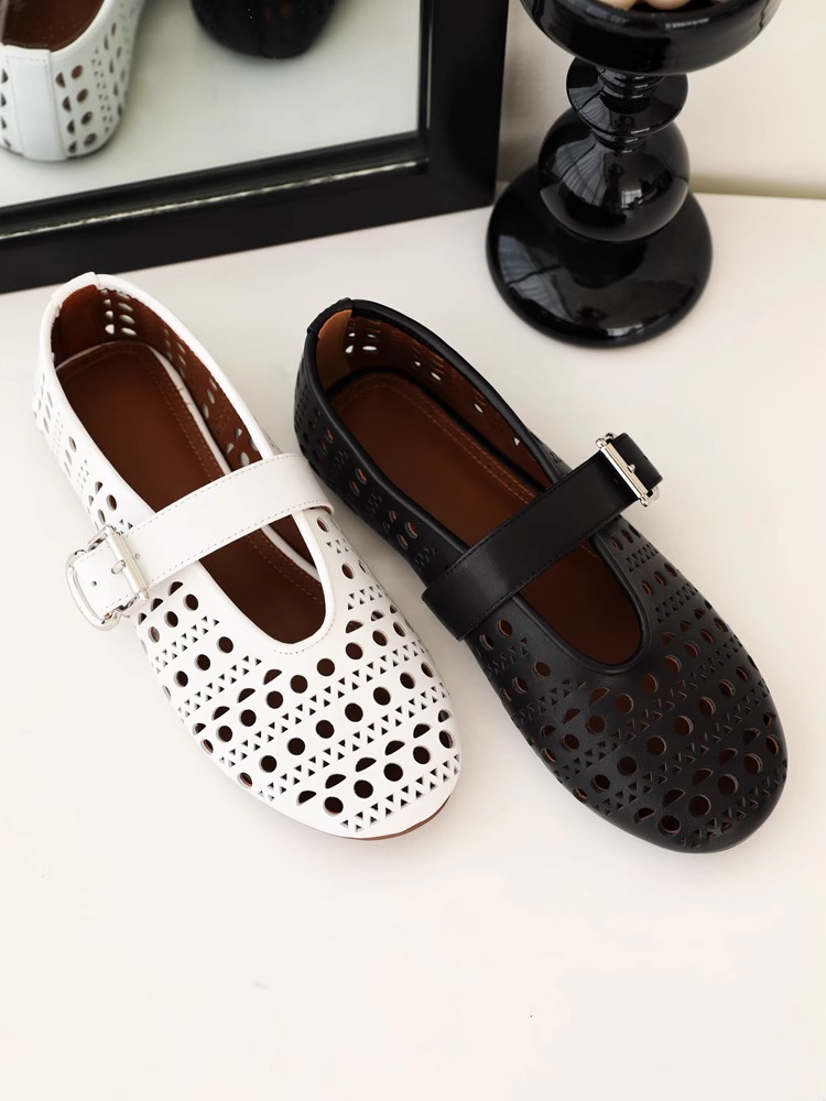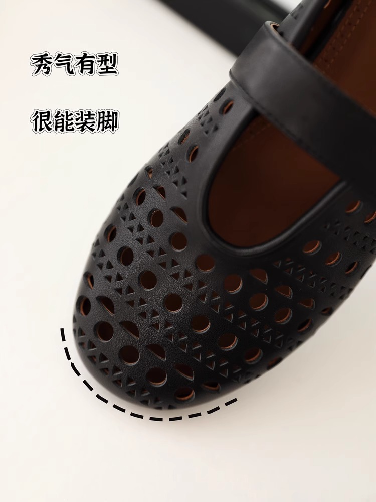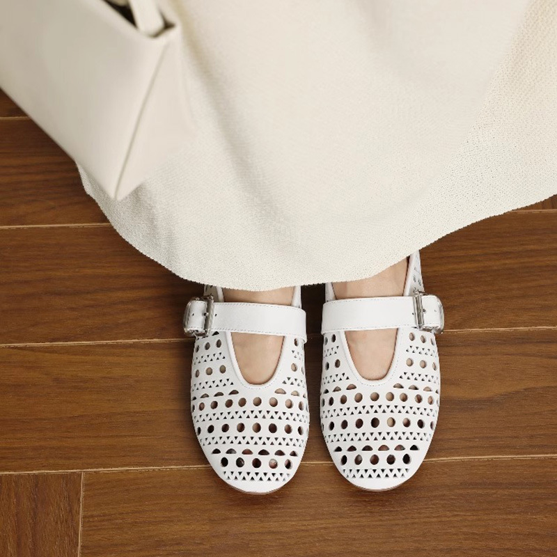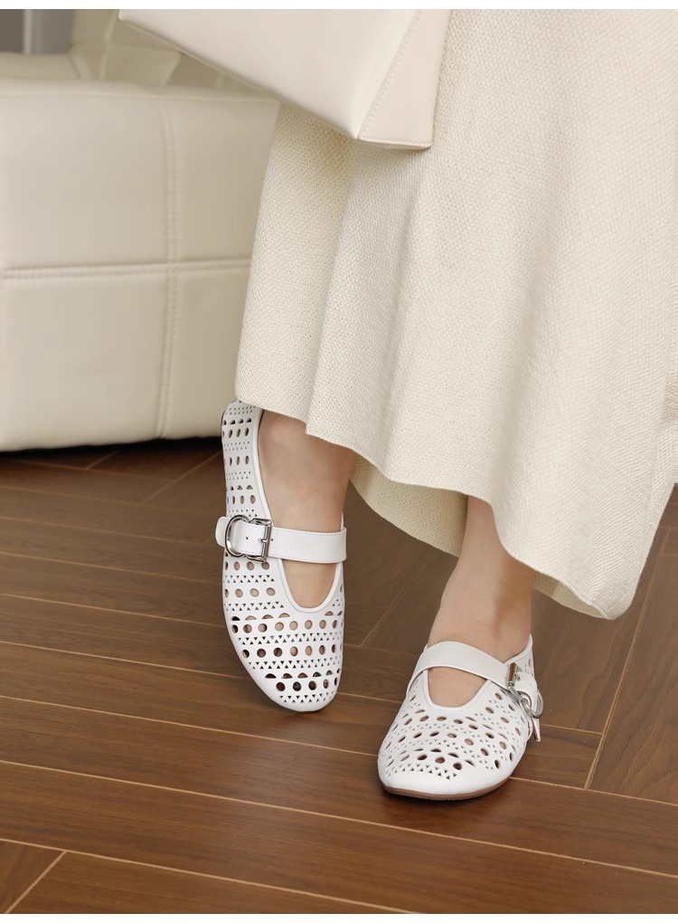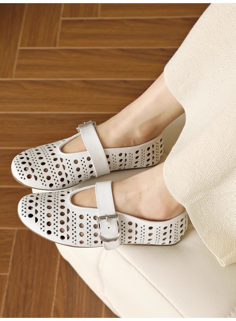 2025 새로운 스타일 중공 간단한 정품 가죽 메리 제인 여성 신발 플랫 바닥 할머니 신발 여성 원 라인 버클 스트랩 여성 신발
