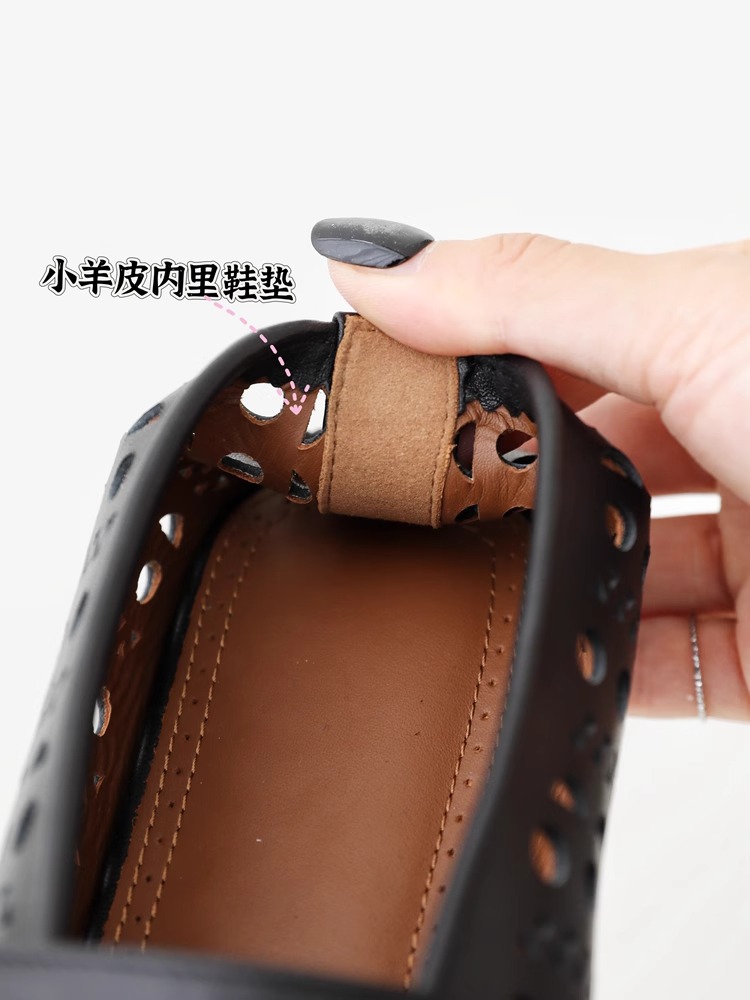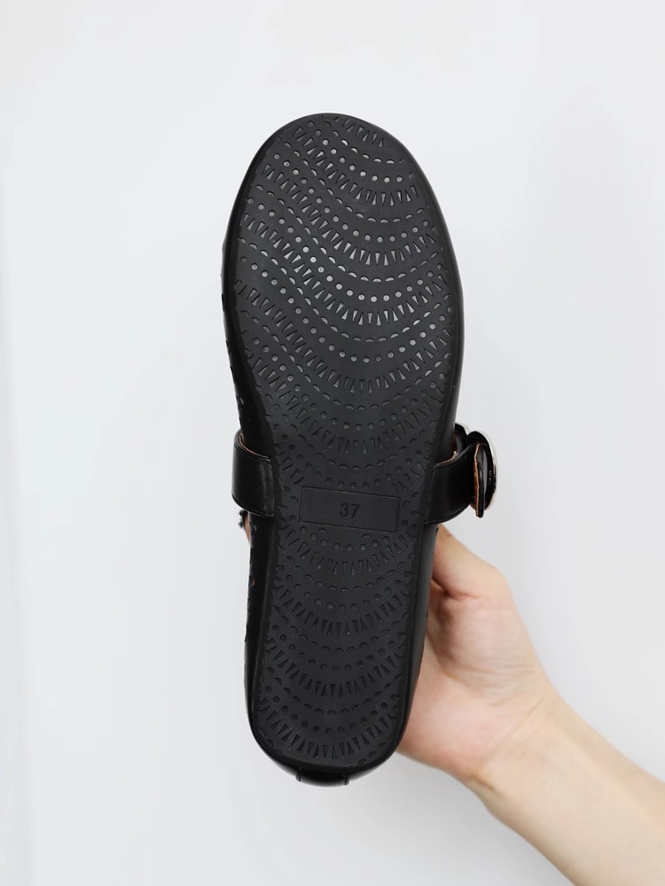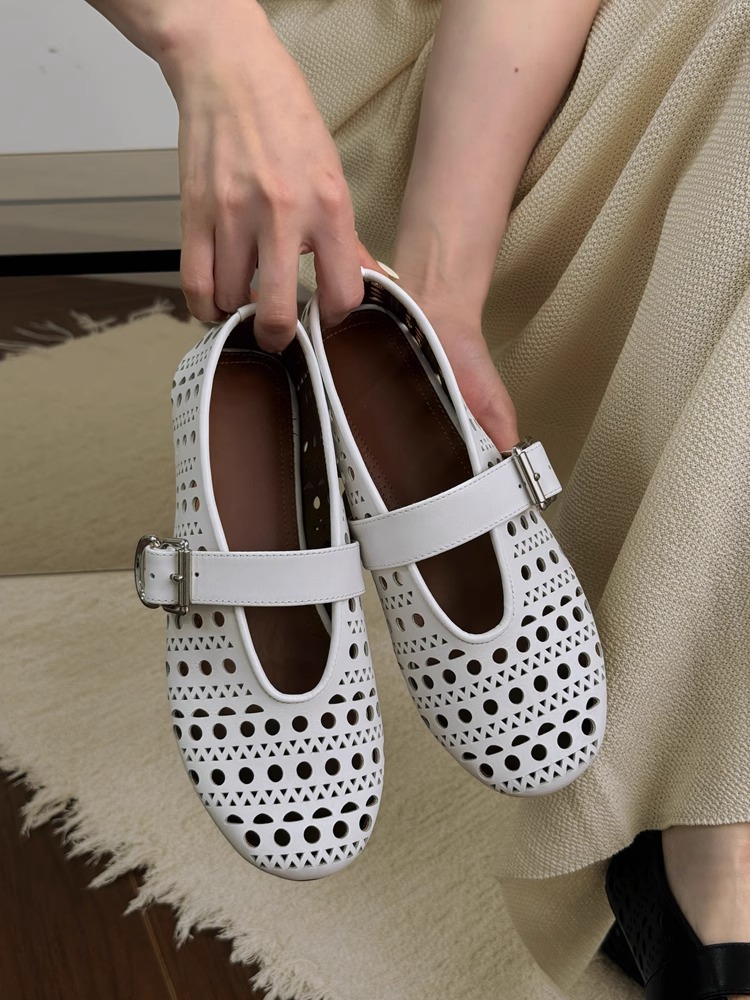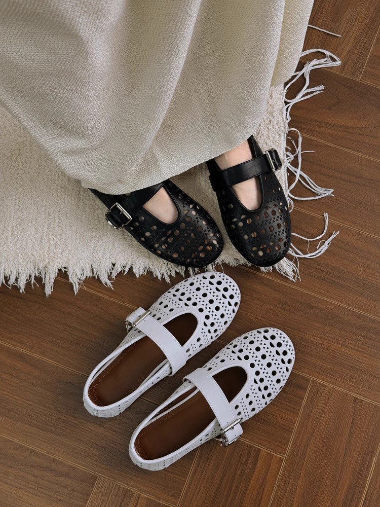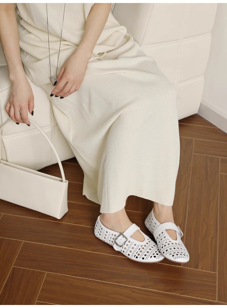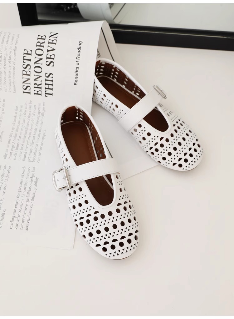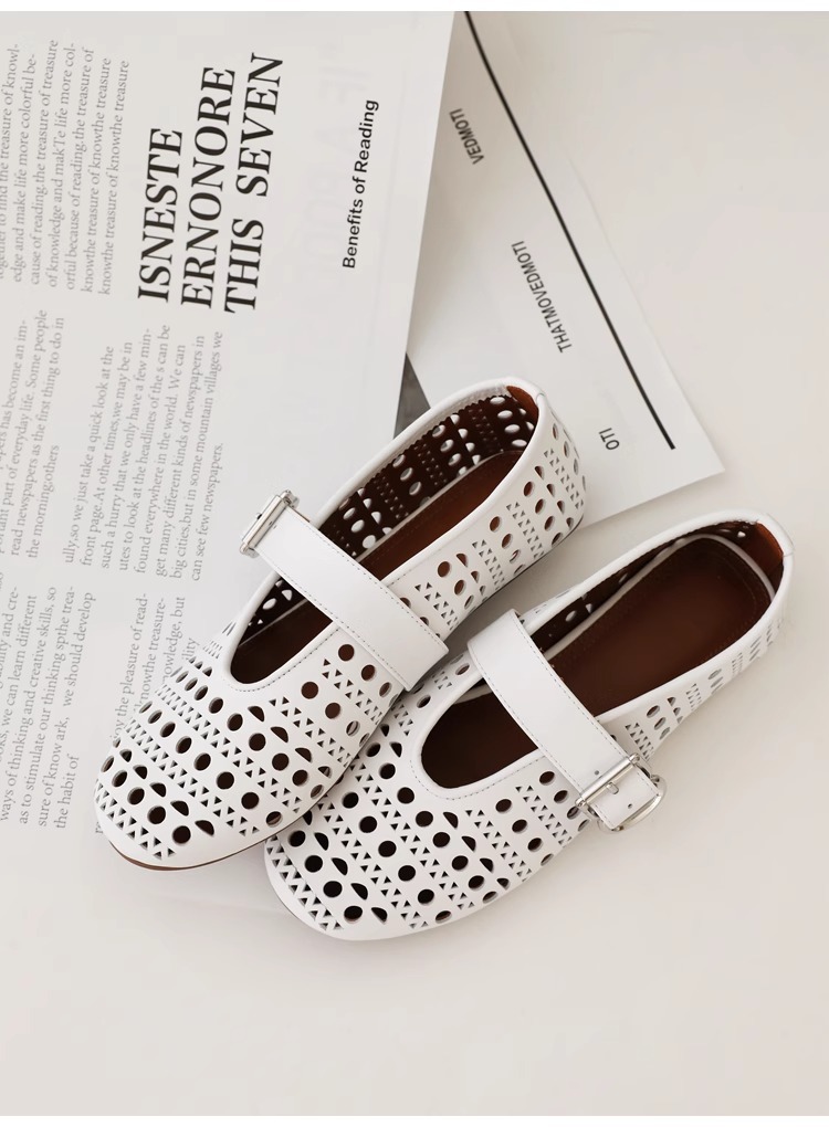 2025 새로운 스타일 중공 간단한 정품 가죽 메리 제인 여성 신발 플랫 바닥 할머니 신발 여성 원 라인 버클 스트랩 여성 신발