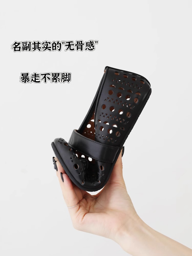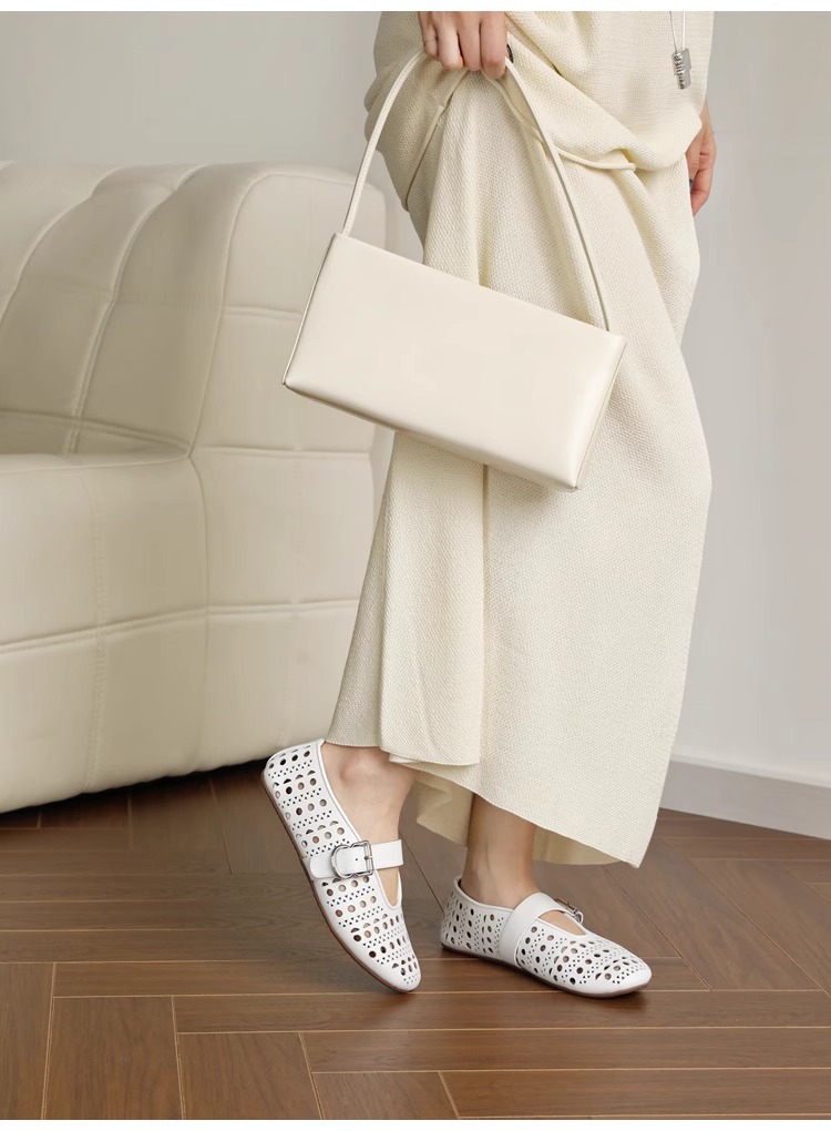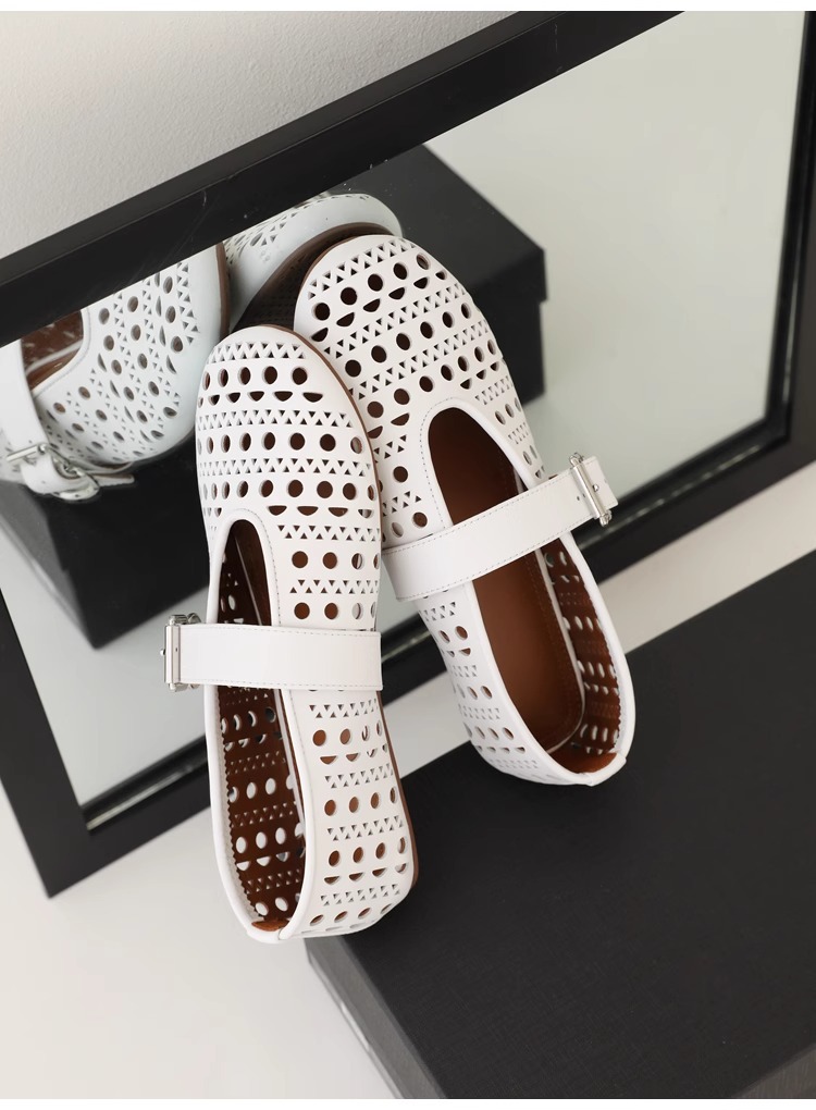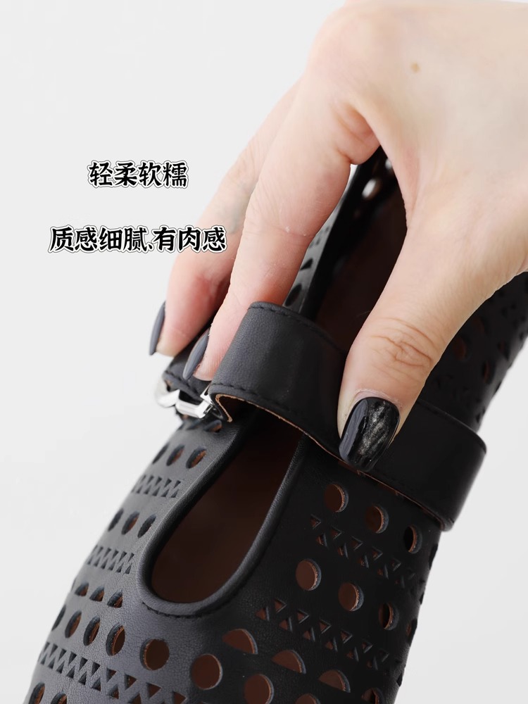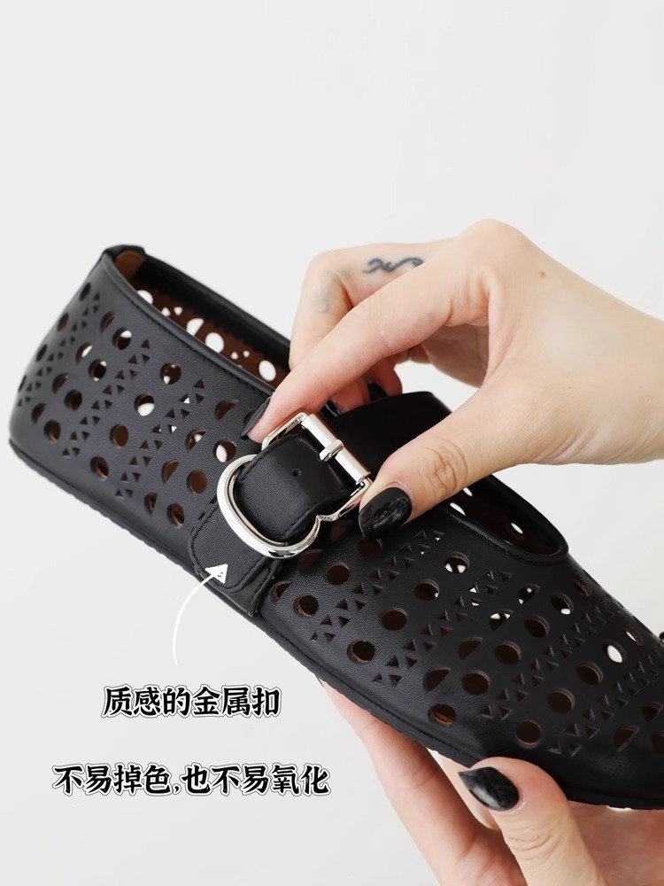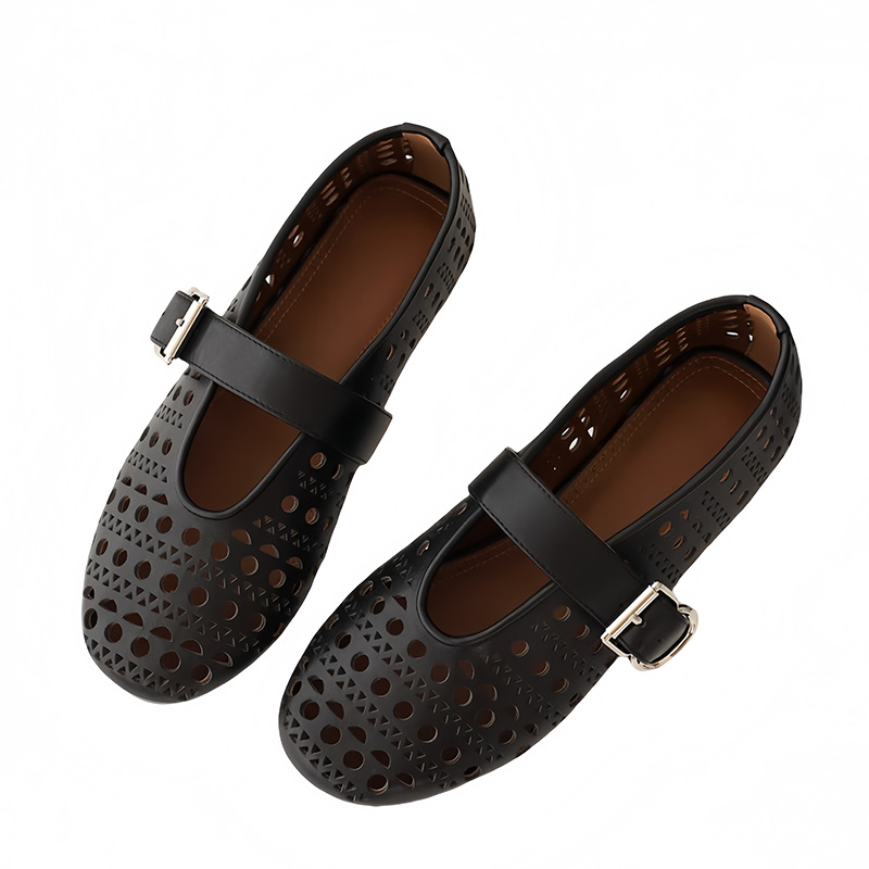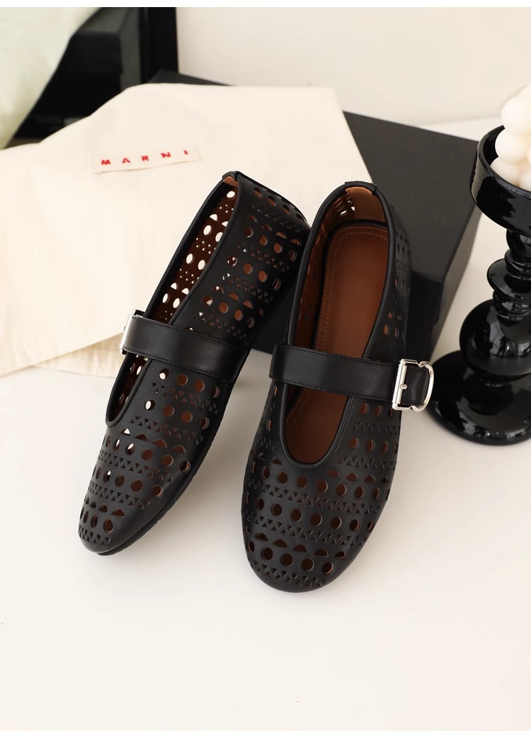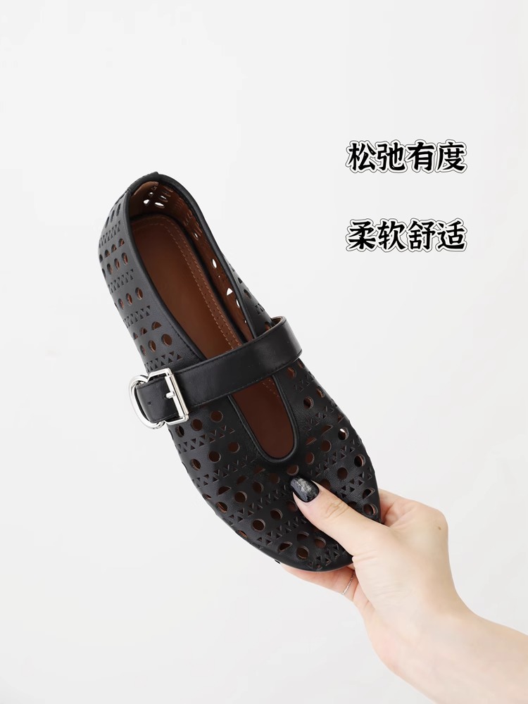 2025 새로운 스타일 중공 간단한 정품 가죽 메리 제인 여성 신발 플랫 바닥 할머니 신발 여성 원 라인 버클 스트랩 여성 신발