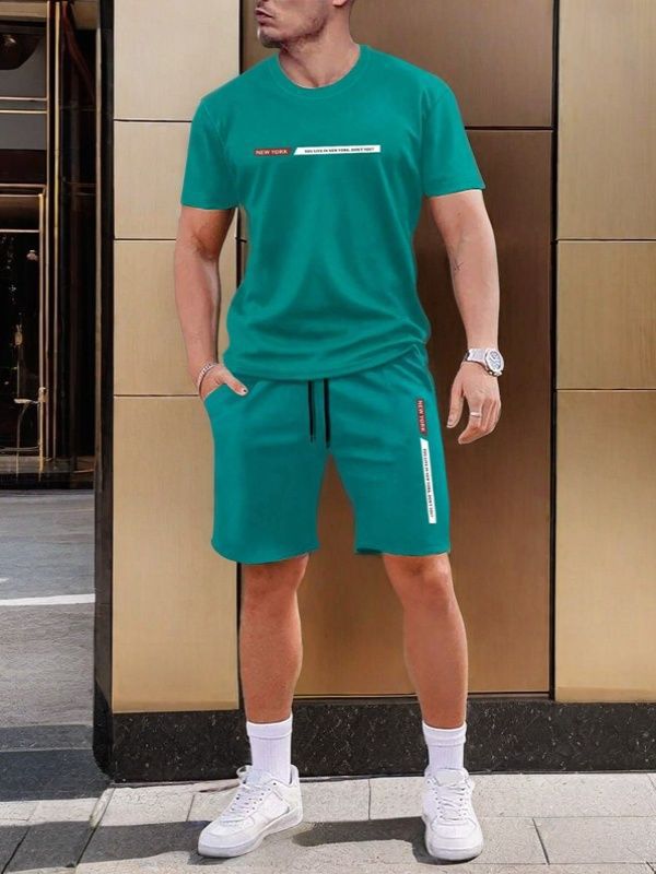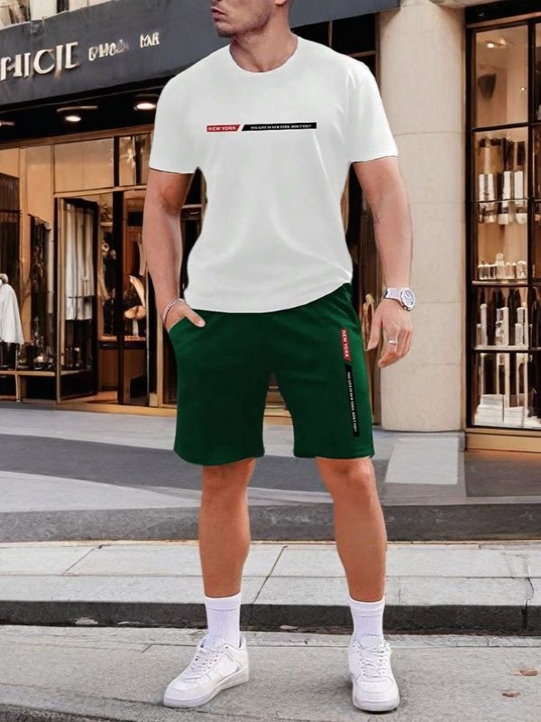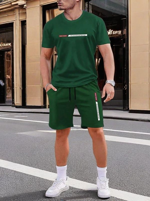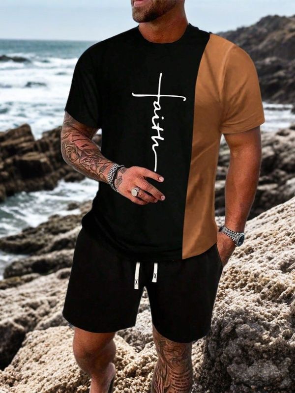 국경 간 Amazon 새로운 남성 반팔 티셔츠 정장 3D 인쇄 여름 캐주얼 스포츠 남성용 속건성 비치 바지
