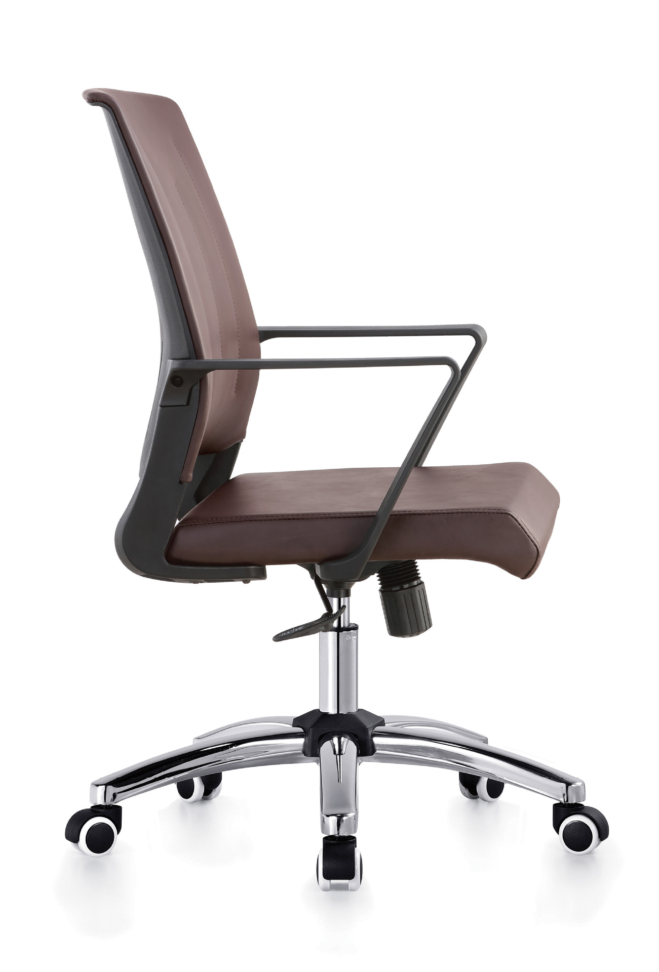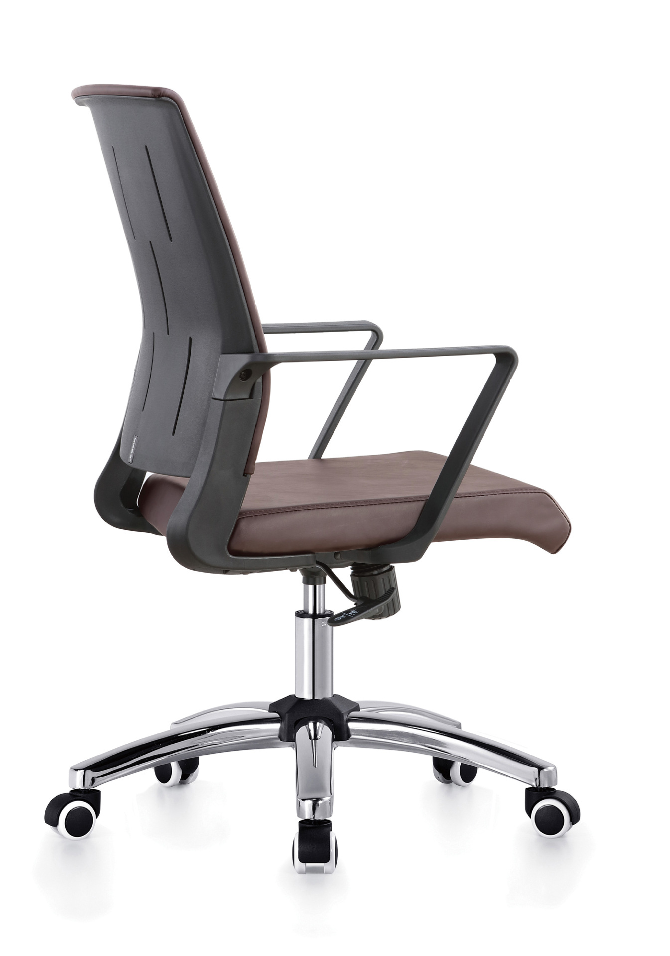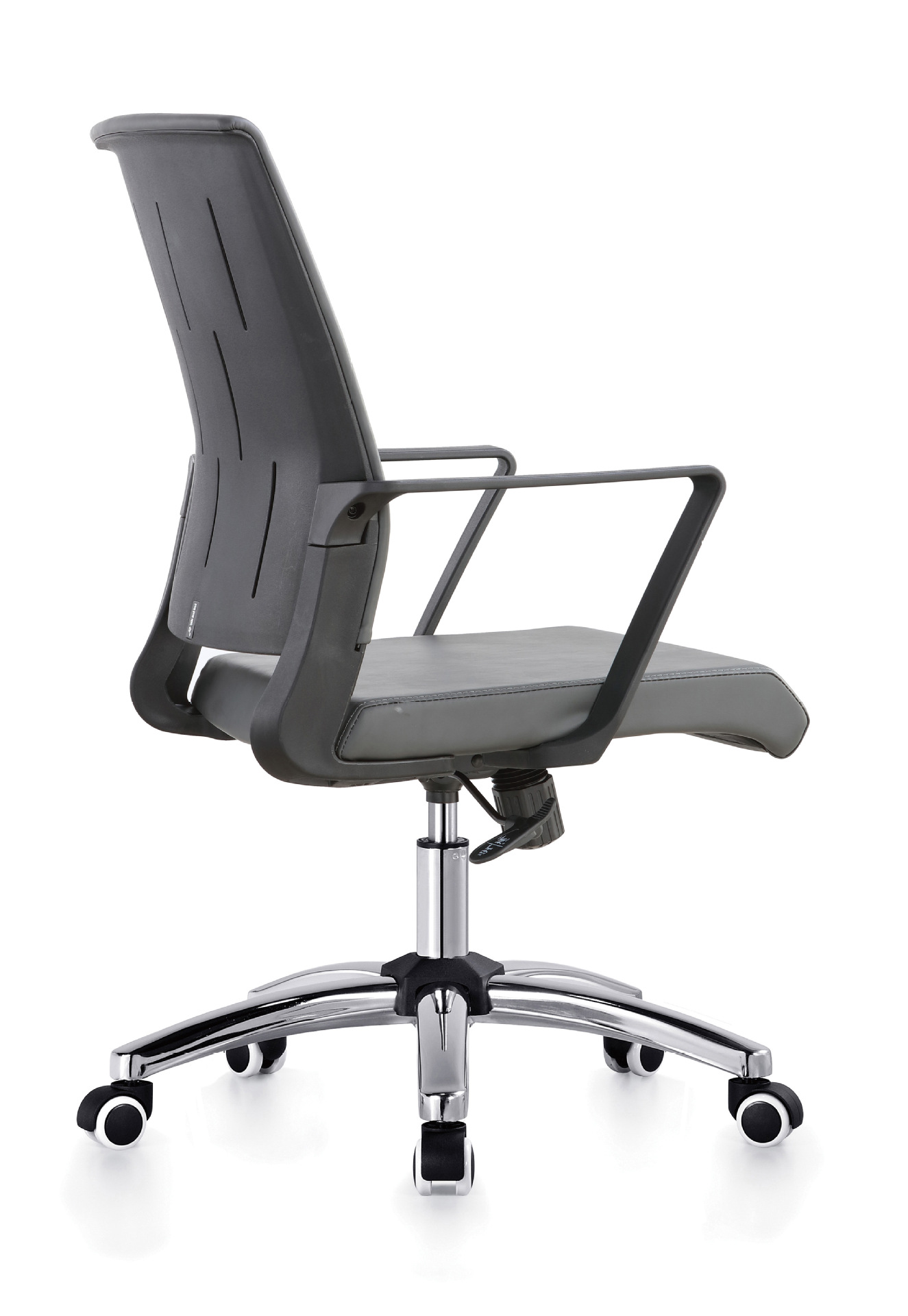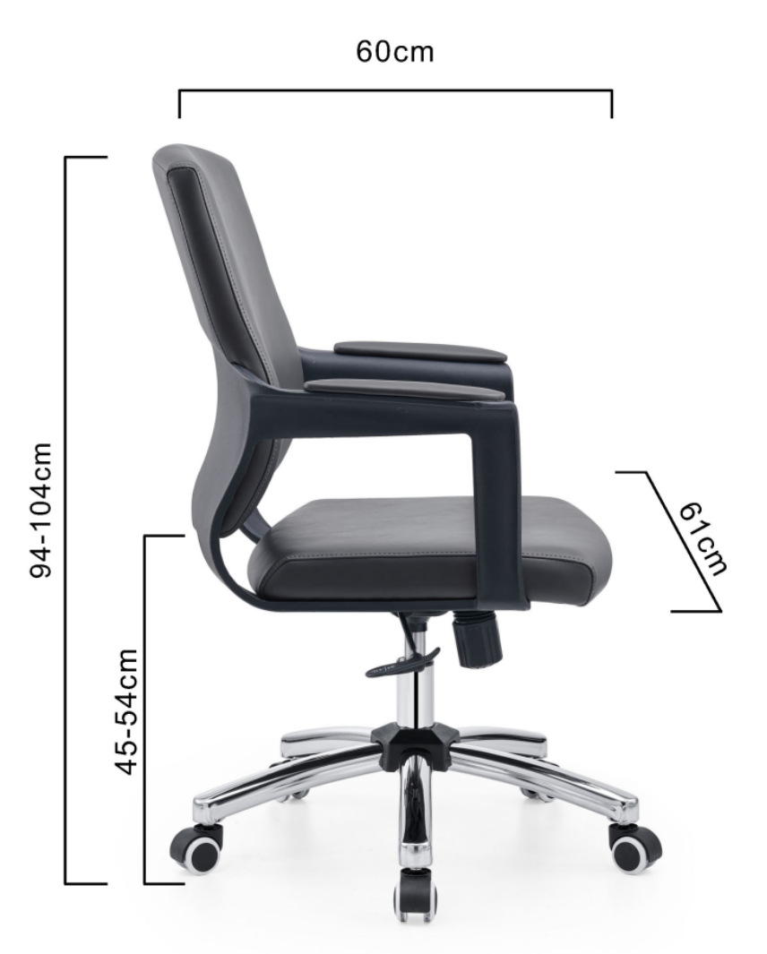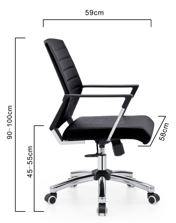 扶 手:黑色注塑+皮扶手面,扶手连接椅背。