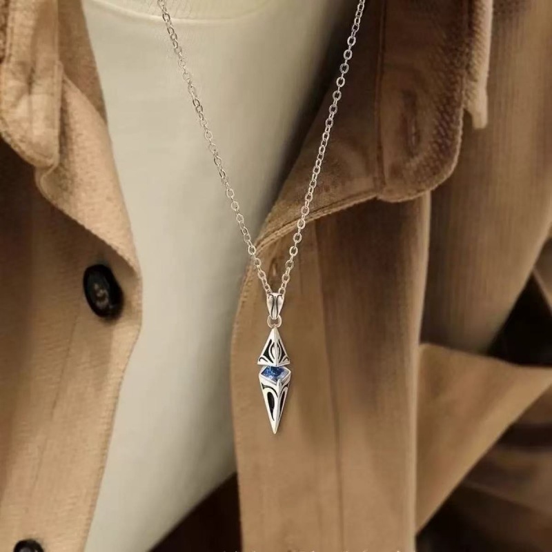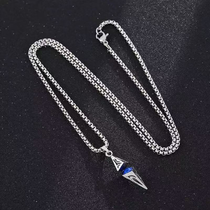 새로운 스타 다이아몬드 모양의 블루 지르콘 하이 엔드 기하학 목걸이 남성 유행 잘 생긴 기능 펜던트 트렌디 콜드 심플 남성