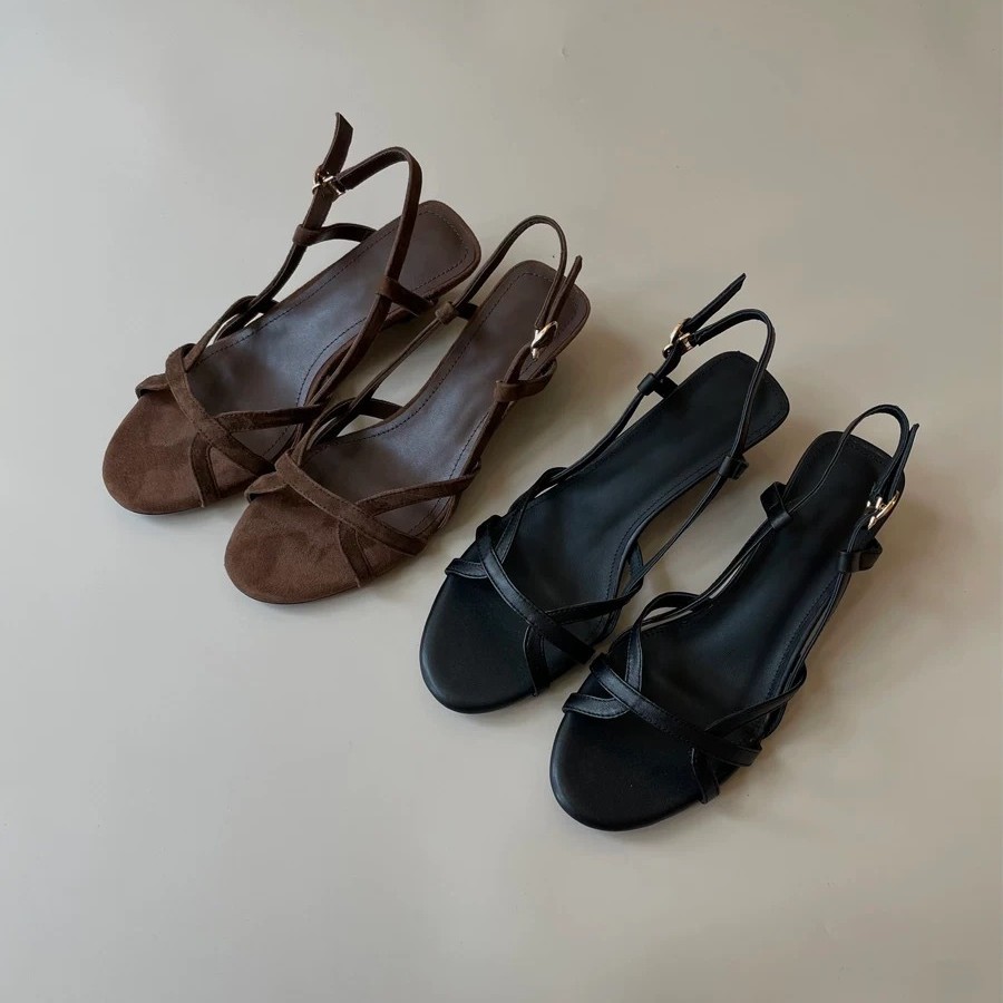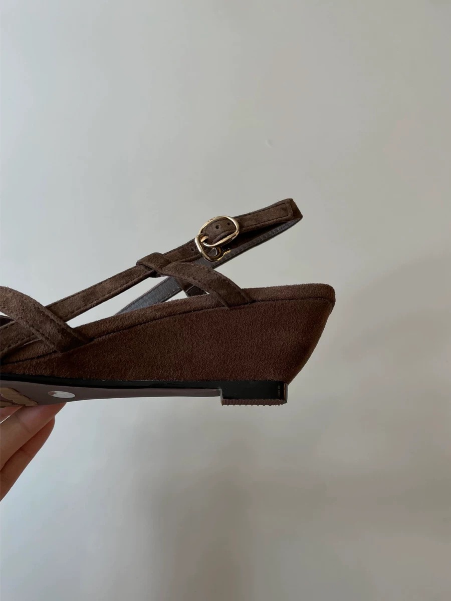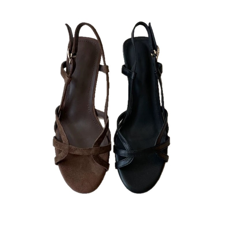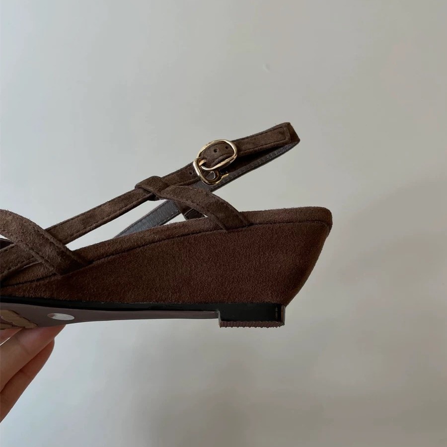 양가죽 버전 ~ 레트로 틈새 웨지 힐 라운드 투 오픈 토 샌들 여성 2025 여름 신작 다용도 로마 하이힐