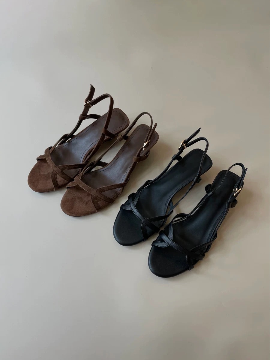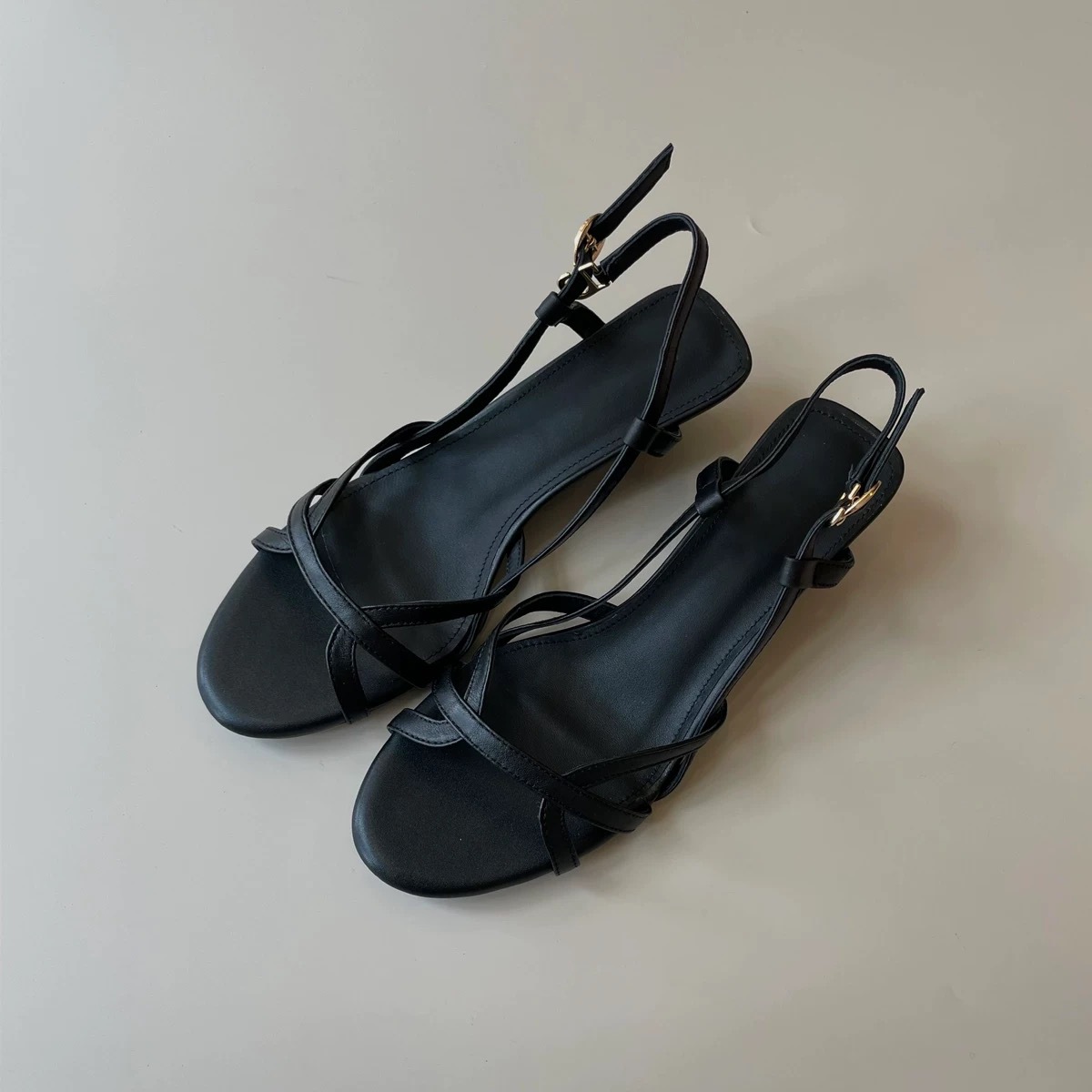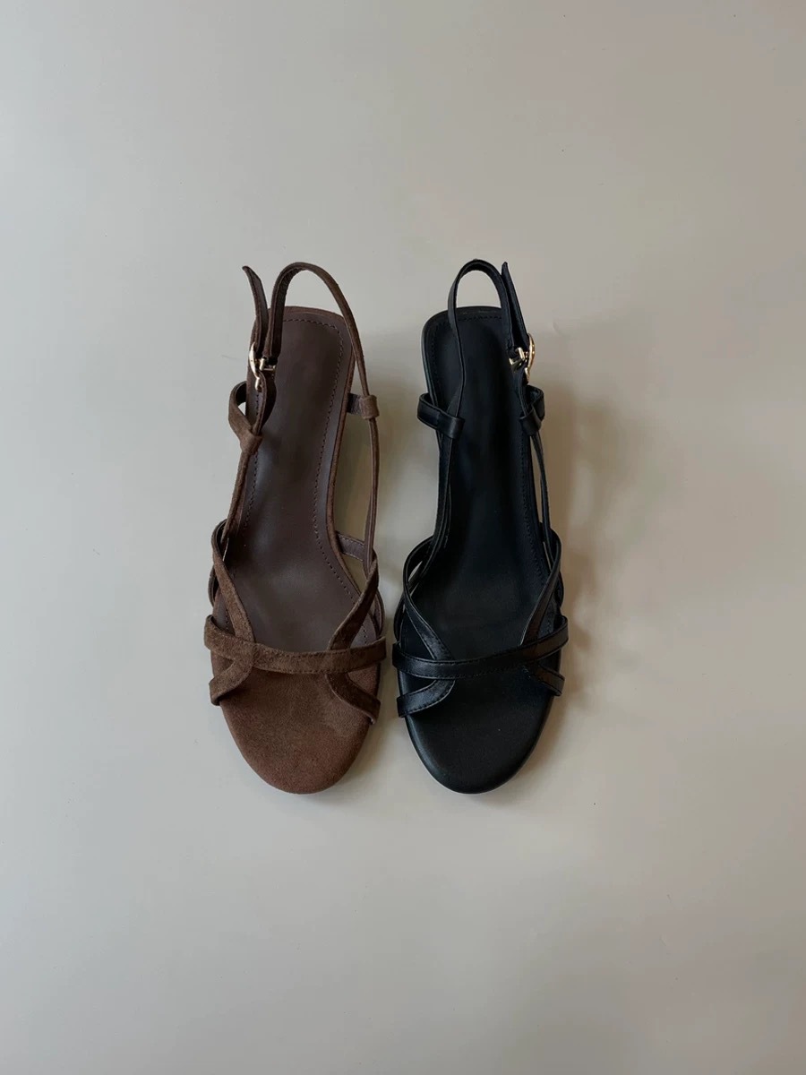 양가죽 버전 ~ 레트로 틈새 웨지 힐 라운드 투 오픈 토 샌들 여성 2025 여름 신작 다용도 로마 하이힐