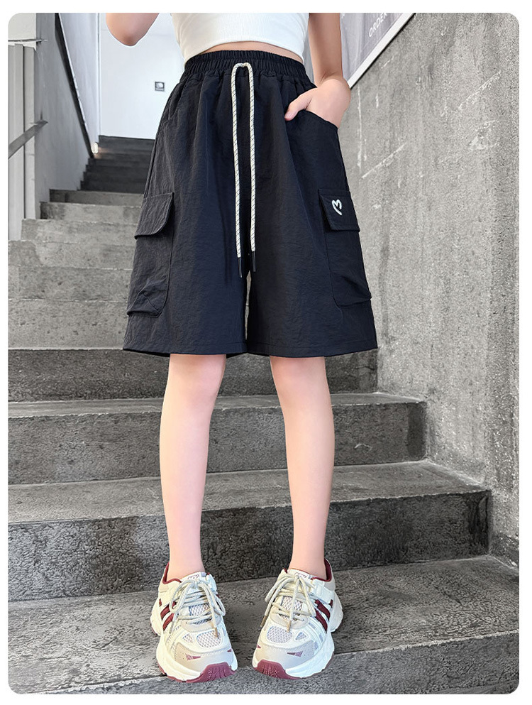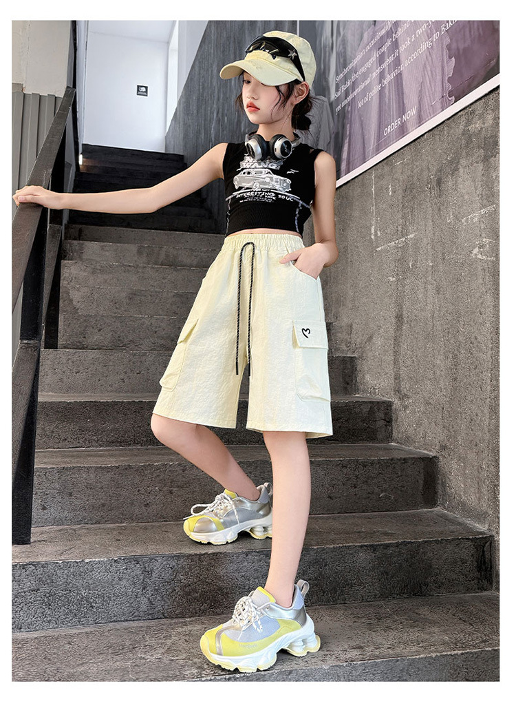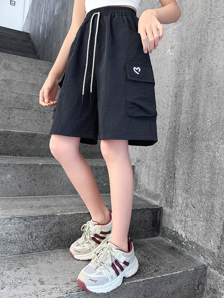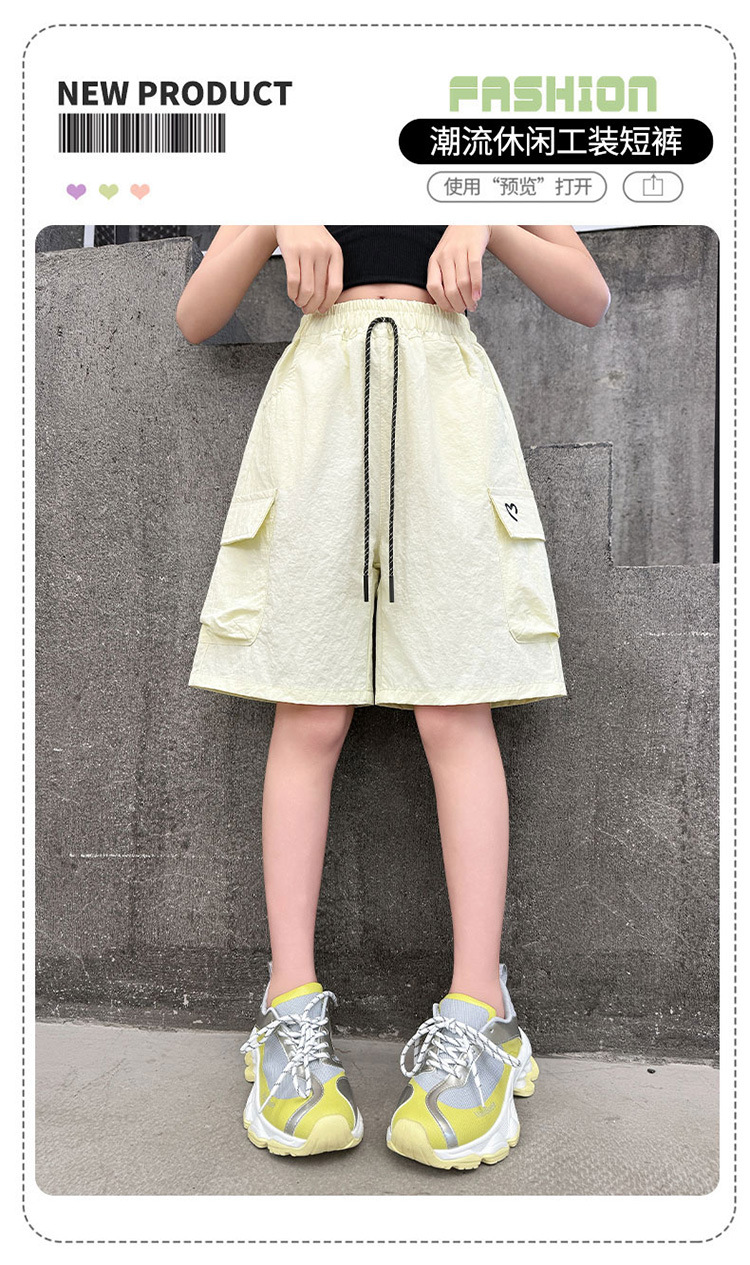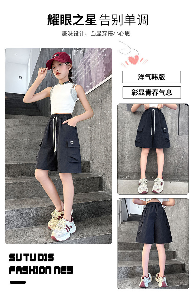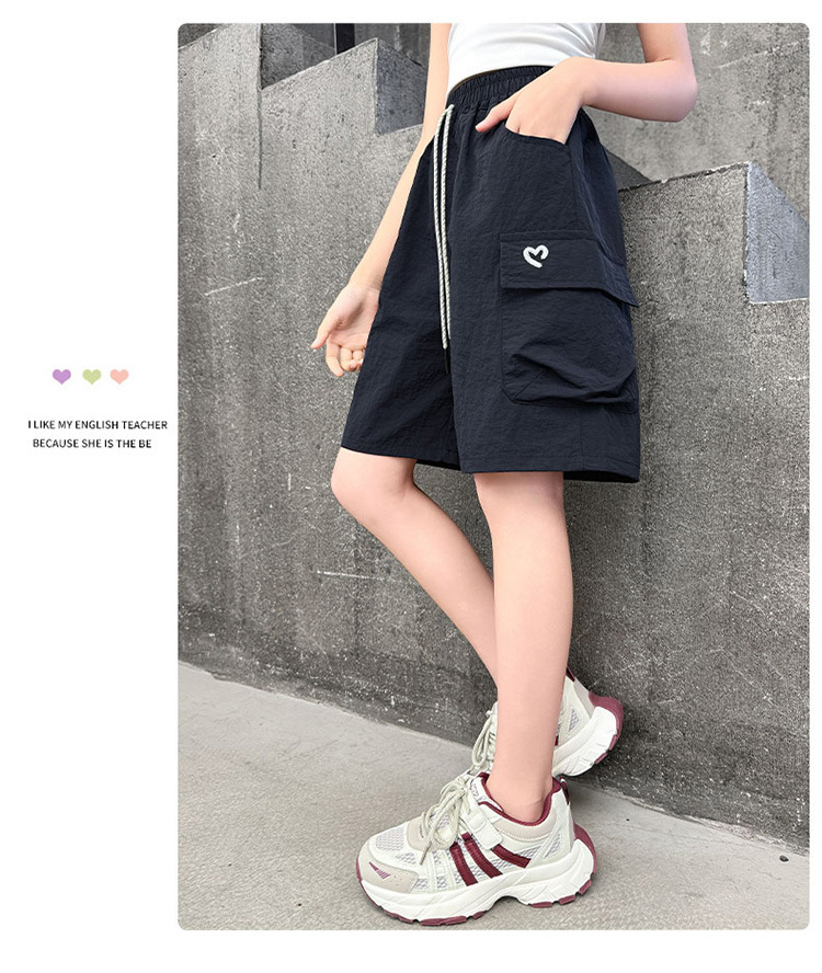 여아 여름 속건성 중간 바지 얇은 겉옷 2025 새로운 스타일 여아 패셔너블 슬림 캐주얼 5부 바지