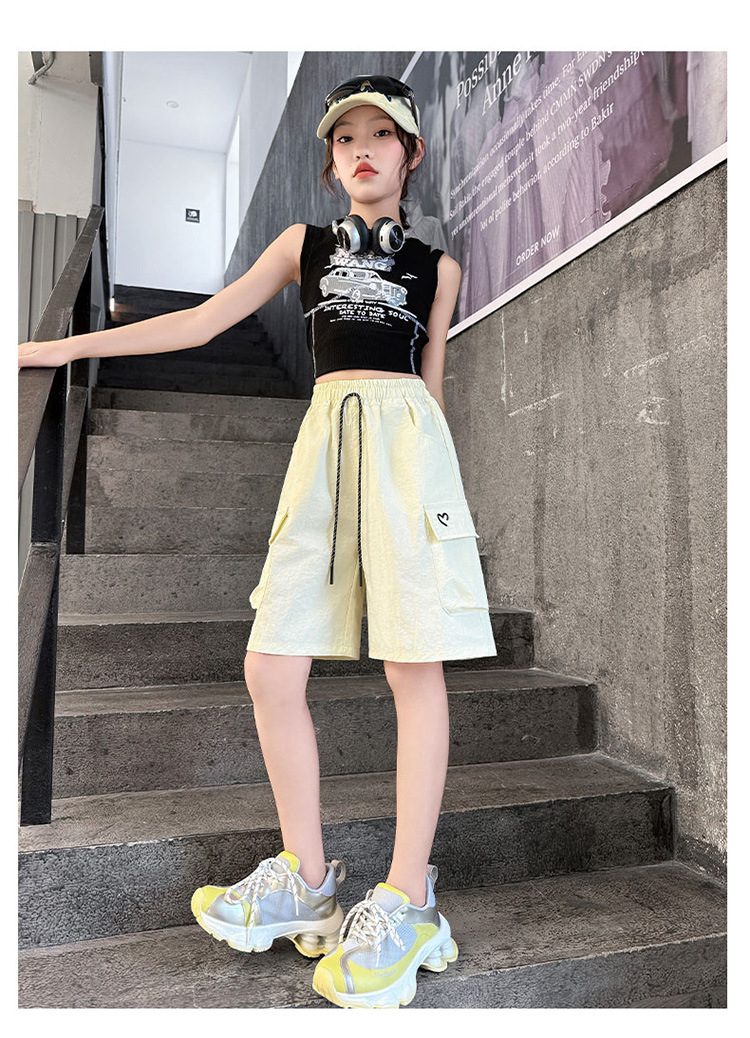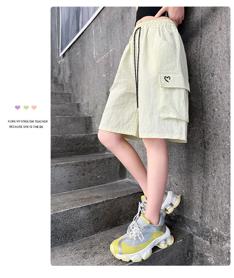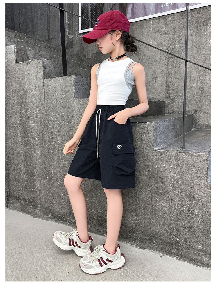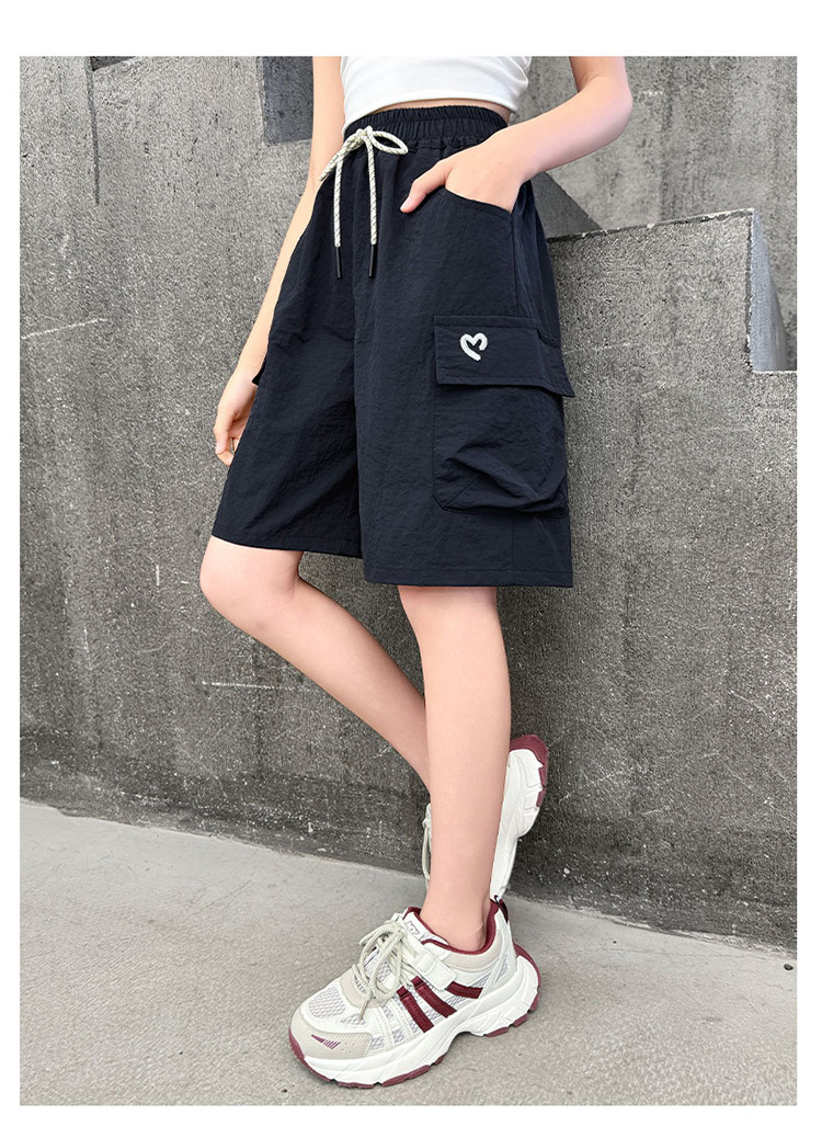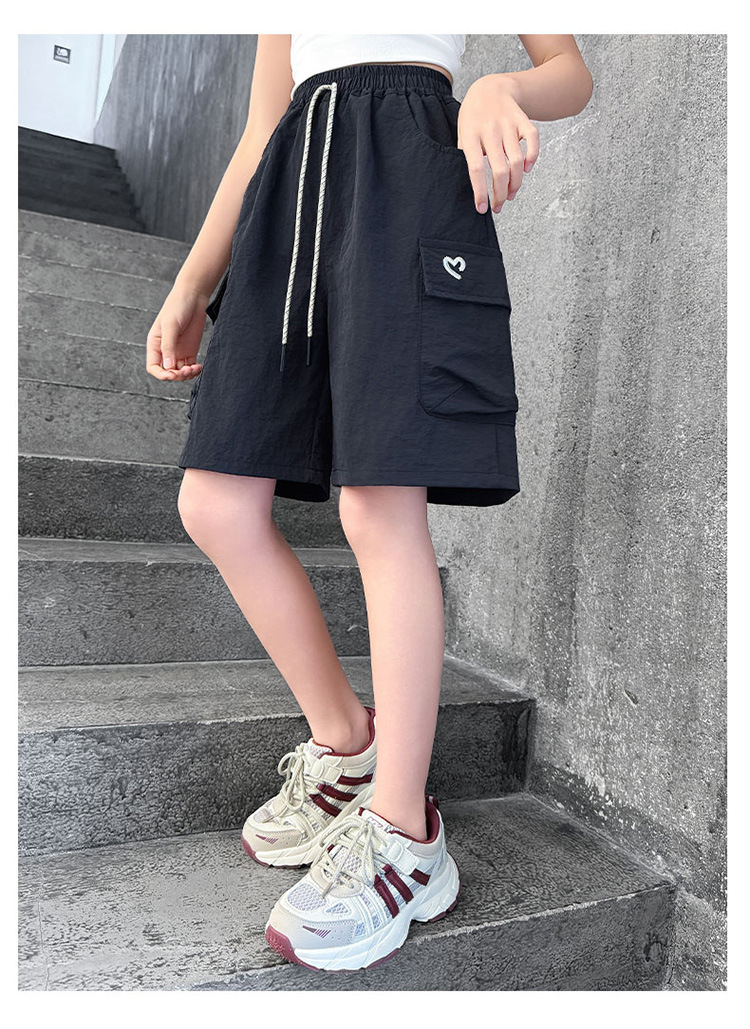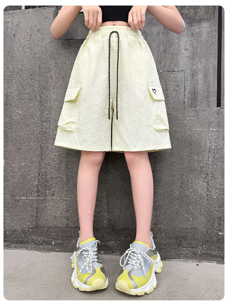 여아 여름 속건성 중간 바지 얇은 겉옷 2025 새로운 스타일 여아 패셔너블 슬림 캐주얼 5부 바지