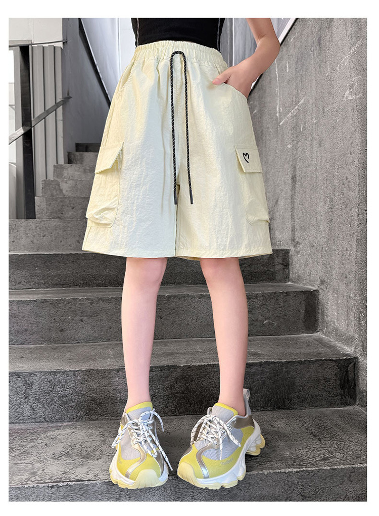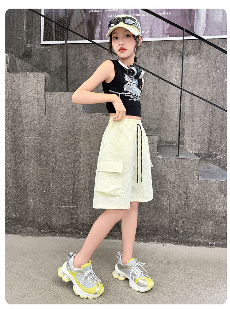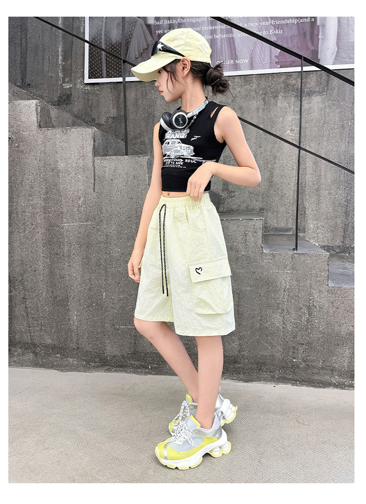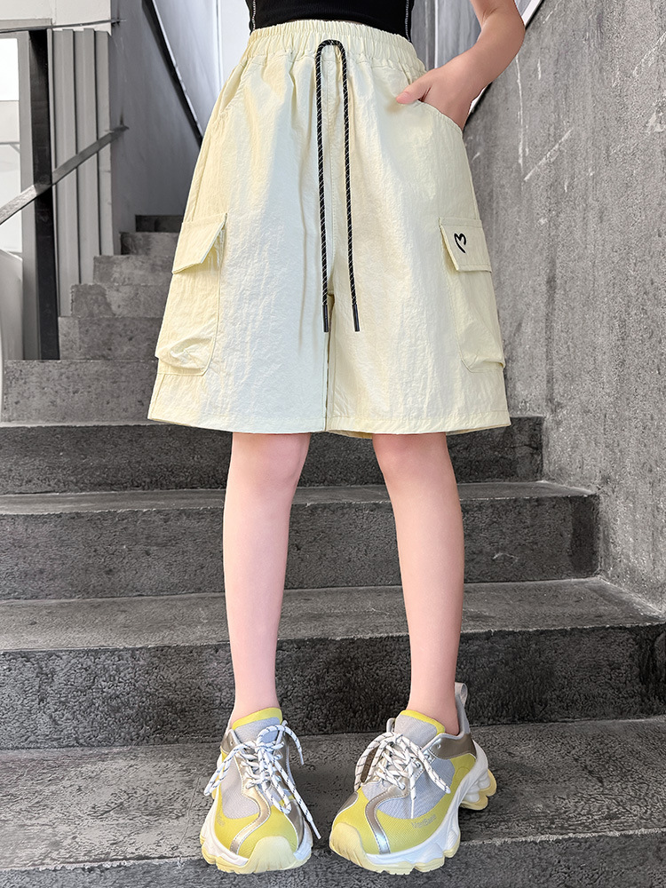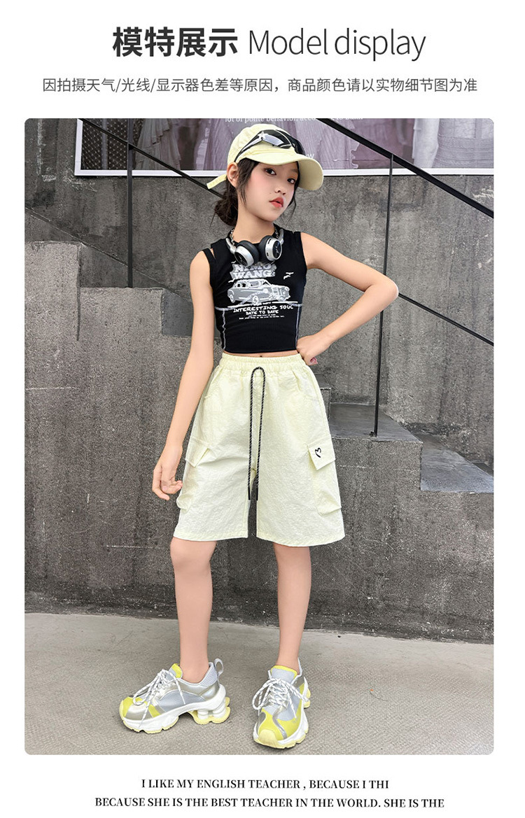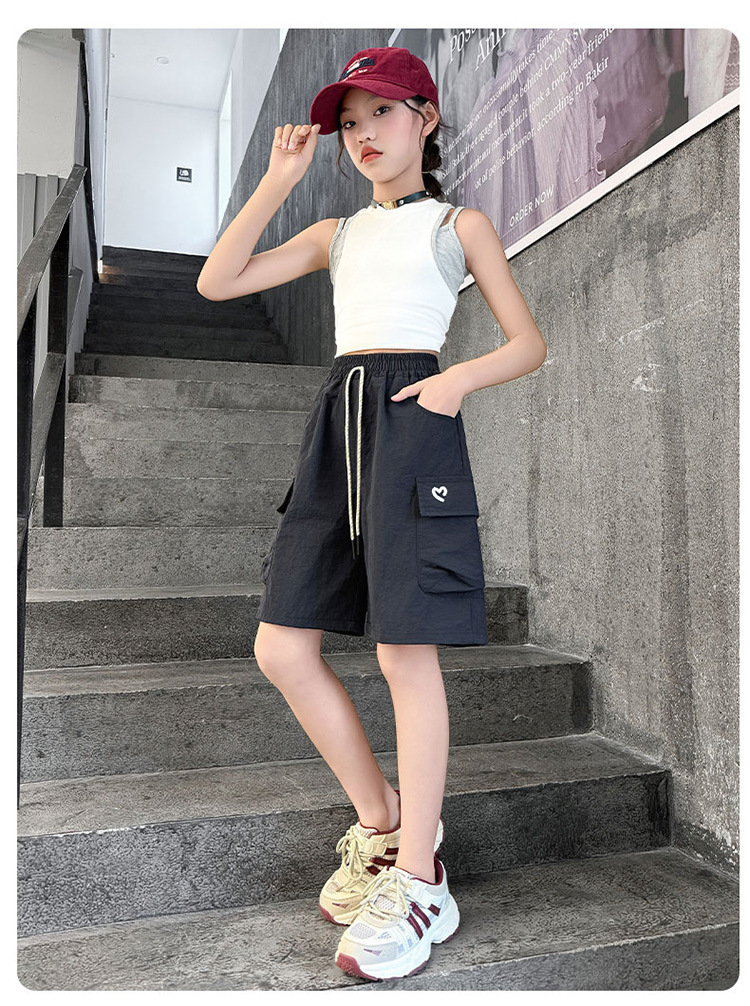 여아 여름 속건성 중간 바지 얇은 겉옷 2025 새로운 스타일 여아 패셔너블 슬림 캐주얼 5부 바지