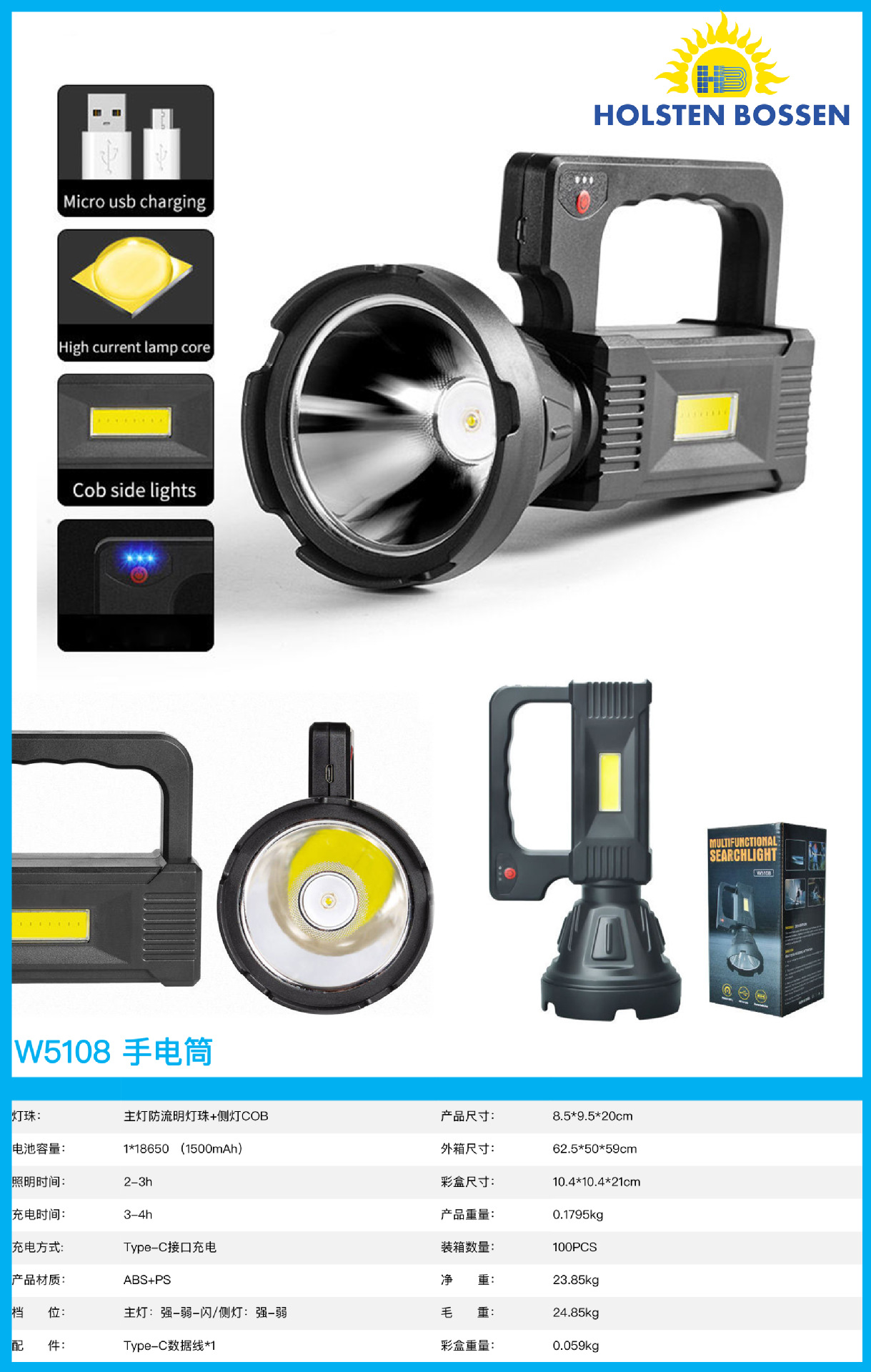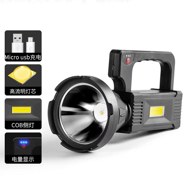 국경 간 새로운 다기능 충전식 서치 COB 밝은 손전등 야외 LED 조명 휴대용 램프 텐트 램프