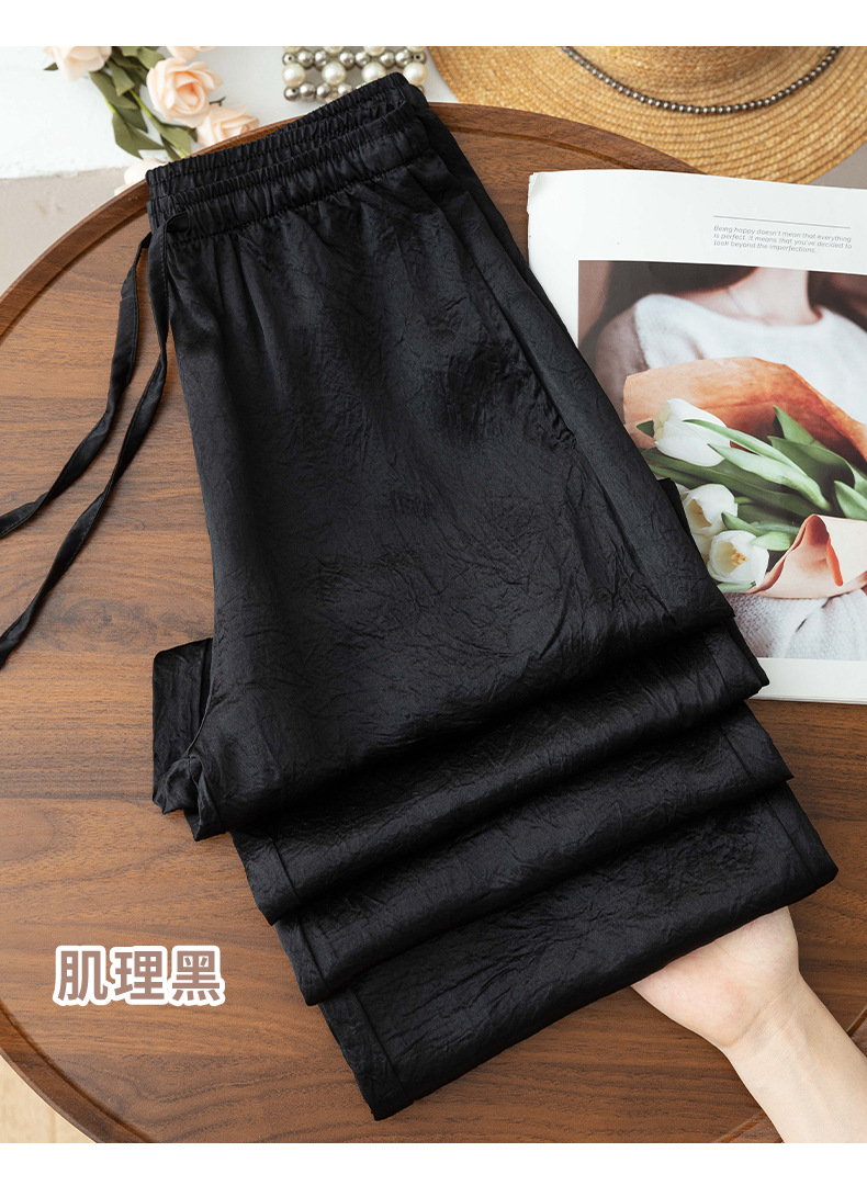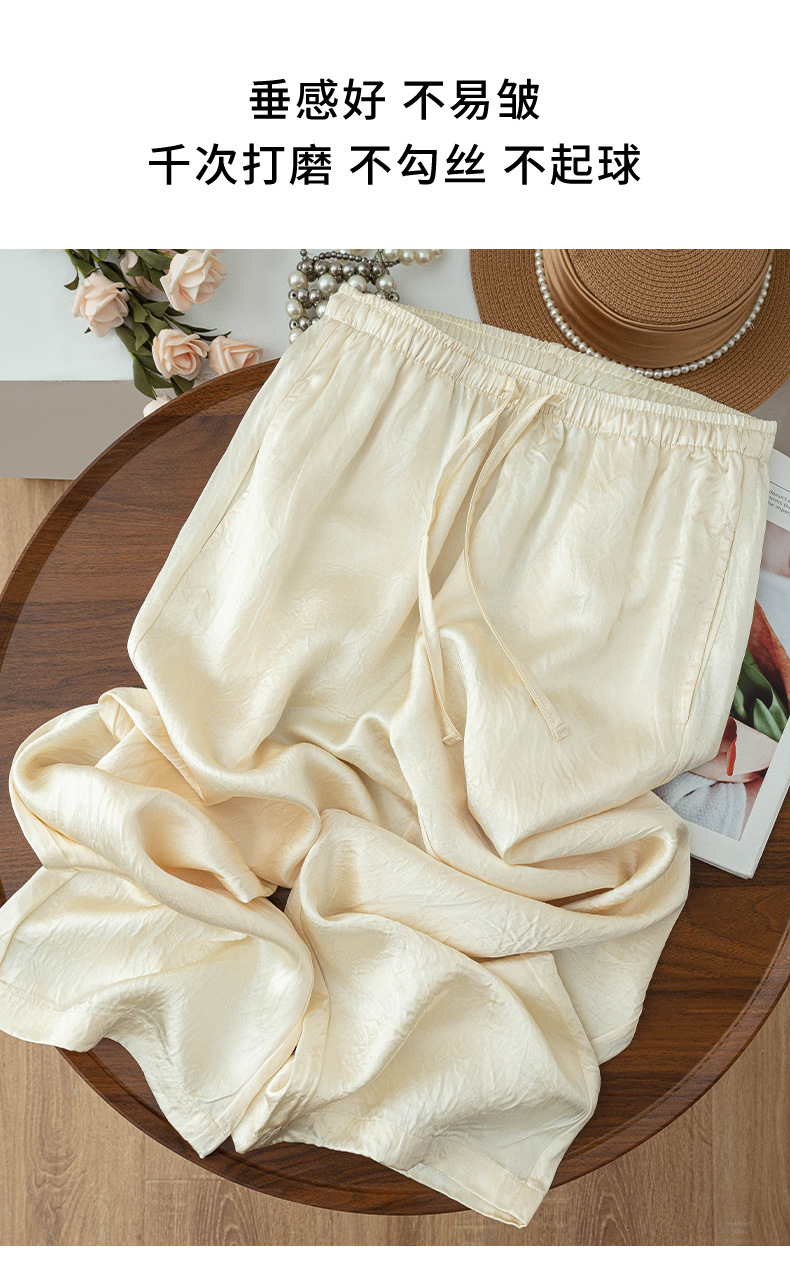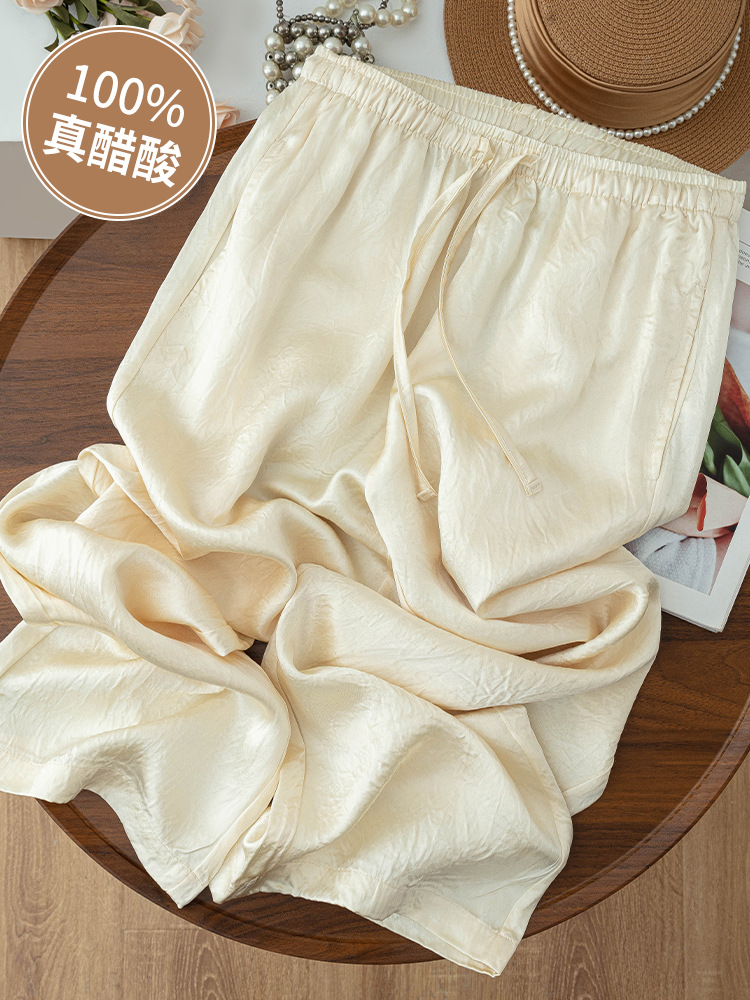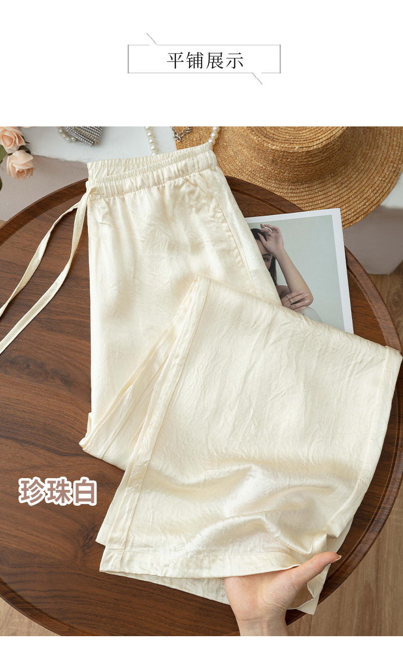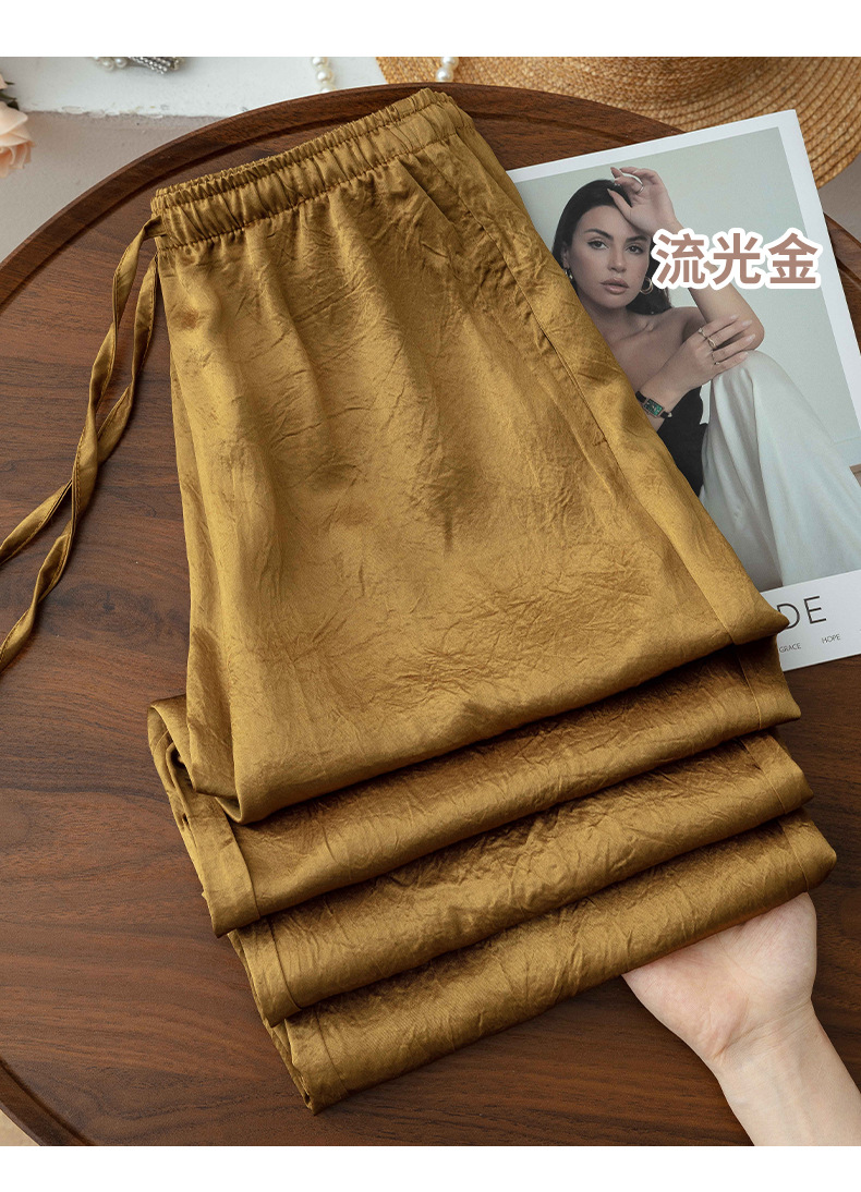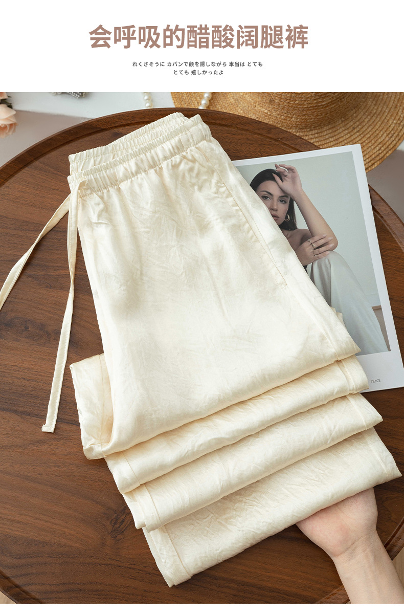 여성용 100% 아세테이트 새틴 실크 와이드 팬츠, 여름 얇고 고급스럽고 부드럽고 주름이 없는 신축성 있는 허리 캐주얼 팬츠