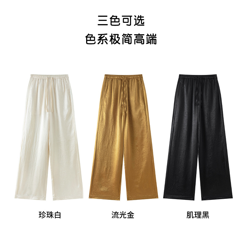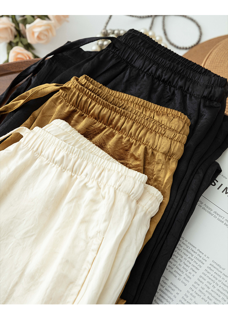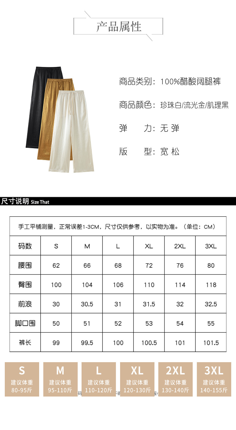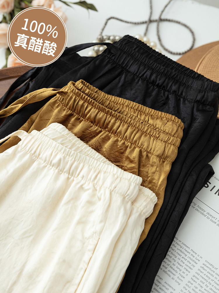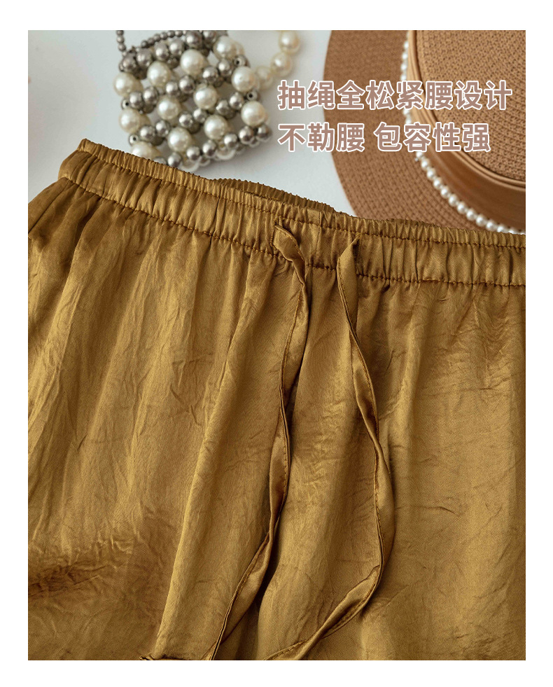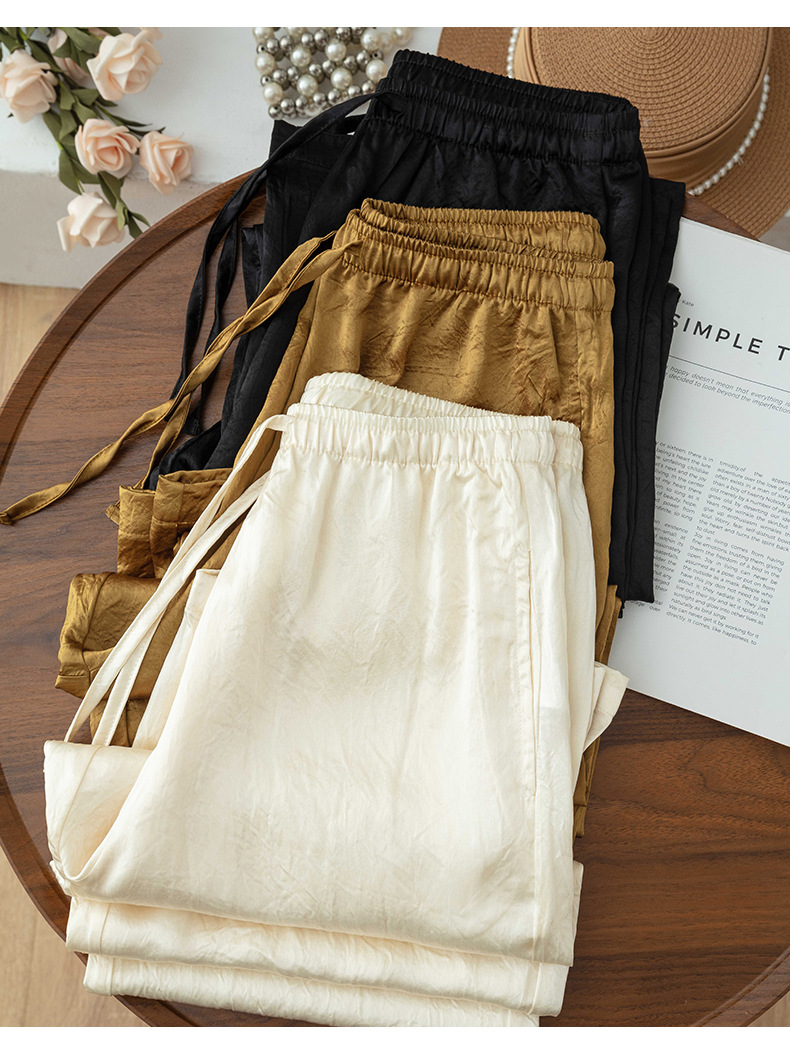 여성용 100% 아세테이트 새틴 실크 와이드 팬츠, 여름 얇고 고급스럽고 부드럽고 주름이 없는 신축성 있는 허리 캐주얼 팬츠
