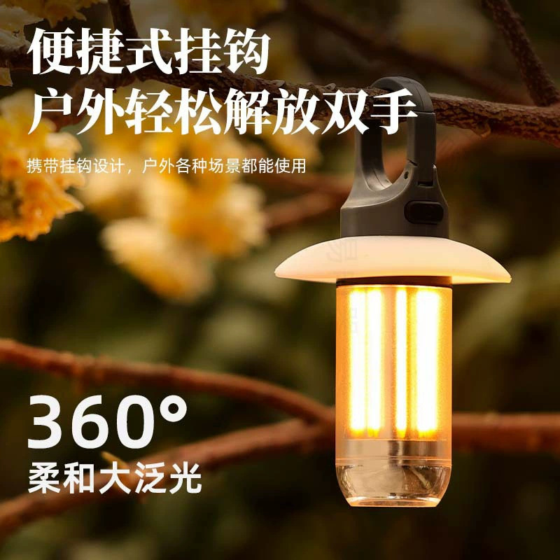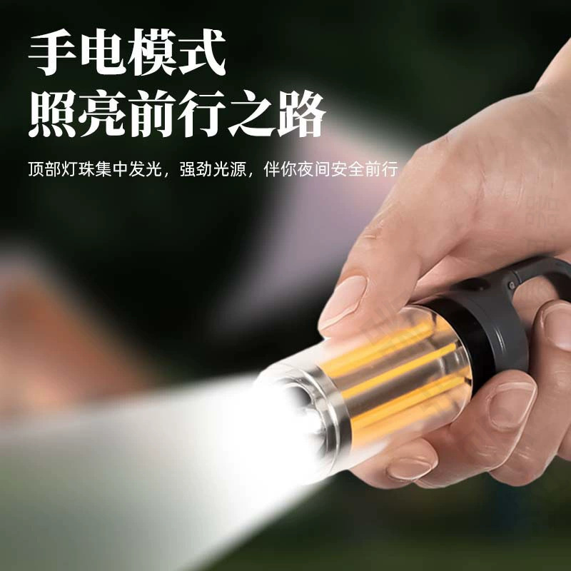 새로운 휴대용 다기능 캠핑 램프 듀얼 광원 투인원 손전등 야외 분위기 텐트 램프 캠핑 램프