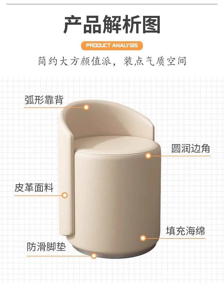크림 스타일 요정 드레싱 테이블 의자 메이크업 의자 홈 소녀 침실 라이트 럭셔리 간단한 하이 엔드 네일 아트 라운드 의자