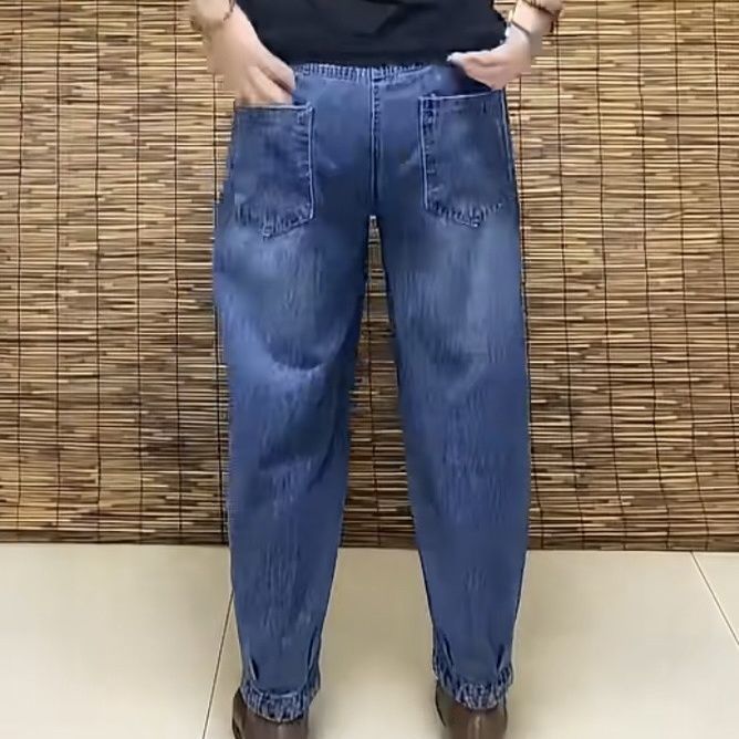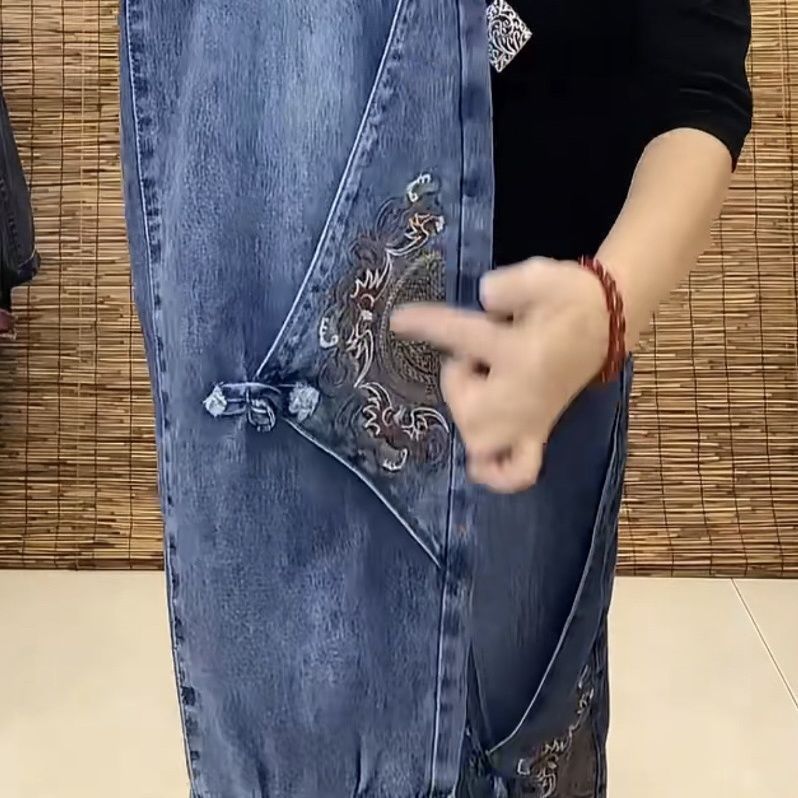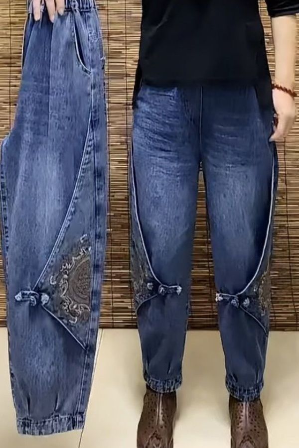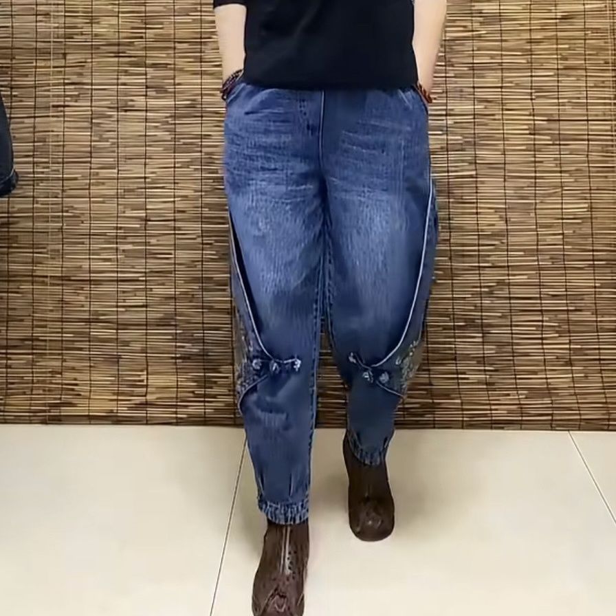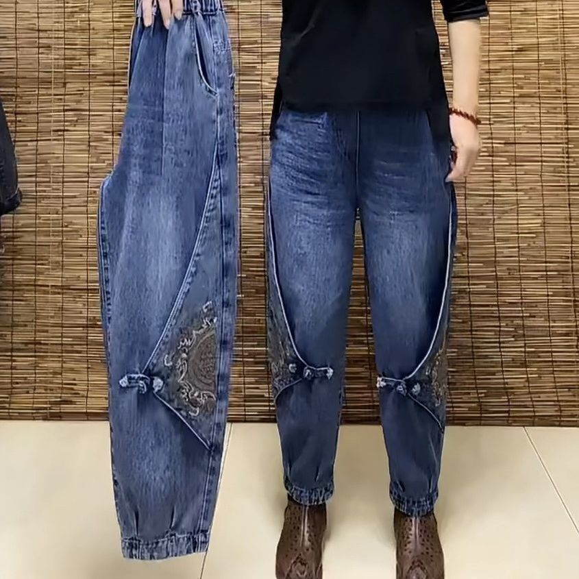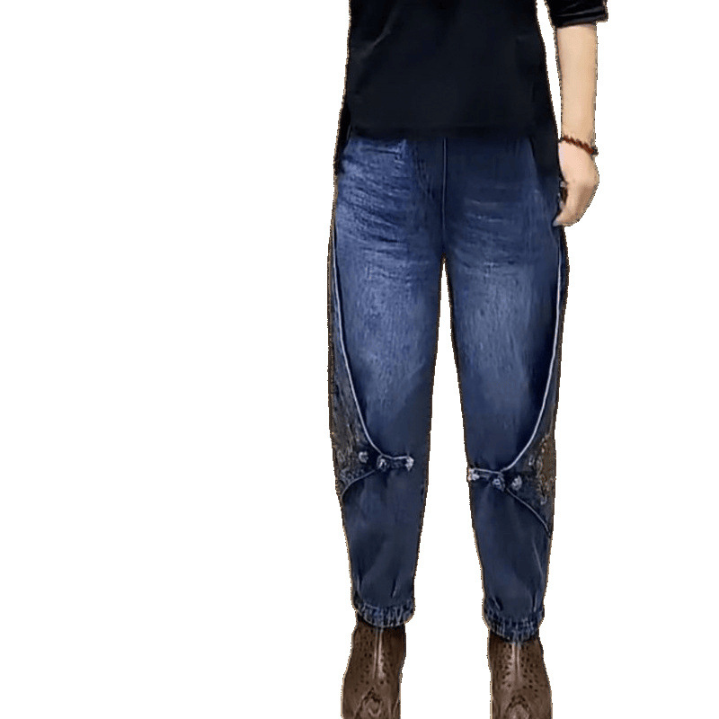 여성을위한 새로운 중국 스타일 국가 스타일 자수 청바지 2024 봄과 여름 새로운 스타일 하이 웨이스트 느슨한 슬리밍 스트레치 하렘 바지는 멋집니다
