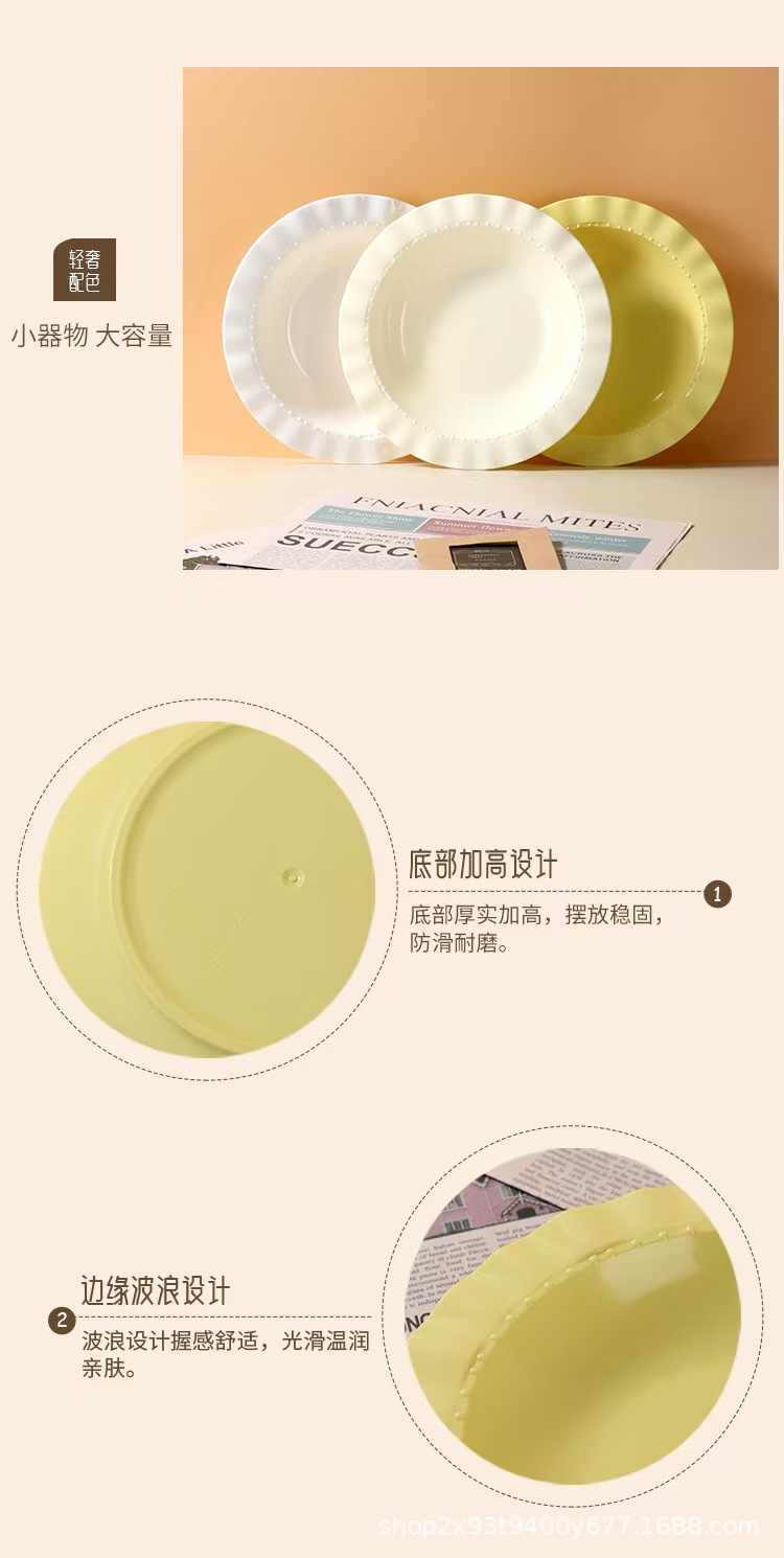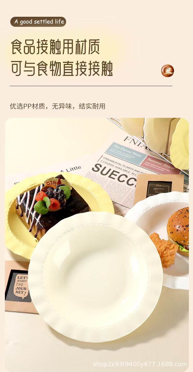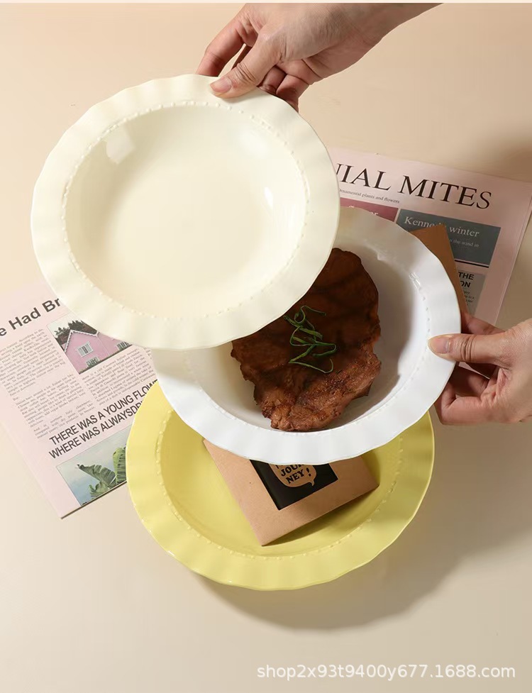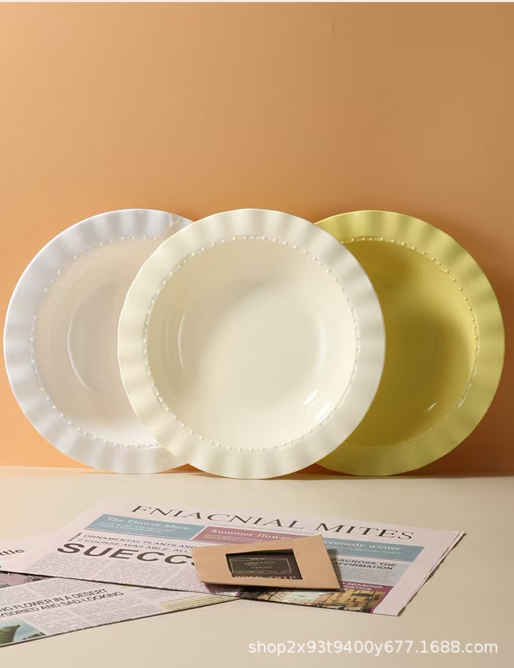 크림 고급 레이스 플라스틱 디너 플레이트 가정용 서양 음식 깊은 접시 접시 샐러드 식기 플라스틱 밀짚 모자 접시