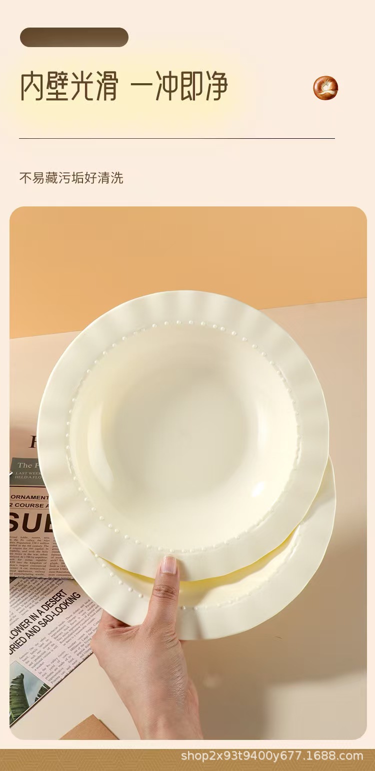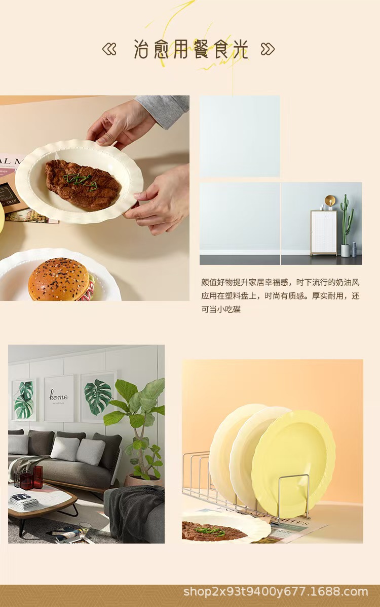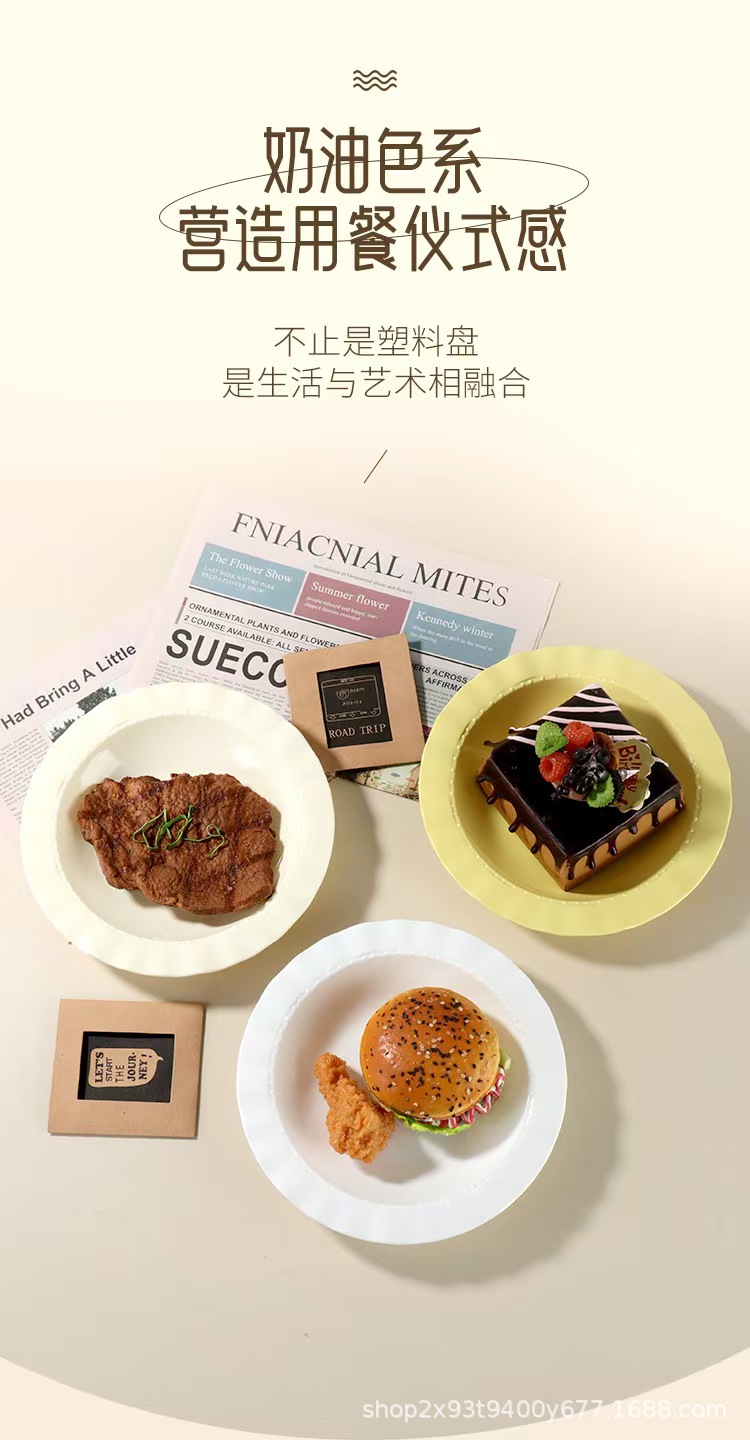 크림 고급 레이스 플라스틱 디너 플레이트 가정용 서양 음식 깊은 접시 접시 샐러드 식기 플라스틱 밀짚 모자 접시