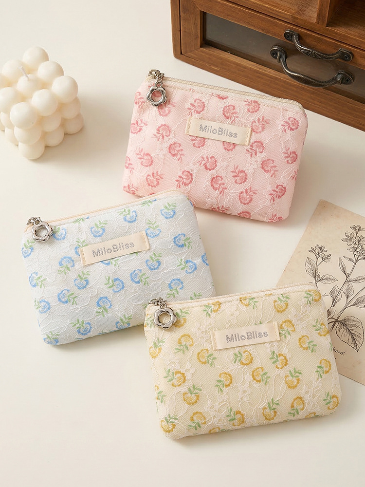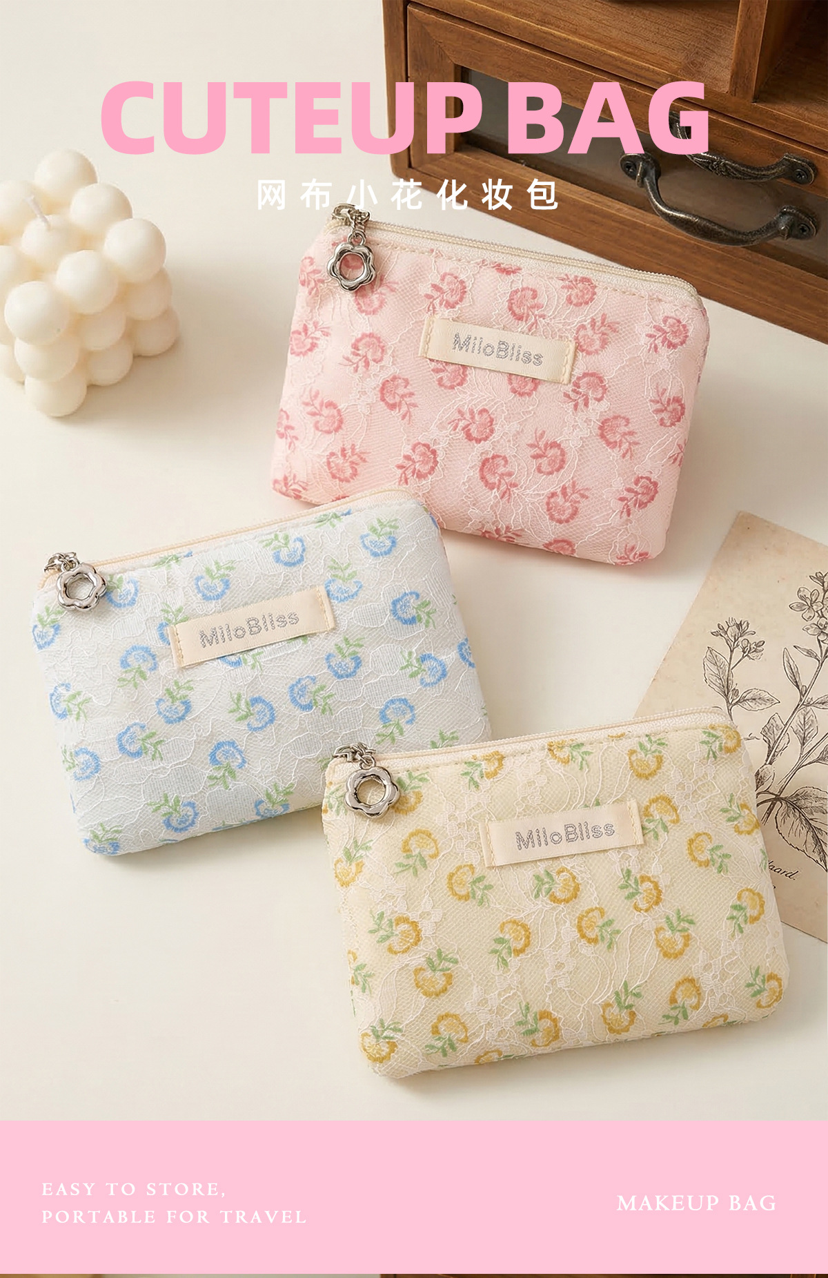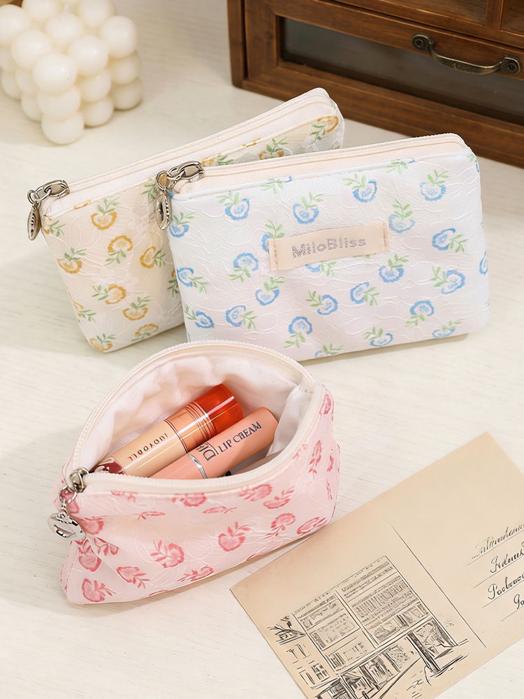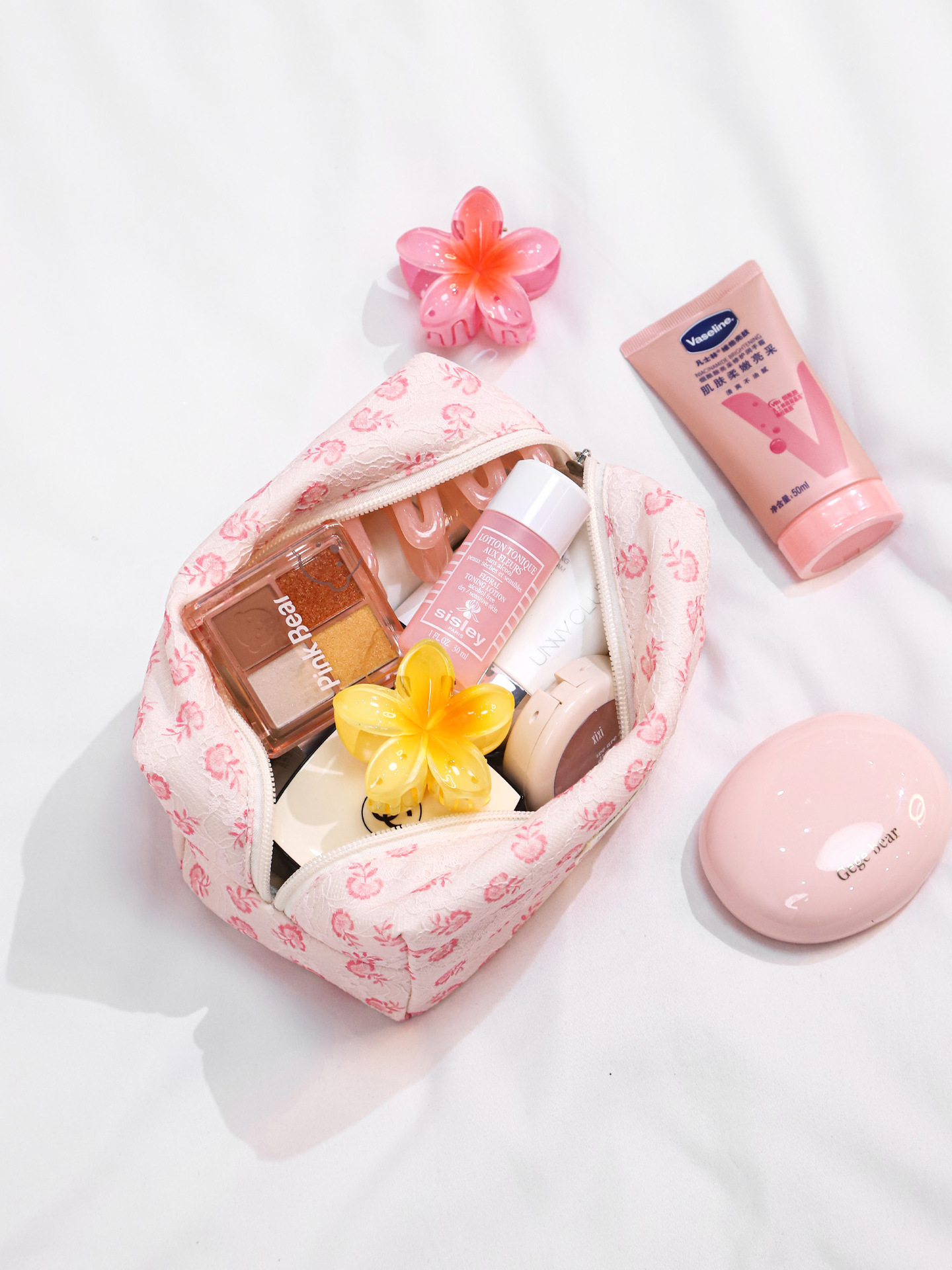 레이스 자카드 화장품 가방, 질감 있는 휴대용 동전 지갑, 여행용 스킨케어 제품 수납 가방, 베개 모양 화장품 가방
