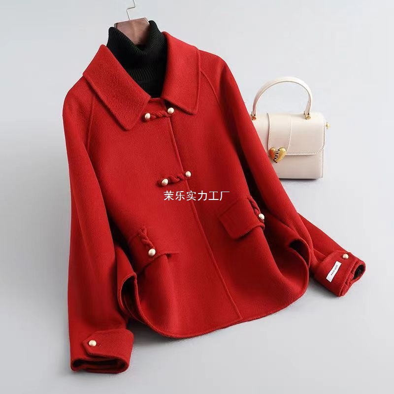 여성을위한 세련된 짧은 양면 벨벳 코트 코트 느슨한 대형 여성 가을, 겨울 두꺼운 양면 모직 탑 새로운