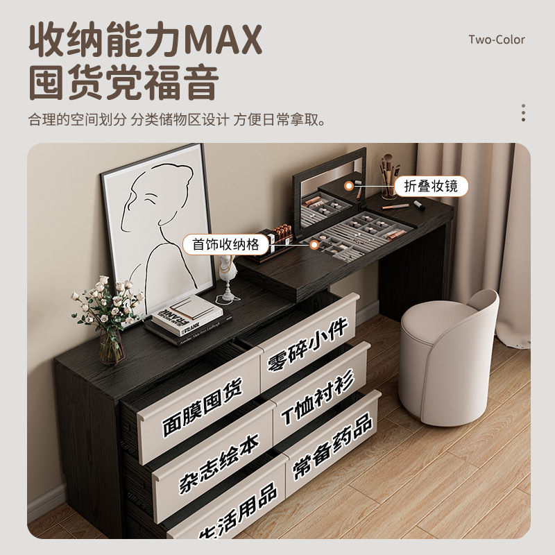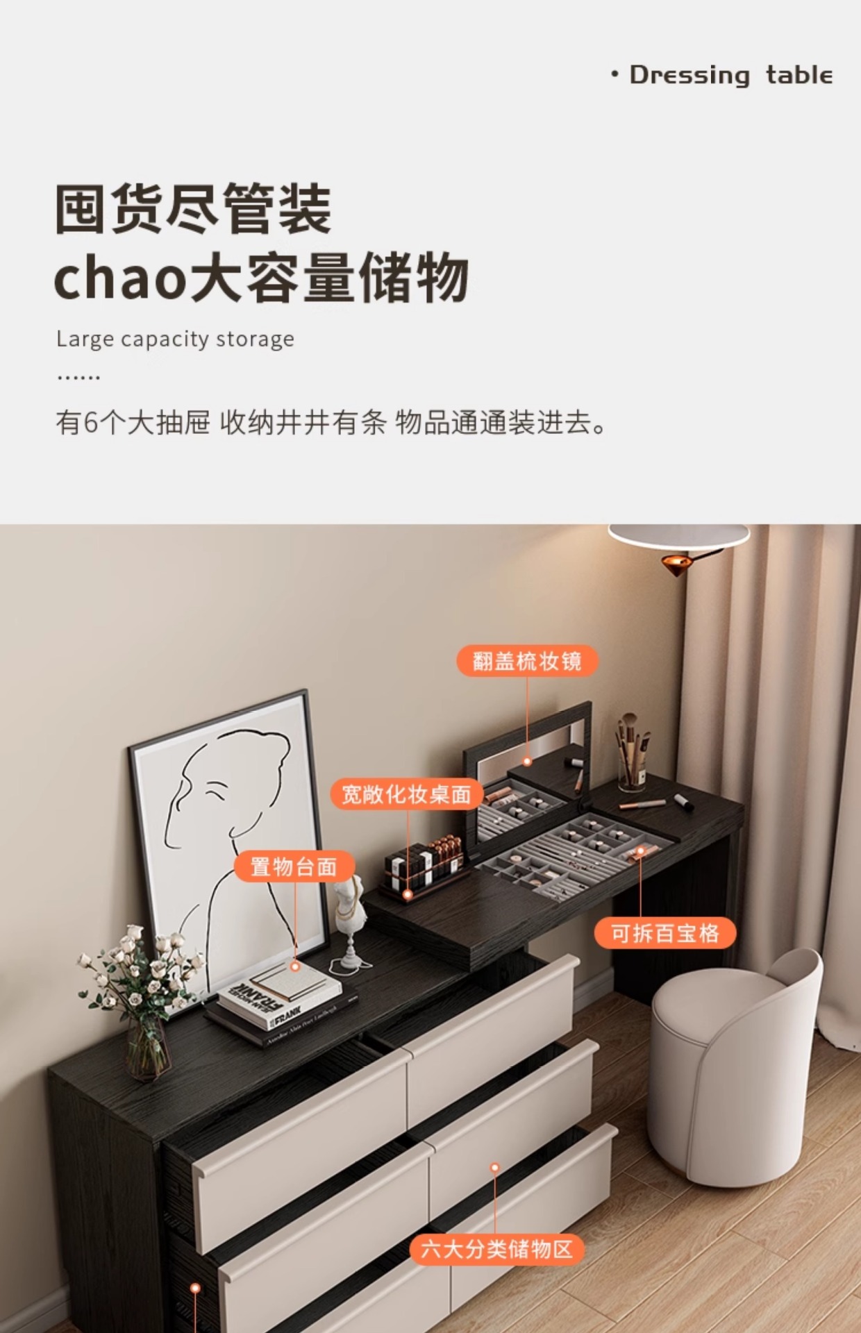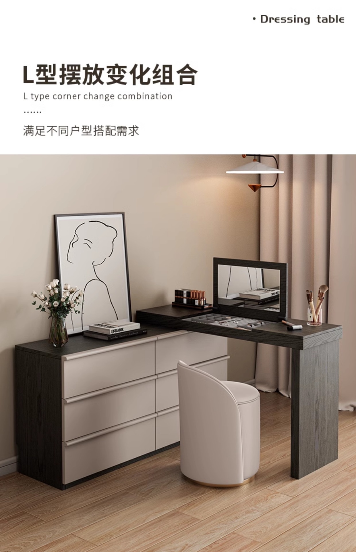 플립탑 원목 화장대와 서랍장 일체형 침실 모던 심플 메이크업 수납장 신형 침대 옆 컴퓨터 책상 g^
