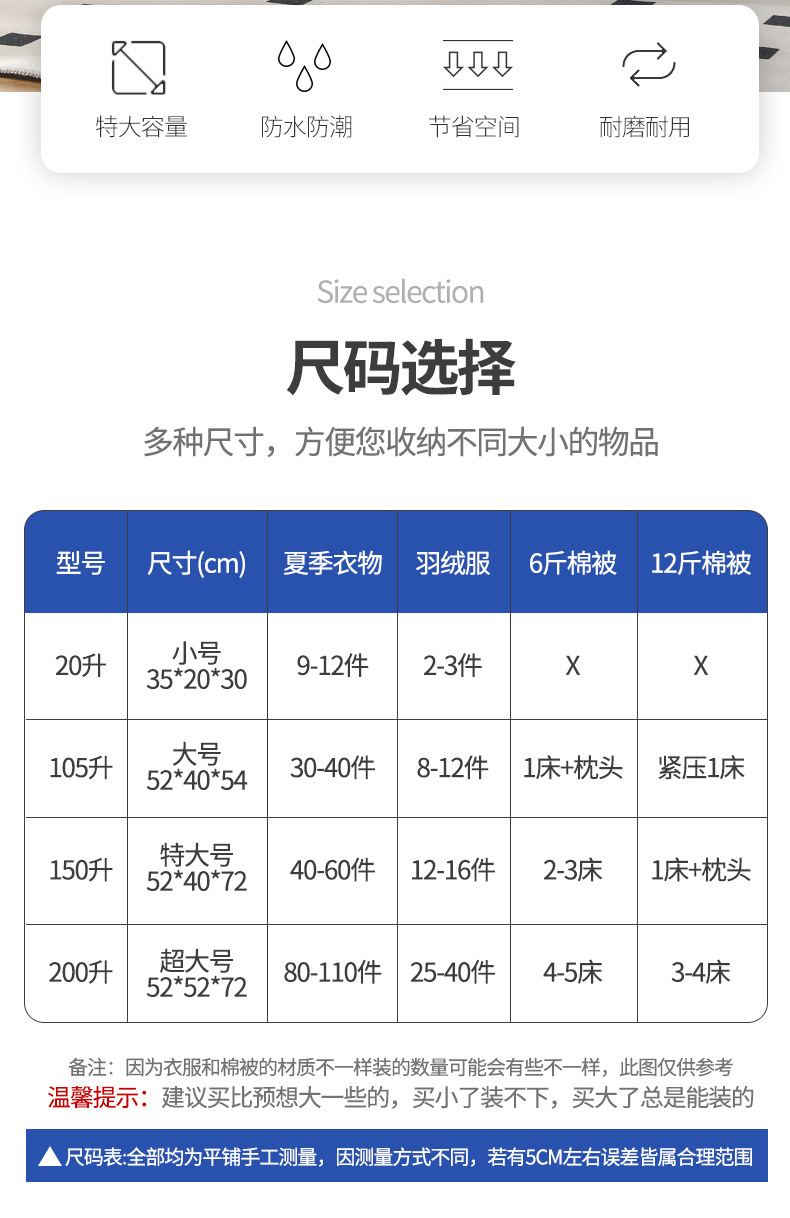 특대 사이즈【52*52*72cm】-200L