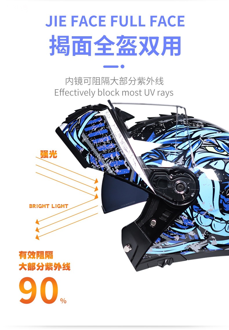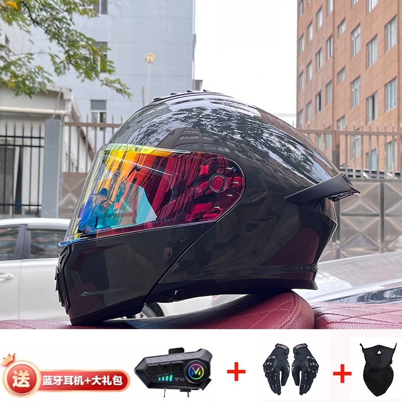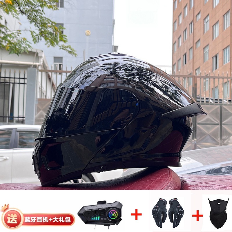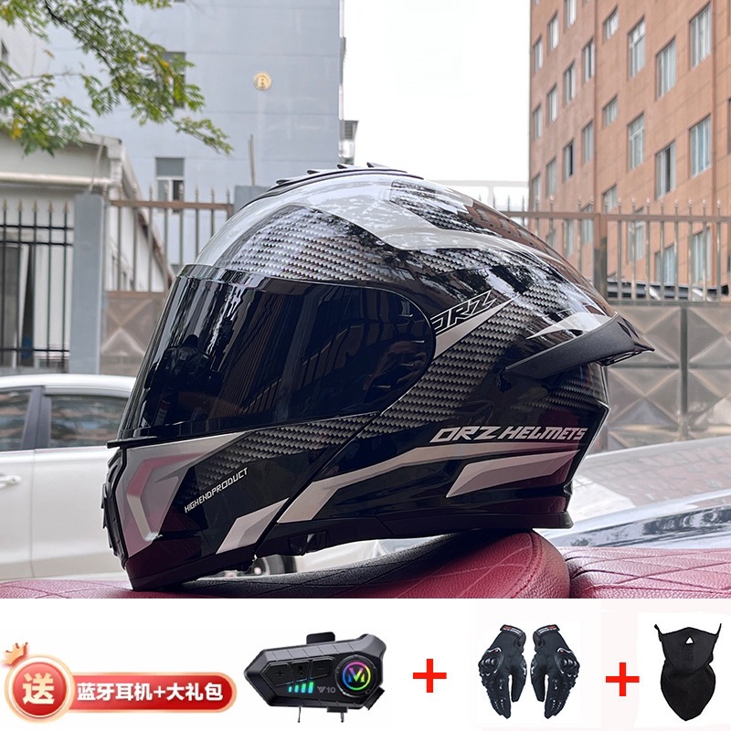 ORZ 오토바이 헬멧 남성용 풀 커버리지 더블 렌즈 오픈 페이스 헬멧 사계절 여행 랠리 블루투스 풀 페이스 헬멧 3C 인증