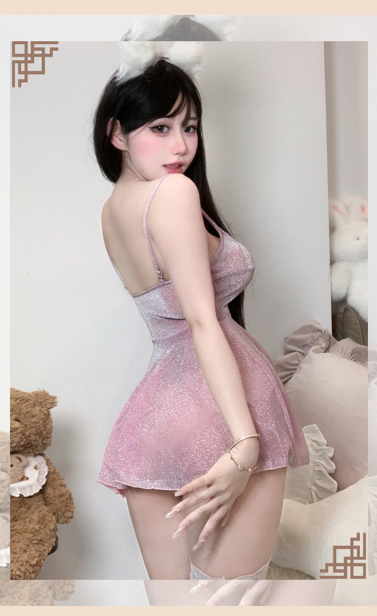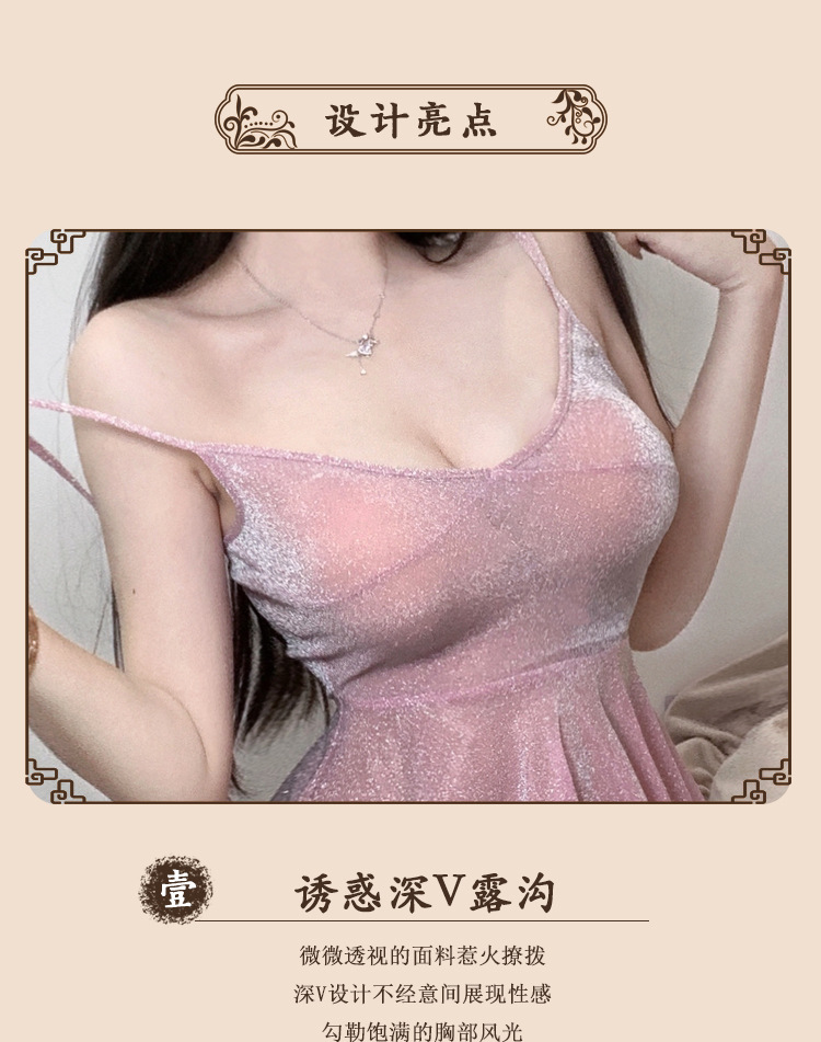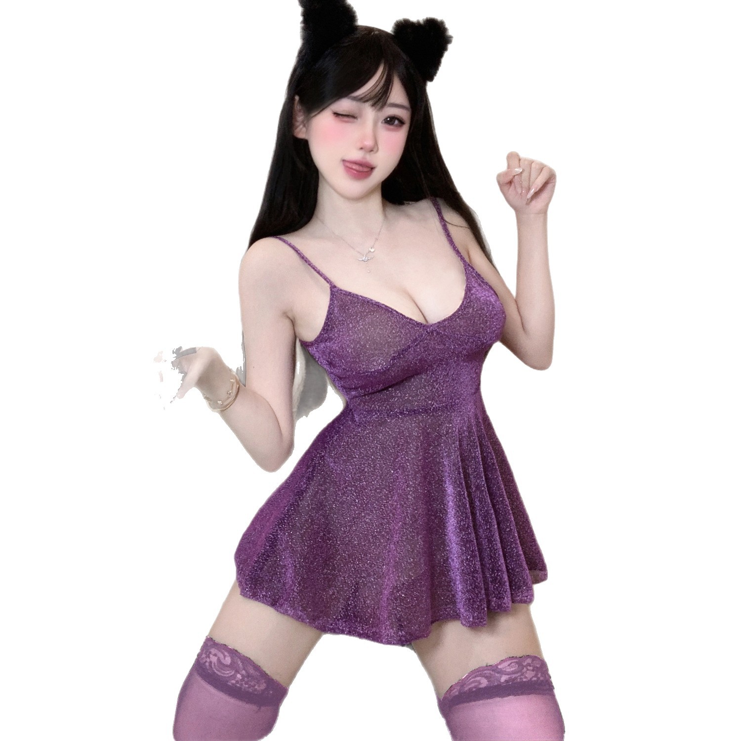 섹시한 속옷, 섹시하고 달콤한 딥 브이 나이트 가운, 여성용 백리스 서스펜더 드레스, 나이트 클럽 댄서, 플러팅 유니폼, 탈착 불가