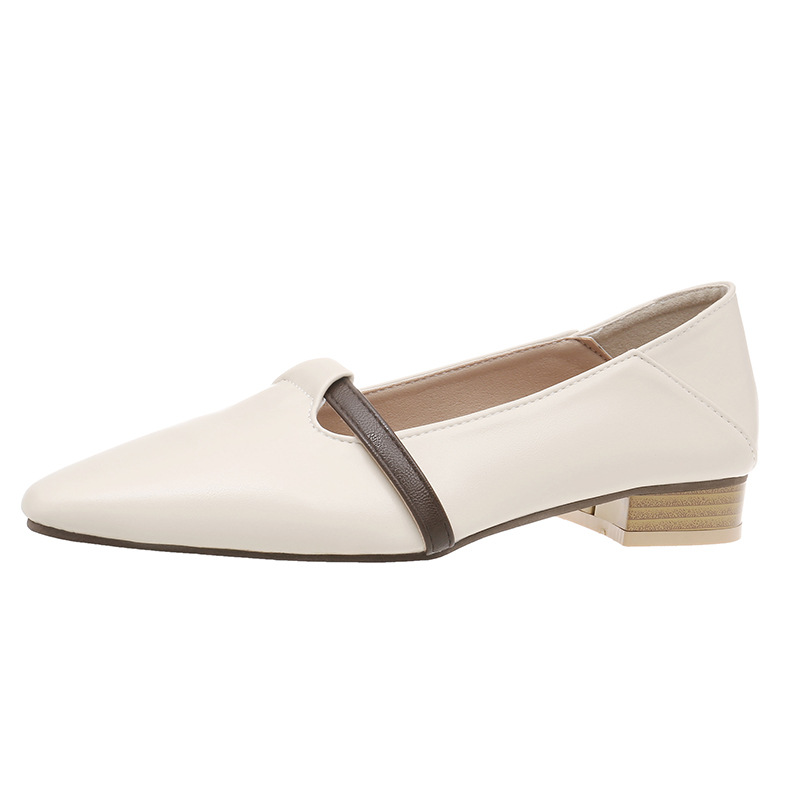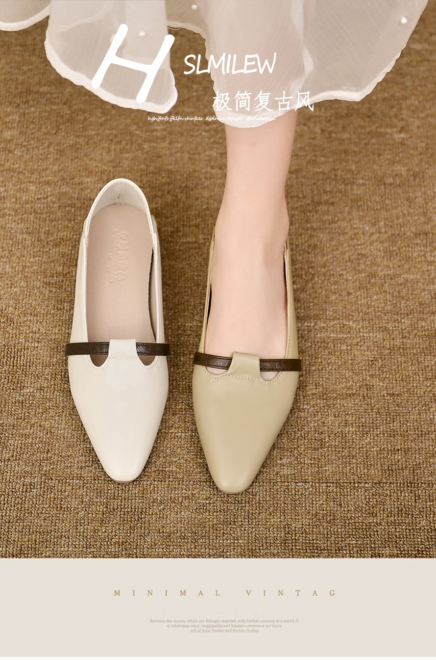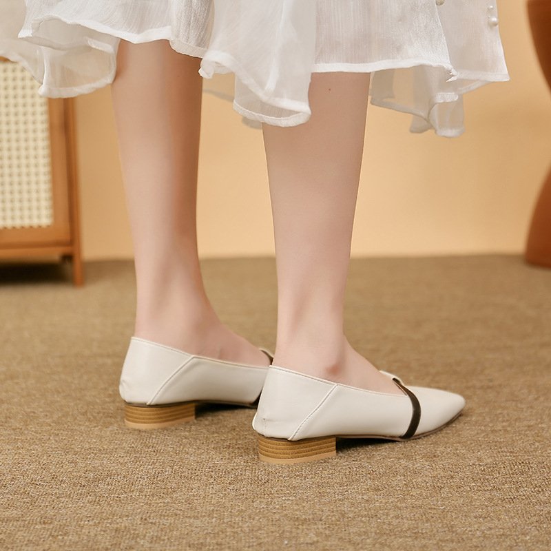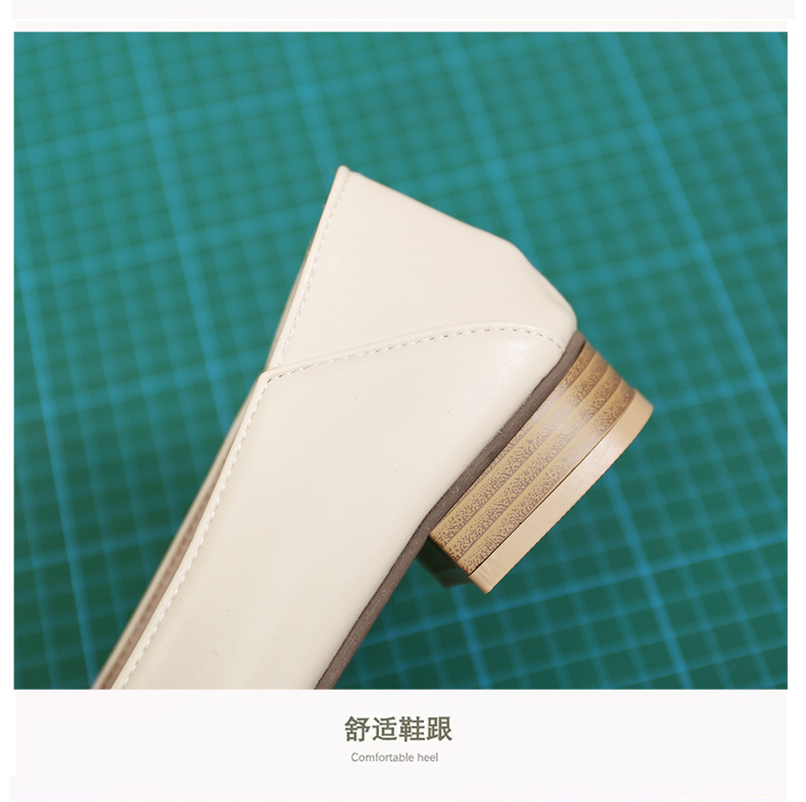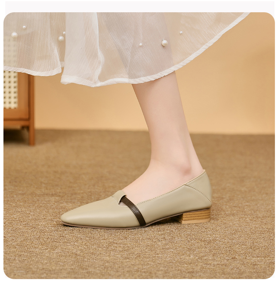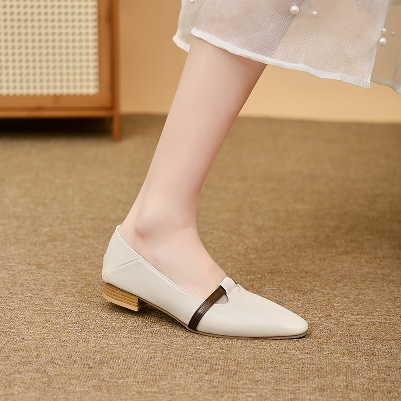 양가죽 버전의 부드러운 밑창으로 발이 피곤하지 않은 여성 구두, 뾰족한 굽이 두꺼운 로우힐, 스커트와 어울리는 2025년 신상품, 얕은 입구의 작은 가죽신