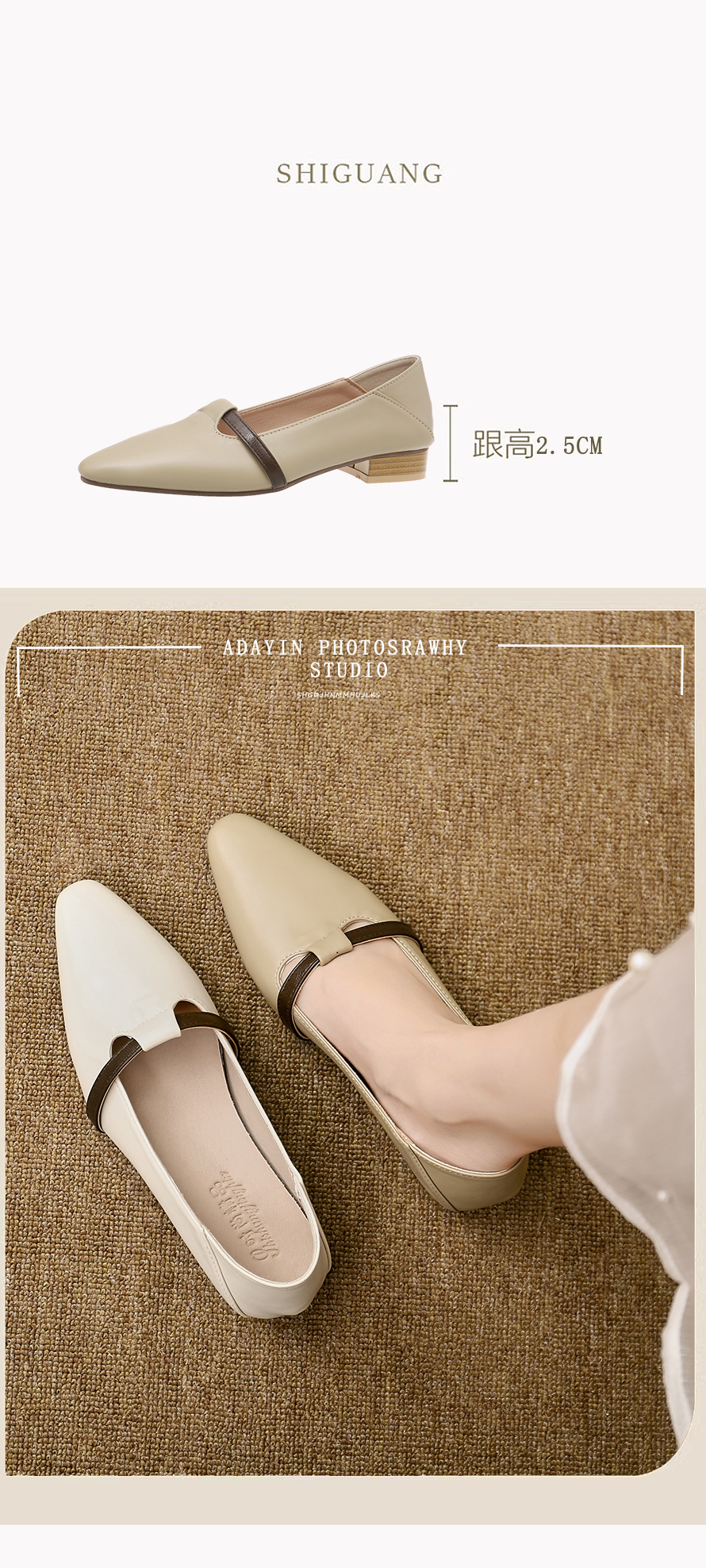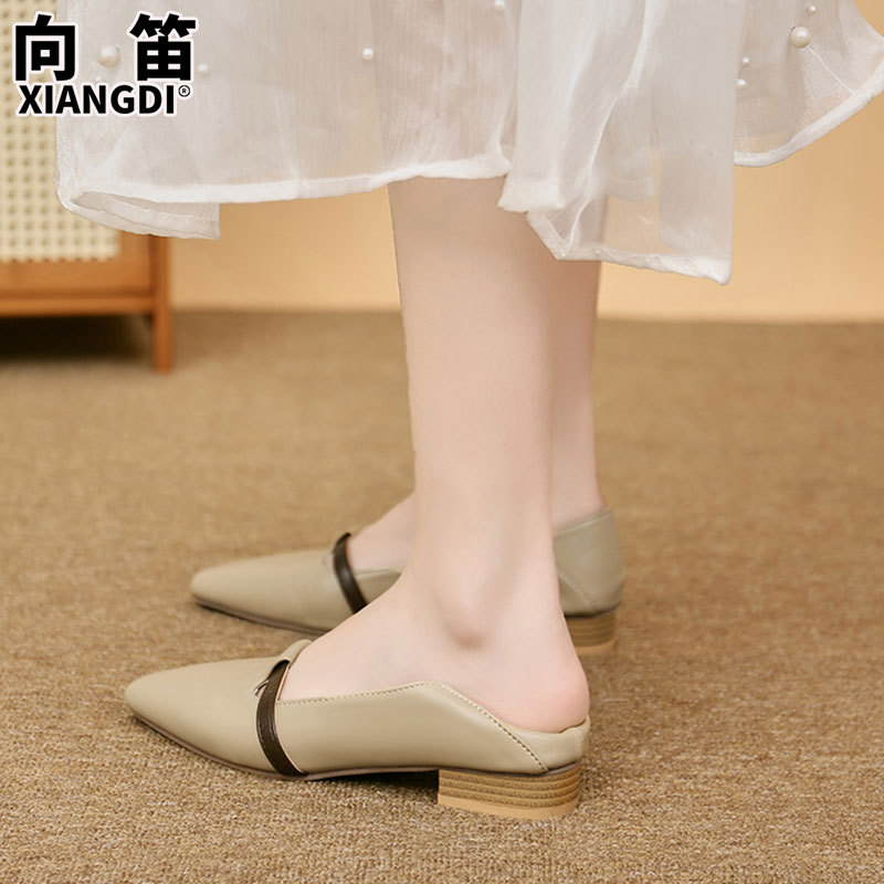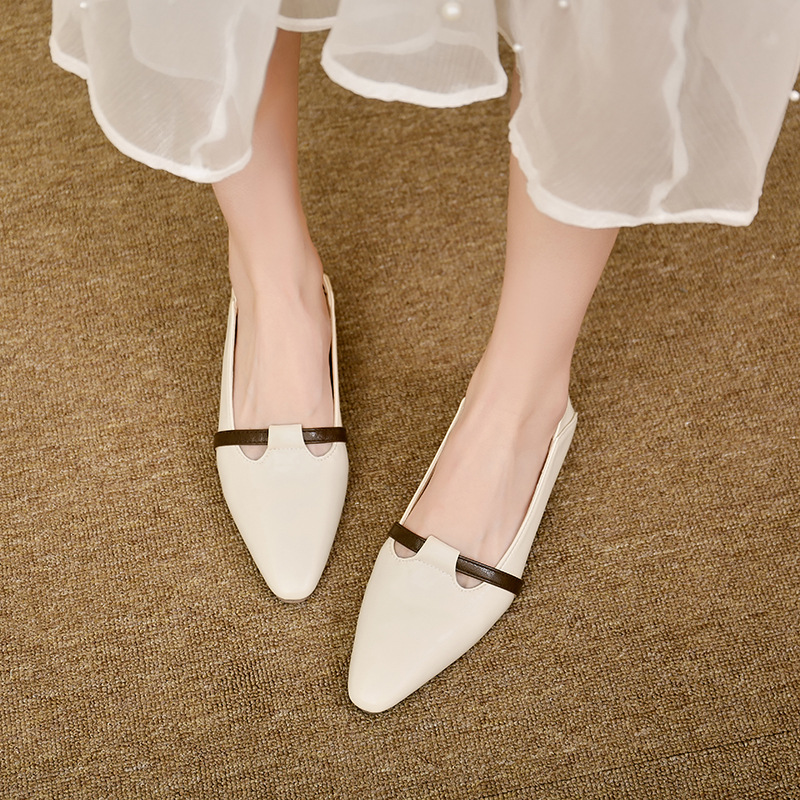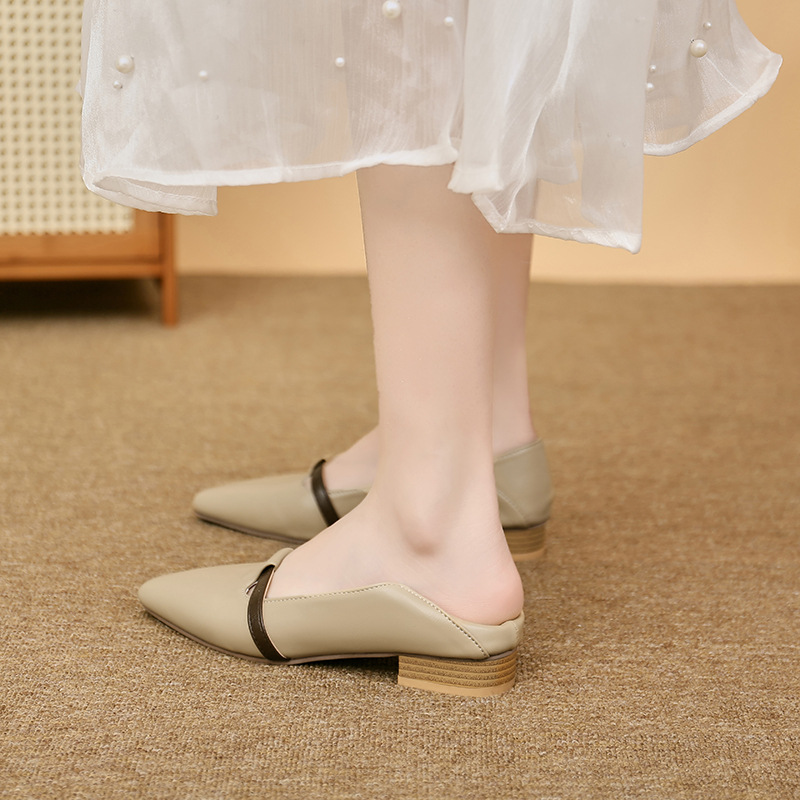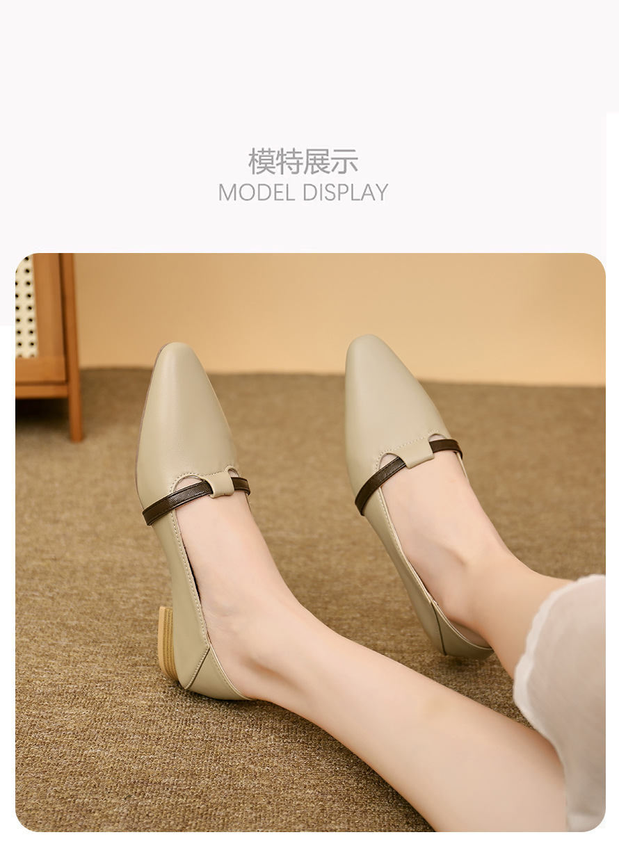 양가죽 버전의 부드러운 밑창으로 발이 피곤하지 않은 여성 구두, 뾰족한 굽이 두꺼운 로우힐, 스커트와 어울리는 2025년 신상품, 얕은 입구의 작은 가죽신
