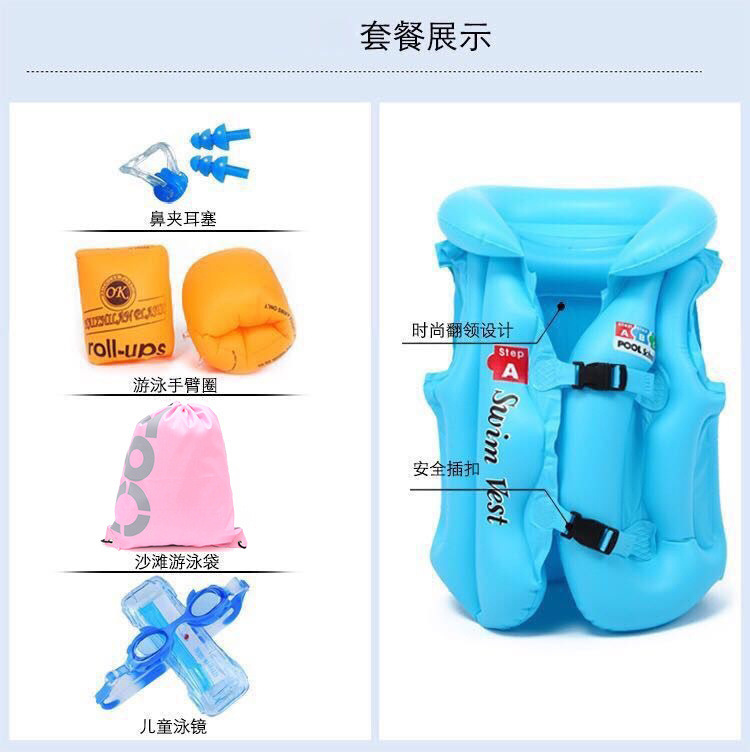 **파란색 구명조끼 + 수영 고글 + 노즈 클립 + 귀마개 + 펌프 - L 사이즈 22.5-35kg **