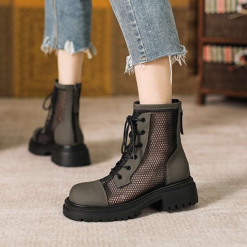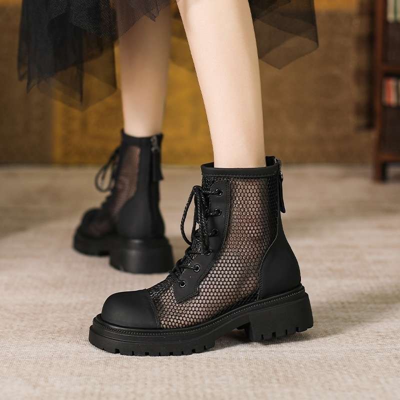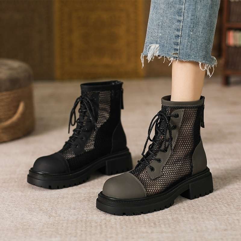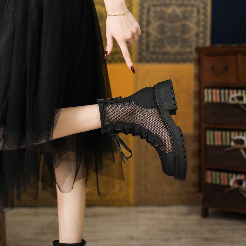 여성을위한 중공 마틴 부츠 여름 얇은 2025 봄과 여름 새로운 두꺼운 굽 두꺼운 밑창 메쉬 샌들 여름 통기성 짧은 부츠